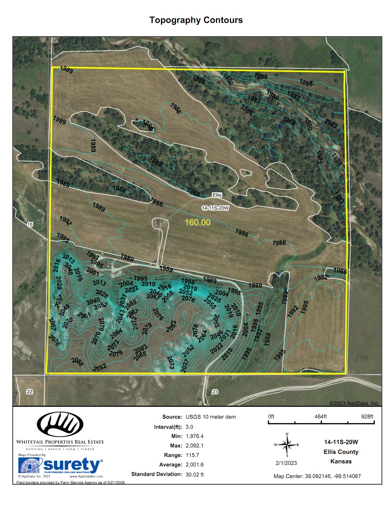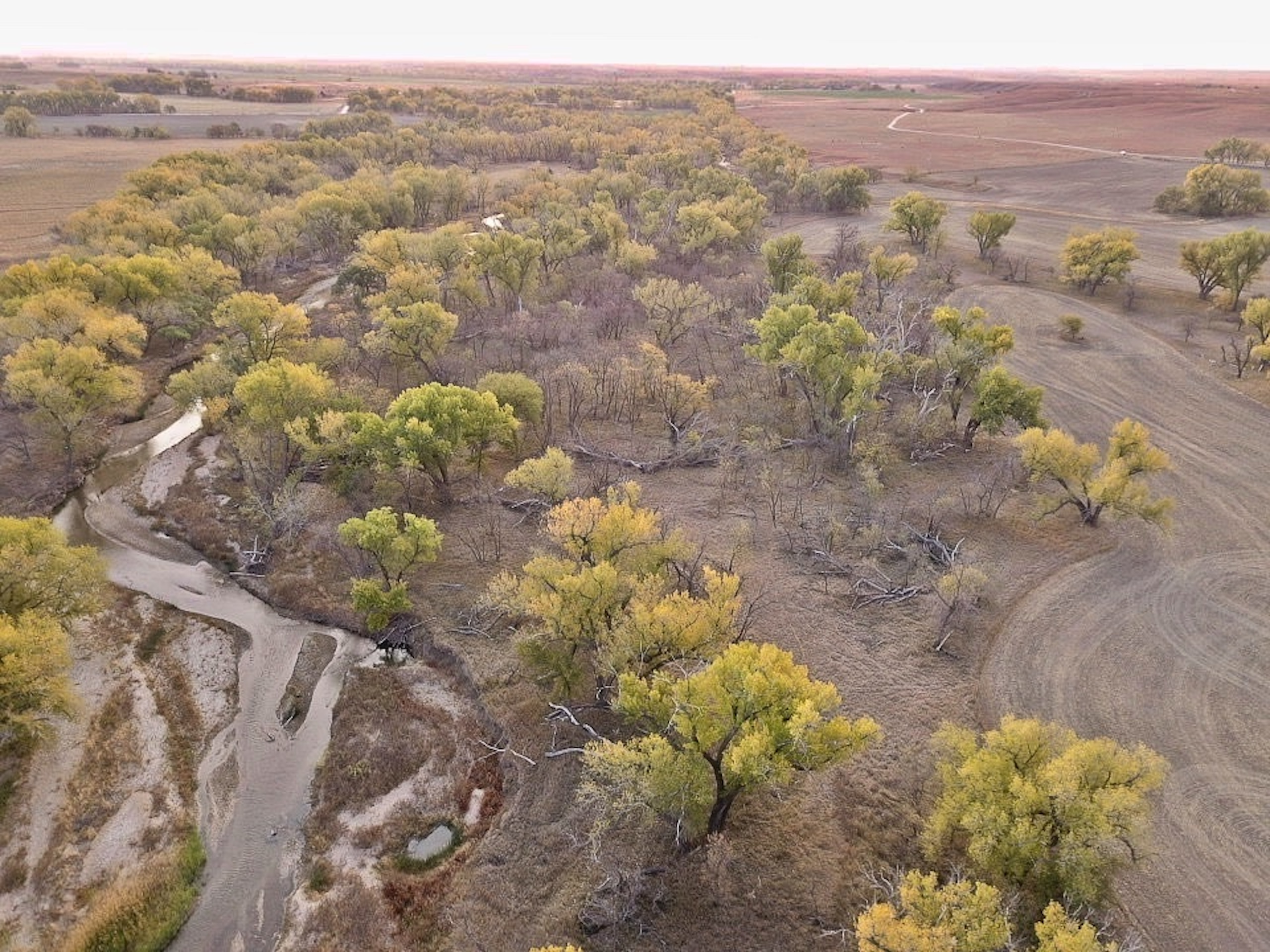 If you’ve been searching for a trophy whitetail hunting property in an area that consistently produces Boone and Crockett caliber deer, then look no further than this Saline River hunting farm in Ellis County, KS. This impressive hunting property features an incredible stretch of the Saline River in an area that is producing trophy whitetail bucks year after year. With nearly 45 acres of timber cover and over 1/4 mile of the Saline River cutting through the property, this farm is a magnet for rutting bucks in the fall with its immense cover and great seclusion. The 68 acres of tillable land was all planted to alfalfa in 2022, providing an excellent food source for the deer, as well as some income return for the owner. The layout of the farmland within the multiple strips of trees creates outstanding setups for hunting field edges during deer season. This property has the perfect combination of excellent food sources, water in the river, incredible cover and seclusion, and an impressive vantage point on the bluffs along the south side. These bluffs tower nearly 100 feet above the cropland and river bottom below! This is a perfect spot for early-season scouting or a great blind setup for firearms season overlooking the river bed and crop fields.