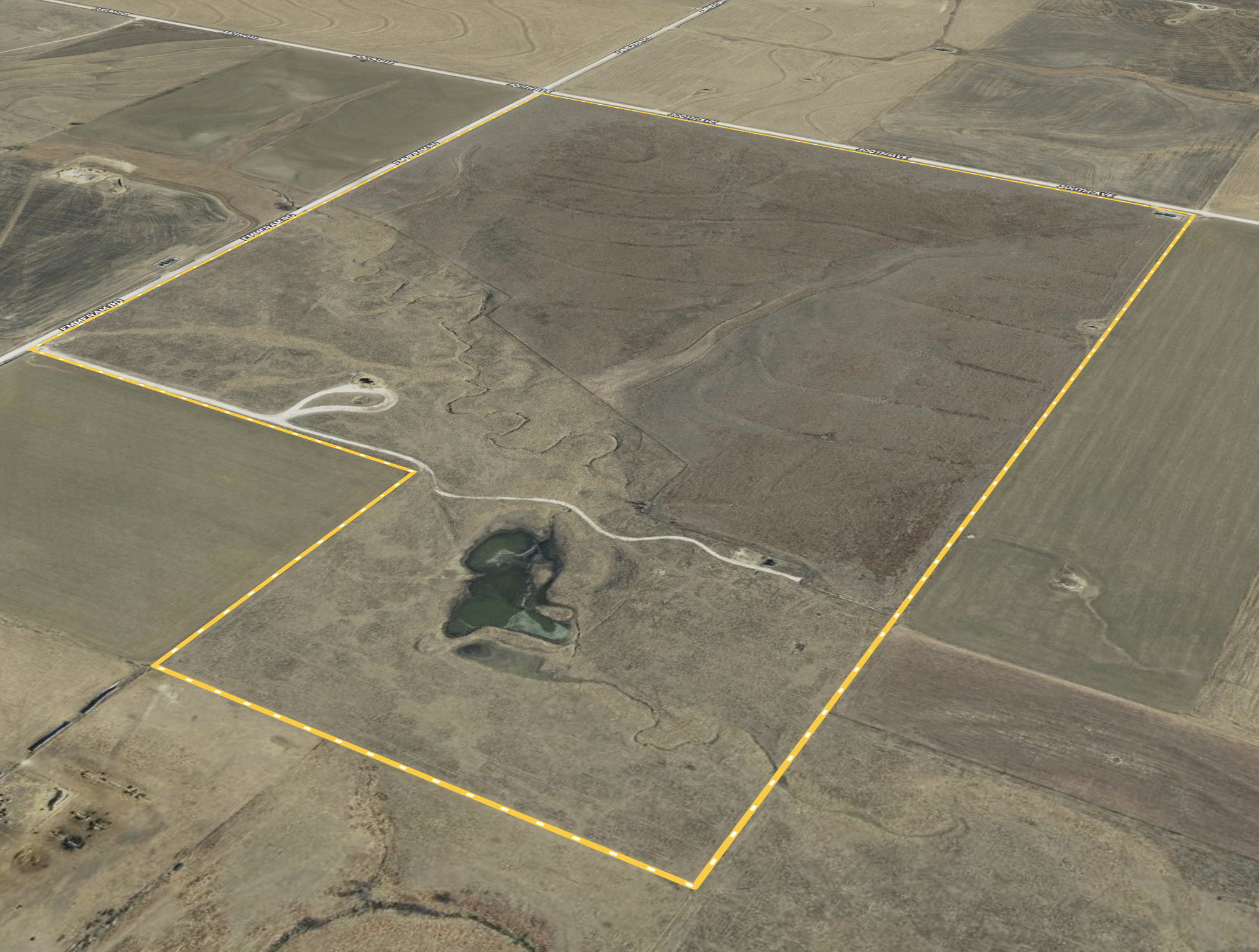 This awesome tract of land features a 1.5 acre pond, a spring fed stream, fertile tillable acres, and is situated in a very scenic and peaceful location less than 5 miles from Hays, KS. The main feature of this farm is the amount of water located within the roughly 64 acres of fenced grassland. This portion of the farm has a spring fed stream running through which feeds into the pond located on the west side. The pond has proven to be a waterfowl magnet during certain times of the year and will most certainly be a great fishing hole for the new owner and family. Finding a farm for sale with an established pond site this close to Hays is hard to come by. With the grassland being fully fenced, the buyer will have the option to graze livestock/horses or rent this portion of the property to provide income return from the land.