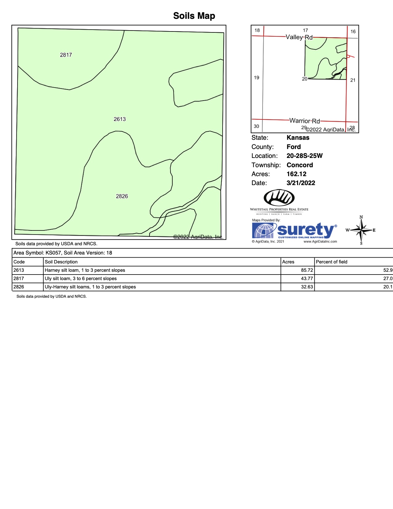 - Soil Type: Harney silt loam, 1-3% slopes, 85.72 acres; Uly silt loam, 3-6% slopes, 43.77 acres; Uly-Harney silt loams, 1-3% slopes, 32.63 acres