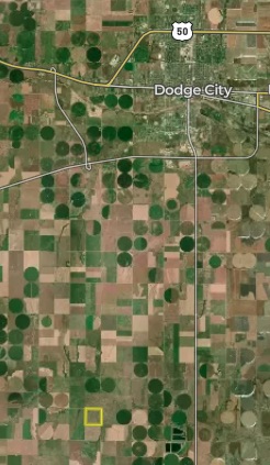 - Located approximately 8 miles south of Dodge City Kansas on 108th and valley road. Road frontage on the north and east side of the property