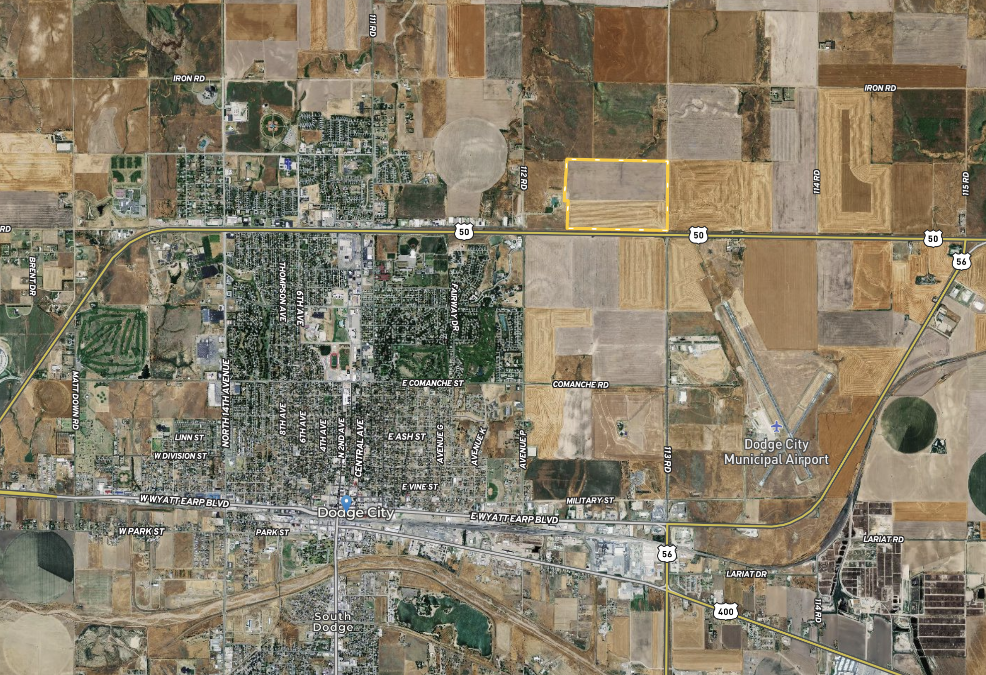 The acreage within the boundaries of this ideally located property consists of extremely fertile and level crop-producing acres that have good potential for residential, commercial, or industrial use in the future due to its close proximity to Dodge City, KS and the excellent access along Highway 50. So whether you’re a farm operator looking for an absolutely prime piece of farmland, or a developer in search of a premier location with an incredible view of the sun setting over Dodge City – this property should be at the top of your list! Contact Whitetail Properties the land specialist for more details or to schedule your tour of the property!