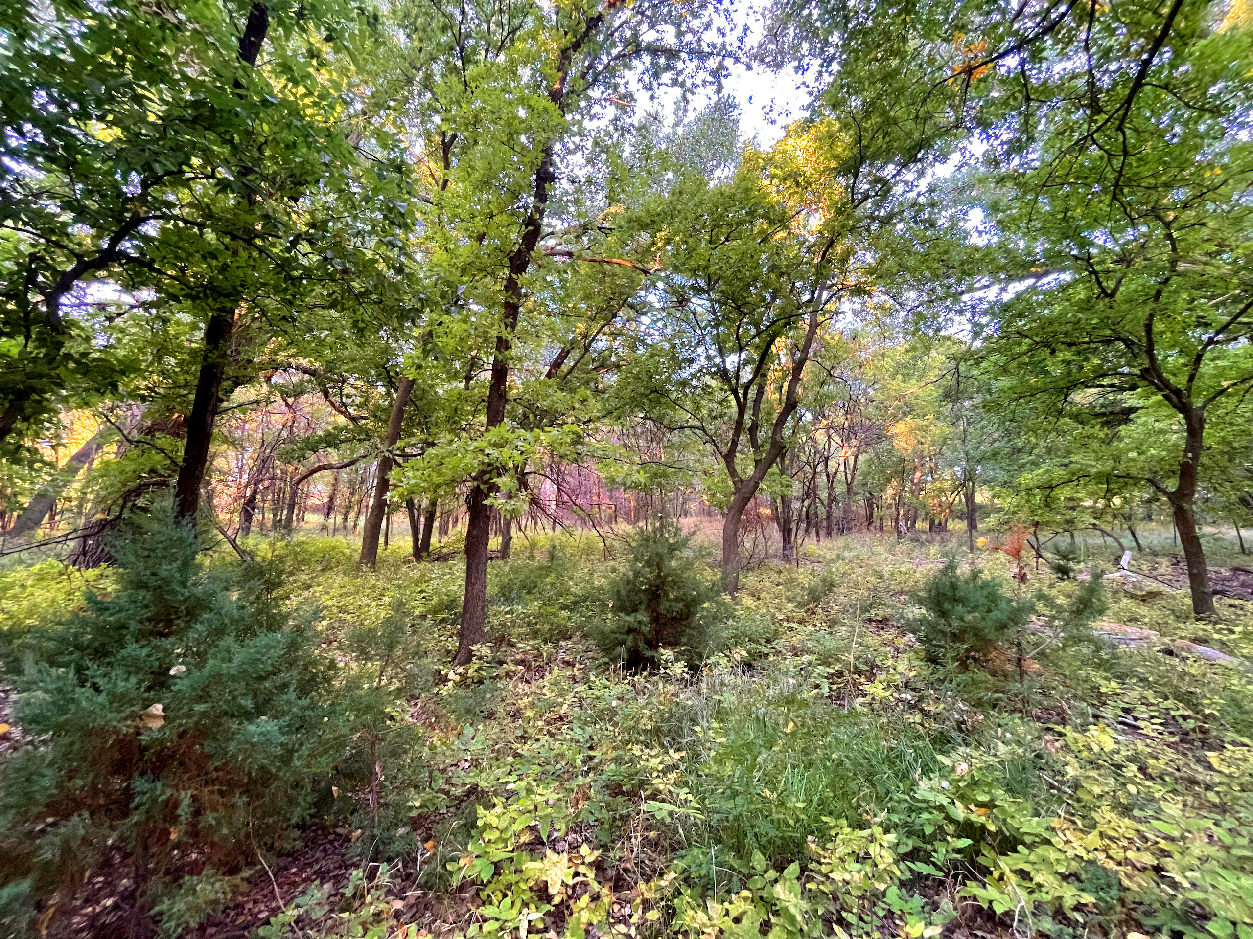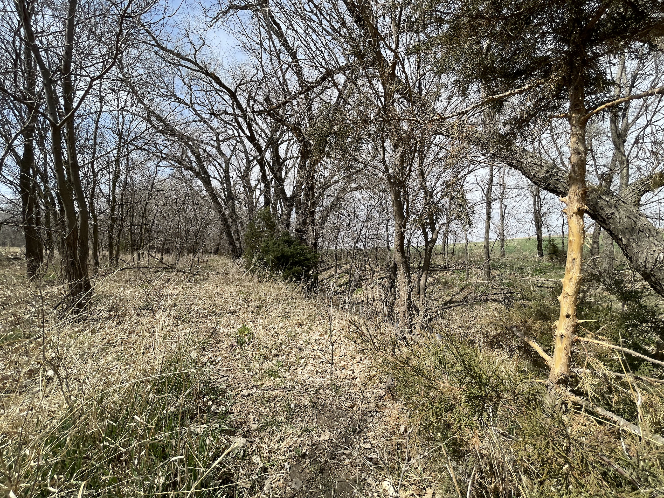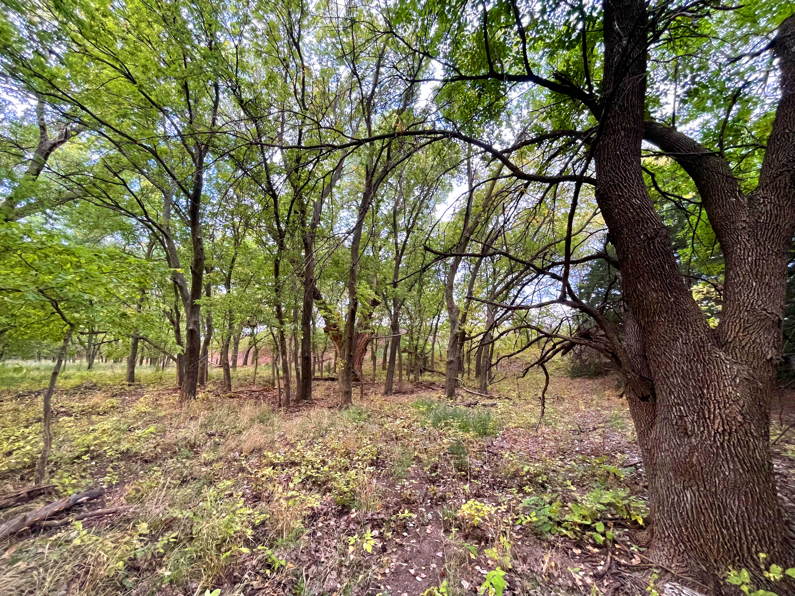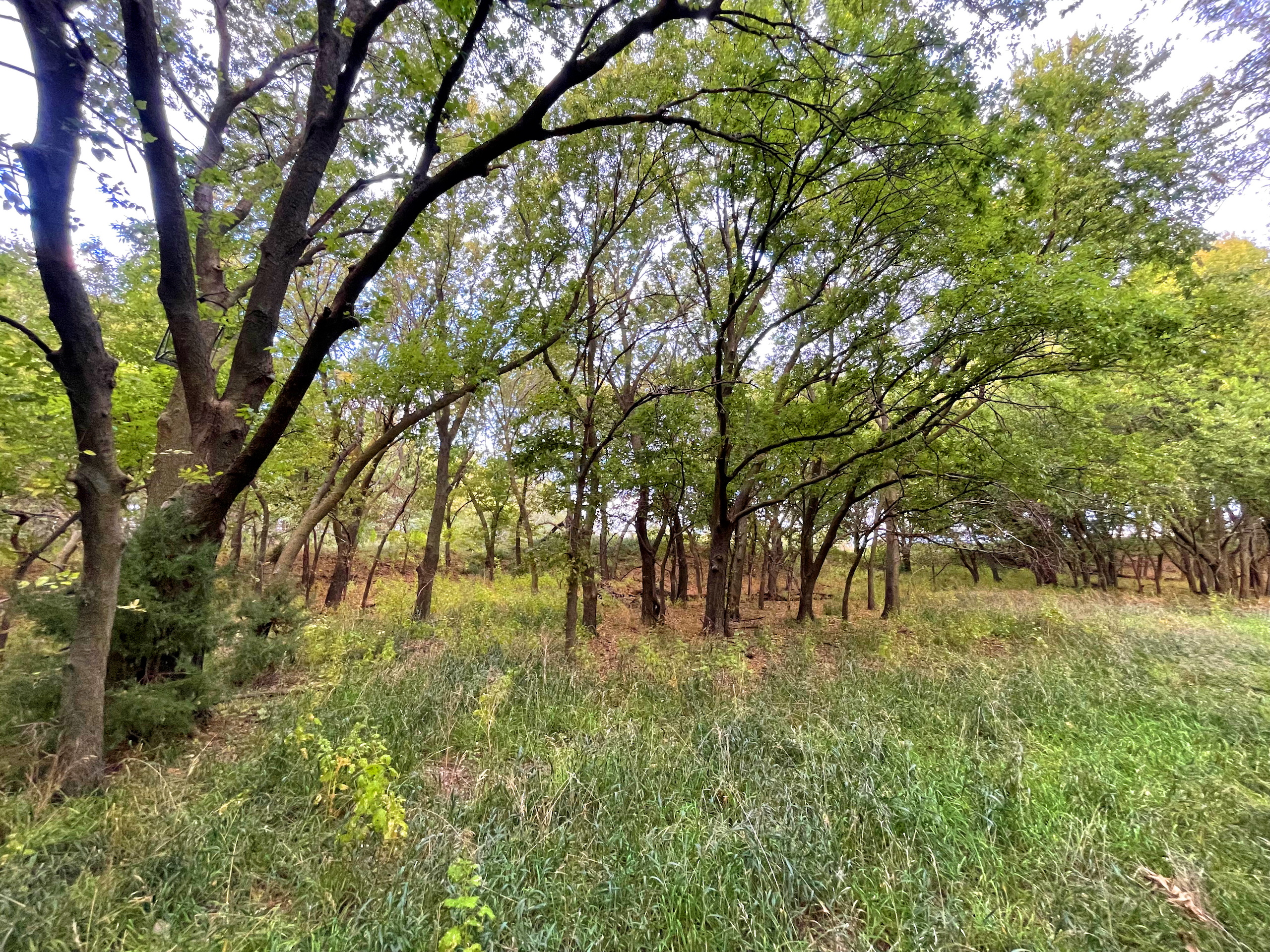 - Large cottonwoods throughout the creek bottom area