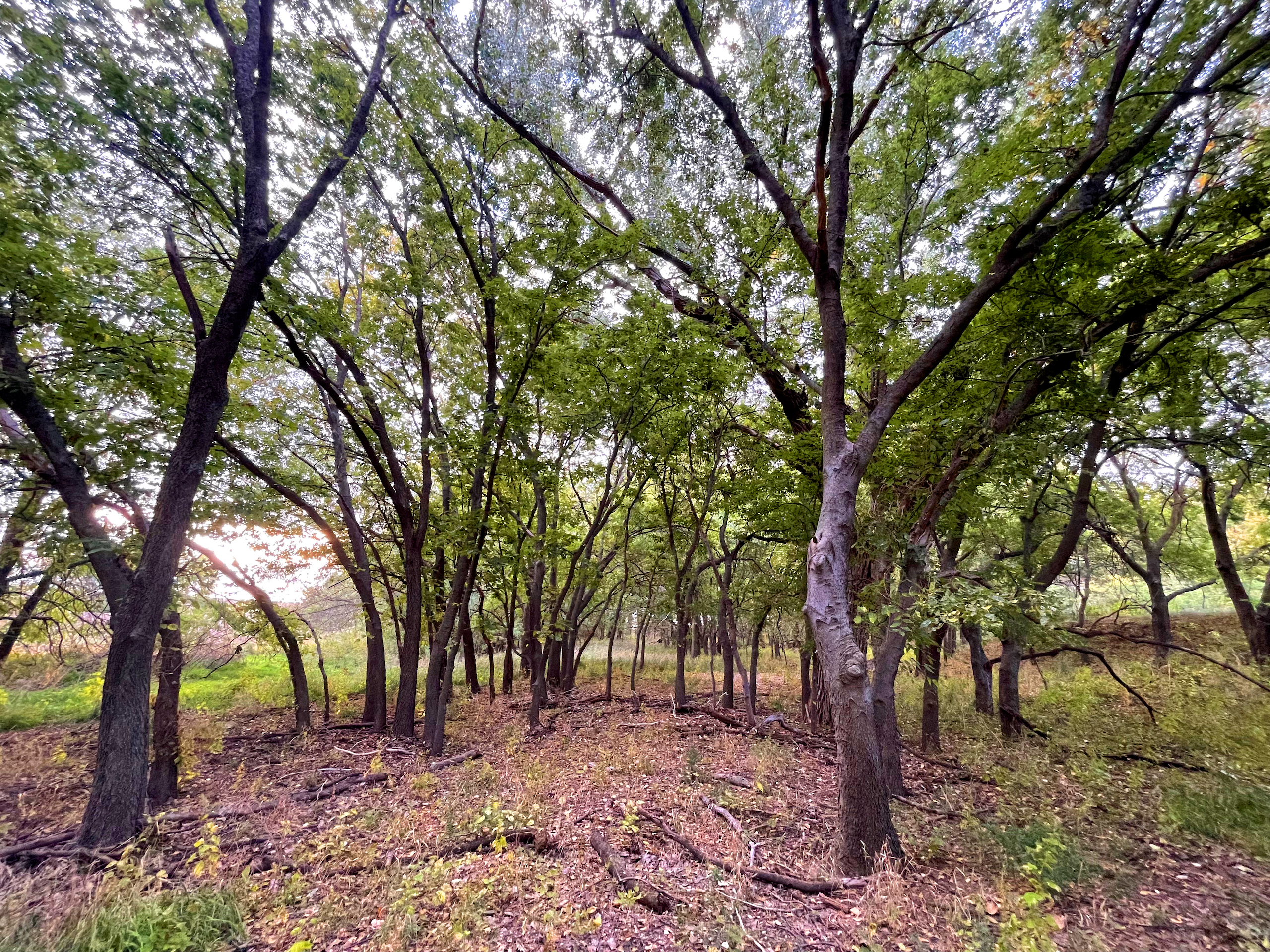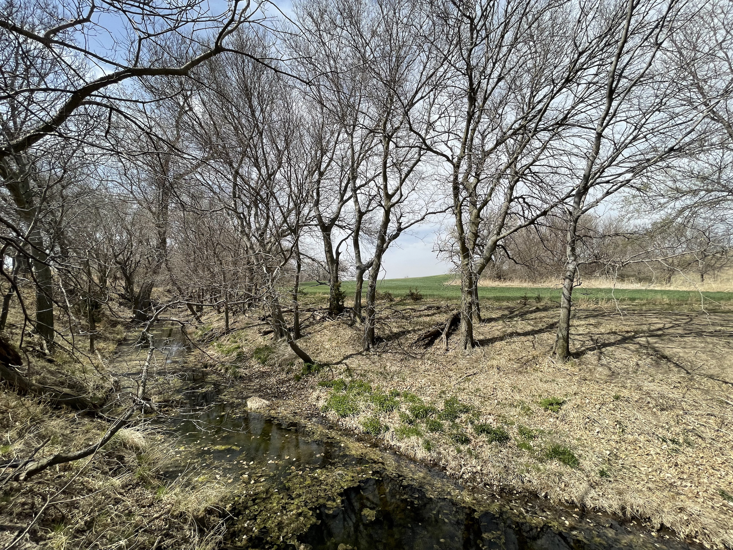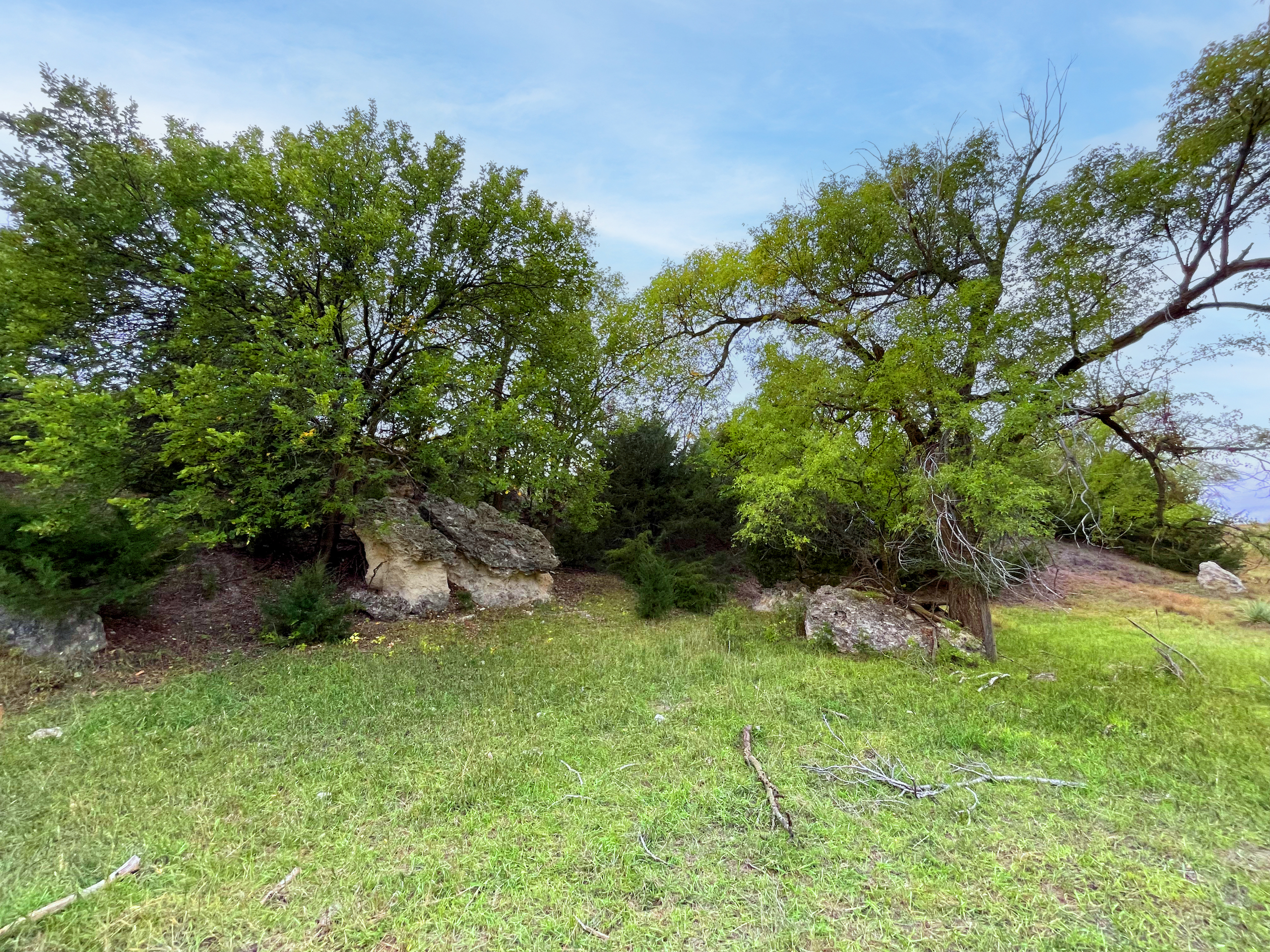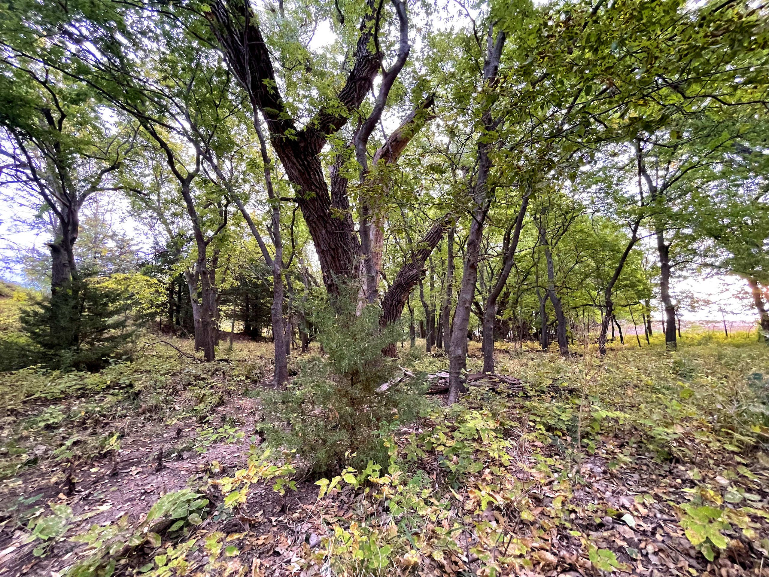 - Large cottonwoods throughout the creek bottom area