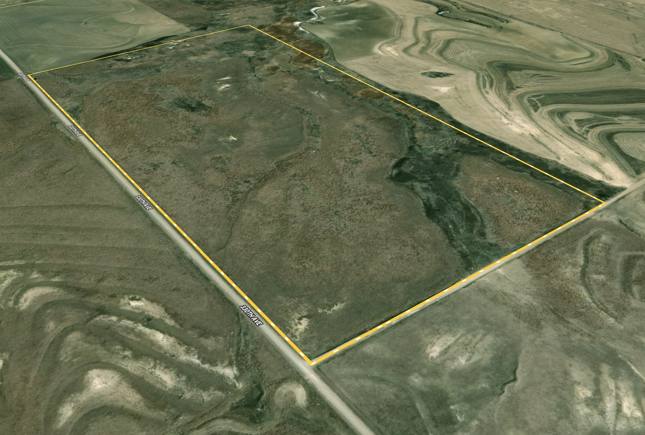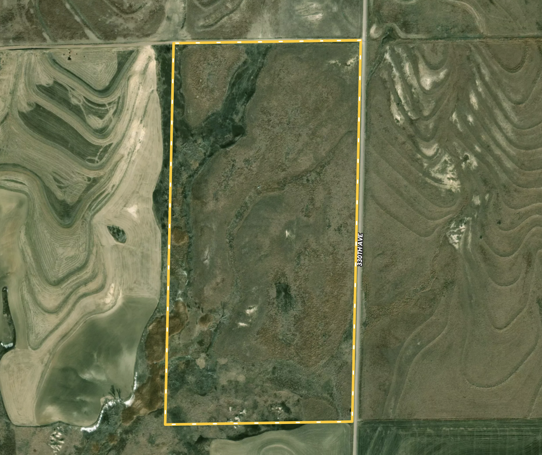 - Large draw on west side of the property is loaded with thickets, tall grass, brush and a few trees