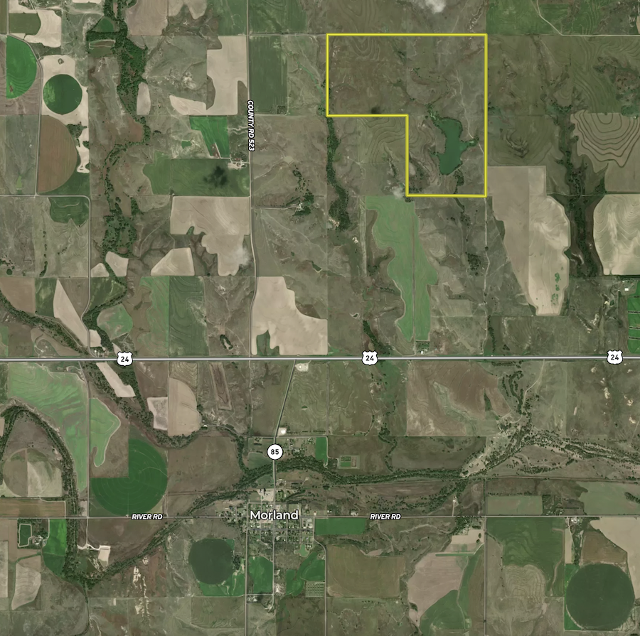 - 2 +/- miles NE of Morland, KS