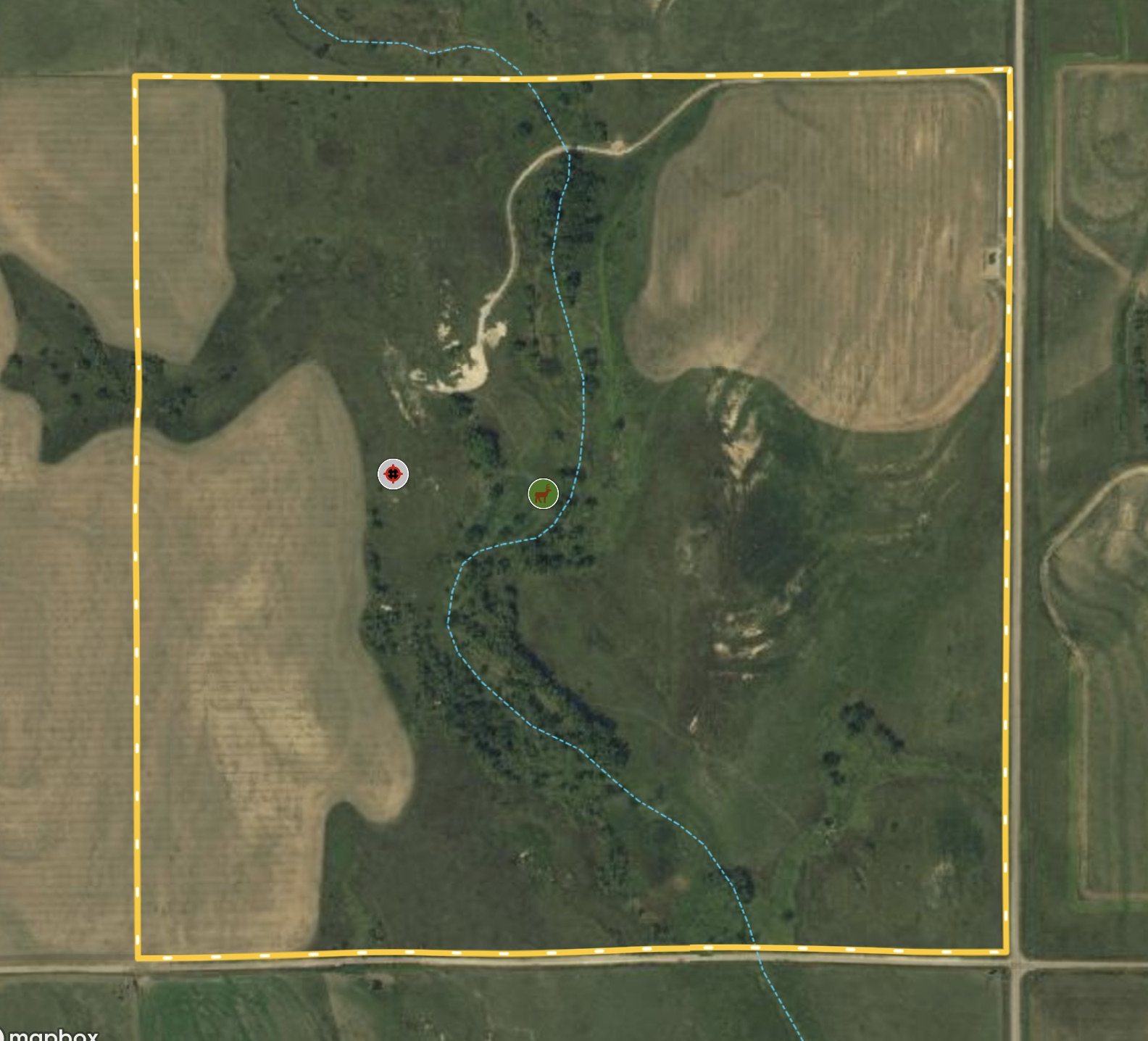 This quarter section located in southeast Graham County, Kansas, offers an excellent combination of hunting habitat and tillable crop ground in a very productive area of the state for hunting trophy whitetail deer, turkey, and upland game. This property has been strictly managed in recent years for hunting trophy whitetail deer and improvements have been made to up the odds of attracting mature bucks to the farm while being properly setup to harvest them once the fall season hits. With its great combination of cover, cropland, and location in a trophy deer area, this farm is all setup for the new owner to be successful in year one. The creek bed running through the farm is lined with several mature trees with multiple treestands already in place. This is a major travel corridor for local whitetail deer and this farm has enough ground cover to attract and hold several deer to the property. The southern portion of the bottom is overgrown with 10’+ tall cane that deer in this area love to bed in. The rugged terrain along the west side of the bottom allows for undetected access into the timbered bottom during archery season. A 1-acre alfalfa food plot, located in the center of the property, with a ladder treestand and new tower hunting blind in place providing incredible setups for both archery and firearms season. Multiple trees surrounding and within the food plot have been destroyed by deer over the years and it is evidence this is a proven hotspot during the fall. A folder of deer history has been kept over recent years and can be shared upon touring of the property. Northwest Kansas has quickly become one of the premier whitetail destinations in the entire Midwest. Don’t miss the opportunity to own a proven, turn-key hunting farm right in the heart of Northwest Kansas.