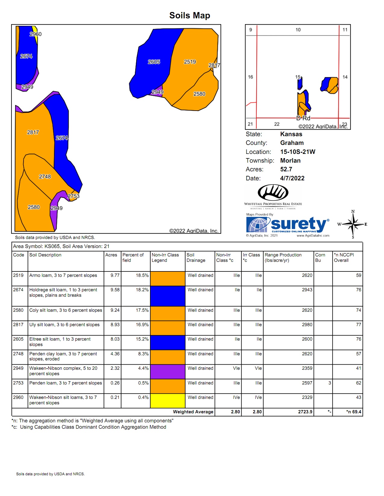 - SE/4 of Section 15, Township 10 South, Range 21 West in Graham County, KS