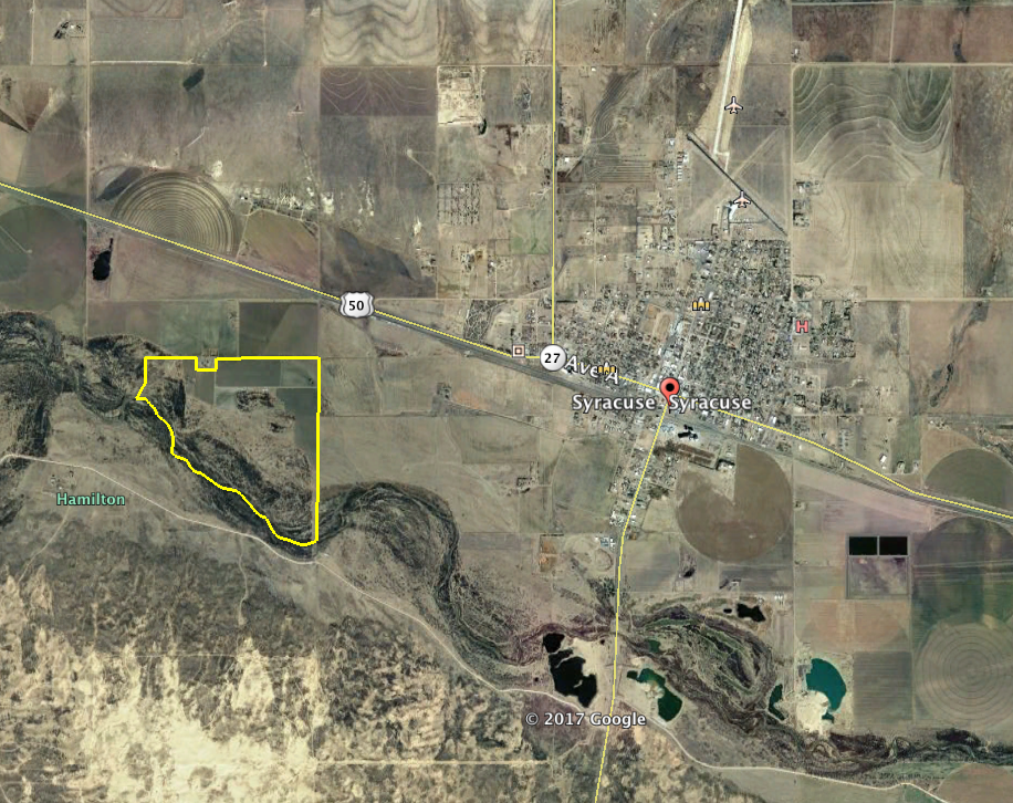 - Located approximately 1 mile West of Syracuse, KS along the Arkansas River. Property borders the river to the North with over a mile of river frontage