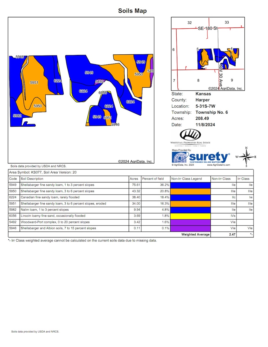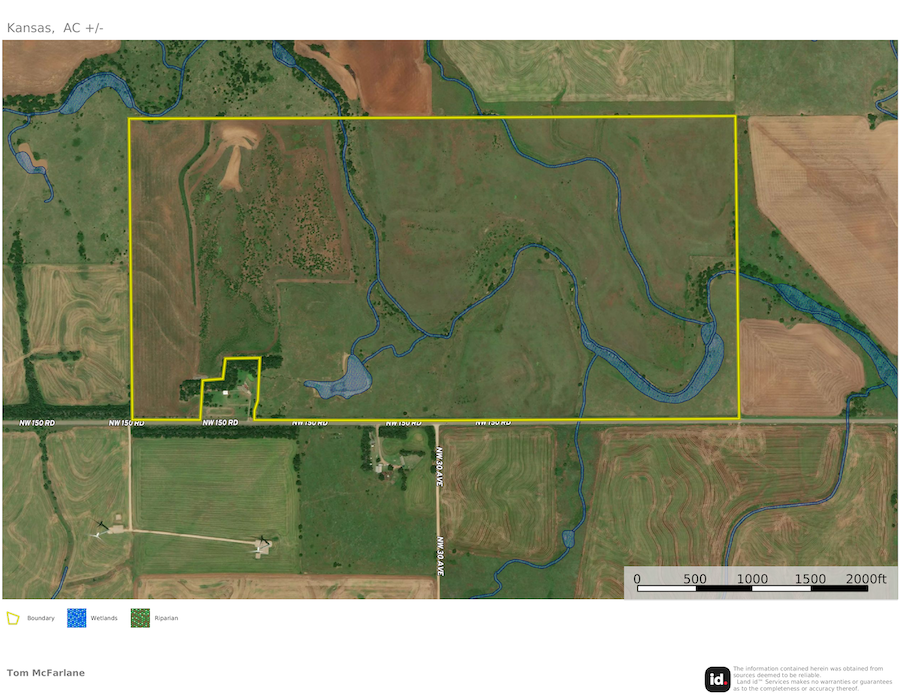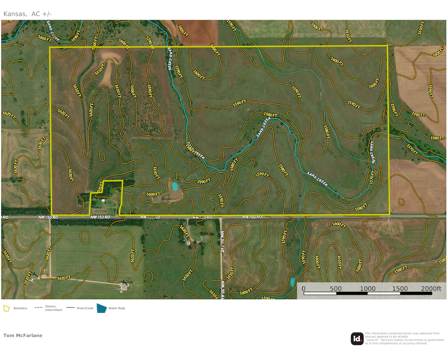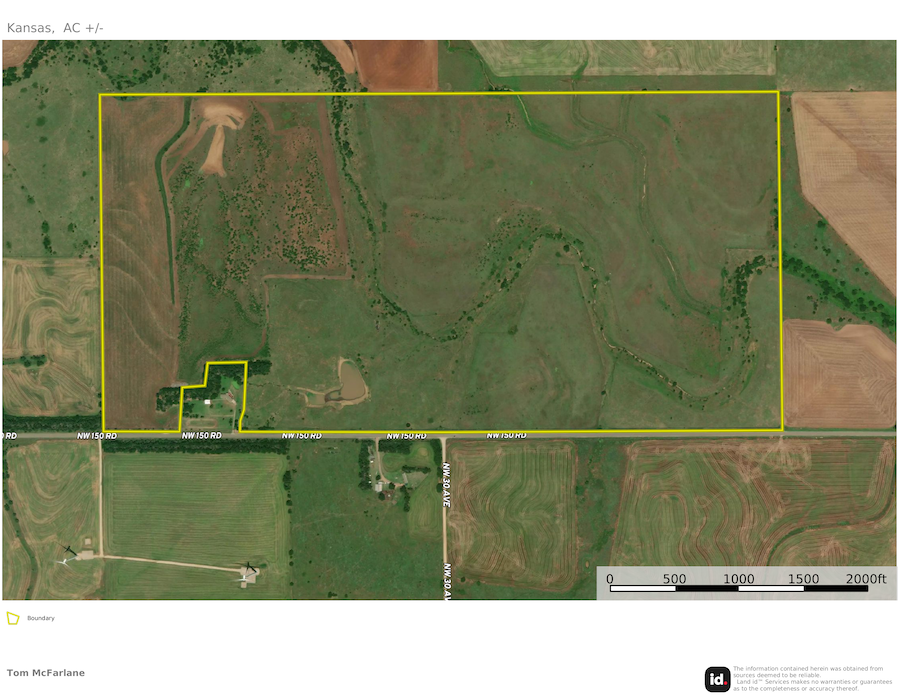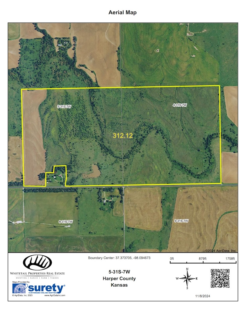 Attention hunters who are looking for a solid combination farm in south-central Kansas, conveniently located to Wichita. This farm is solid cover with ample shoulder-high grasses and a mix of plum thickets, brush, small trees, and some towering cottonwoods. This farm maintains high populations of both deer and quail as the habitat for birds and bedding is prime. Surrounded by a lot of tillable ground, this farm is the prime bedding area for the deer in the immediate area and tends to load up with deer when the crops get harvested in the fall. Most of the farm is retired CRP and was farmed years ago, so it still maintains an excellent amount of quality soils, including numerous acres of Class II dirt. That will allow for a handful of high-quality small acreage spots that will be prime for food plots along with combining a feeder and stand or blind set up. There is currently 1 existing food plot planted to wheat, along with 1 new Redneck blind and a large All-Season feeder. This farm lays out great with Sand Creek basically works its way through the center of the farm allowing for numerous pockets and corners to tuck away small plots and hunting spots. Sand Creek is a seasonal creek and does carry water at certain times of the year and along with that there is one large stock pond in the southern portion of the property. There are currently mowed paths and trails around the farm making it easy to access all parts of the property. The option for quail hunting is excellent and this is prime habitat both now and moving forward. There is currently 32 +/- acres in planted wheat with a local farmer and they will have tenant rights until harvest next summer or beyond if the new owner has a desire to keep crops in the ground with a tenant. This area in Harper County is well known for big mature deer and the prospects of harvesting top end deer will be excellent. Located just 1 hour from Wichita ICT, this property is easily accessible and is just a few miles from the town of Harper, which offers numerous amenities. This will certainly allow for a cabin or metal building to be built with a build site that will have views of the farm or countryside. Please contact the listing agent for more information or to view in person.