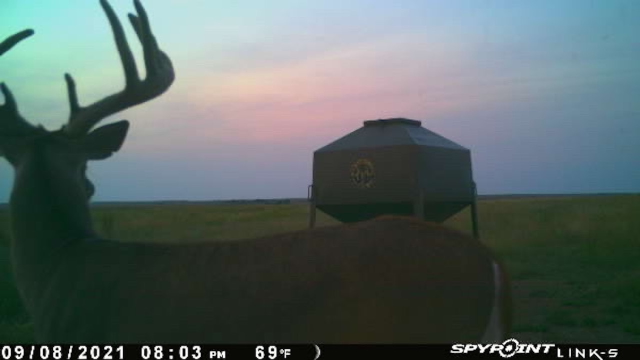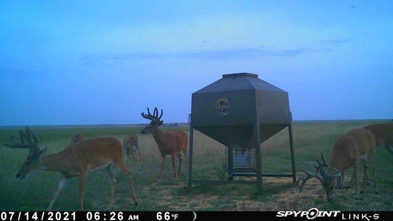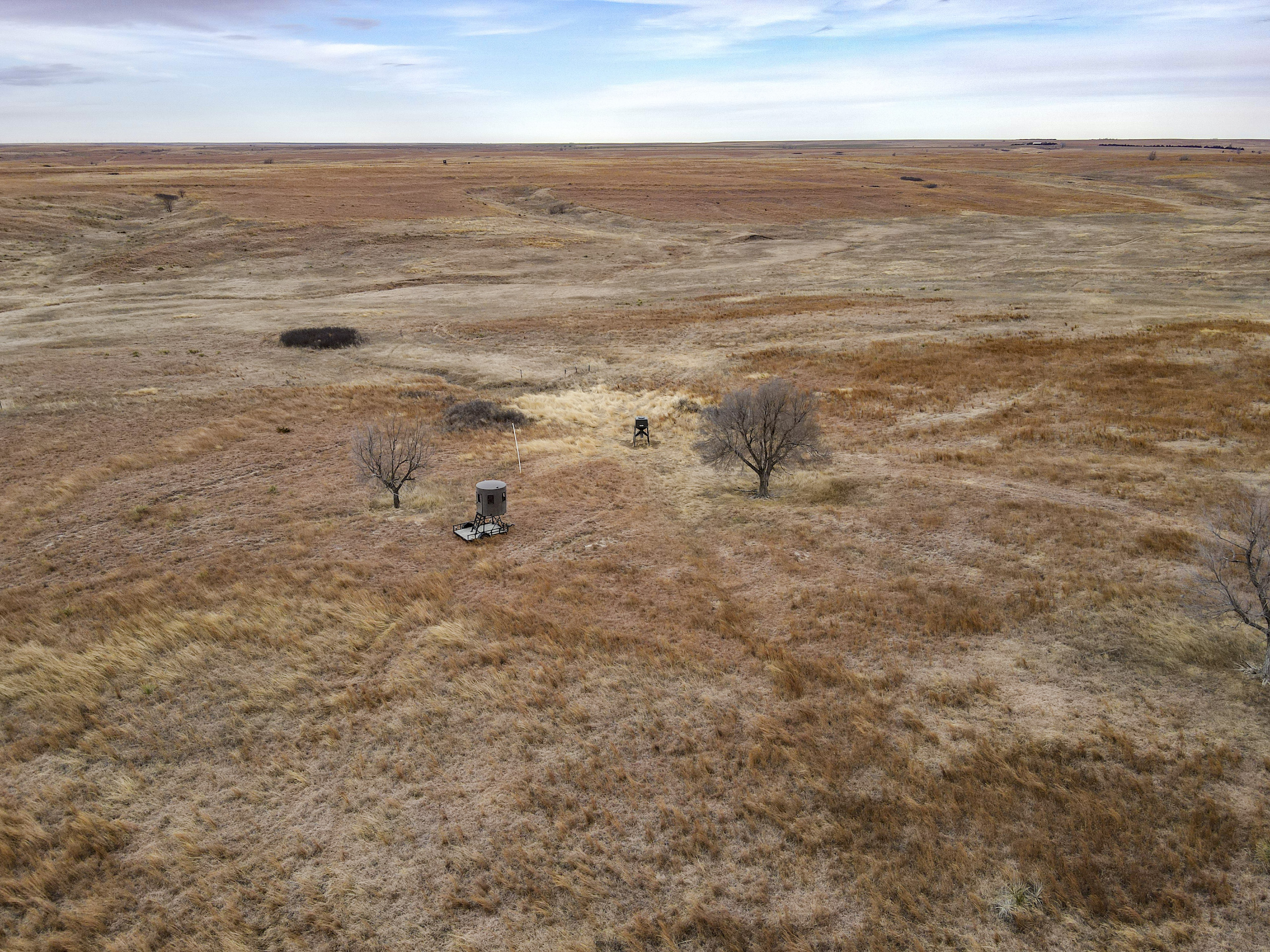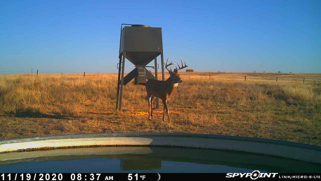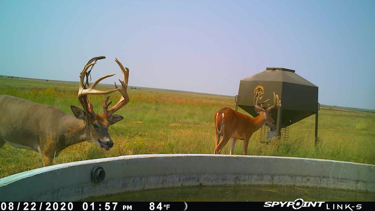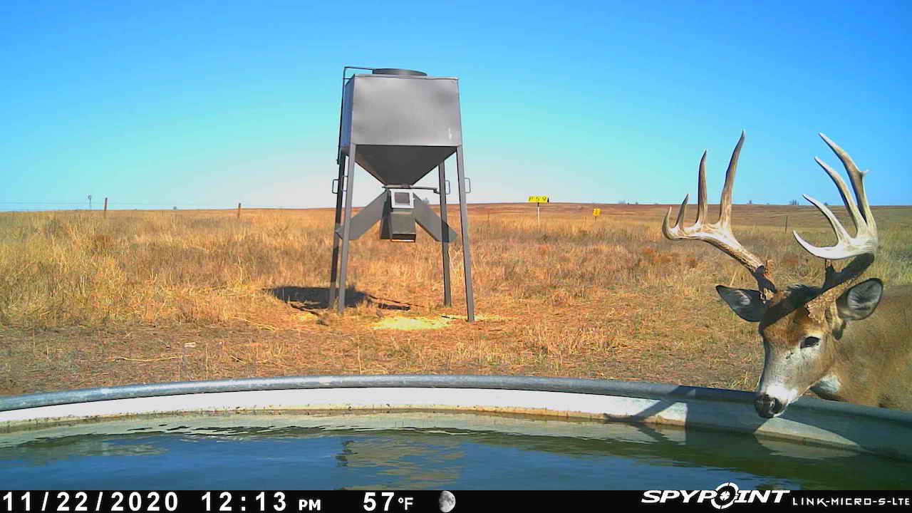 The big ranch country and wide-open spaces that lie in southern Kiowa County and northern Comanche county are many times considered just that, wide-open ranches. The people that are in the know realize that those passed over places and oceans of grassy pastures are the least pressured areas that still maintain just as much of a deer population as many other types of habitats. The benefit of that is the most important tool in big buck management…AGE! The deer in this area get old, “die of old age” old. When you combine that with neighboring ranches being under very strict management for maturity and you have an automatic and proven big deer property. There have been small several alfalfa fields implemented to draw deer and keep them throughout the summer months. This ranch also has numerous water tanks that are supplied by a well water line so there is a year-round freshwater supply for not only livestock if so desired, but also a wildlife supplement. Current owners have purposely taken very few bucks over the last several years and have put in place several Banks hunting blinds along with large feeders creating numerous hunt options for different winds and weather. DO NOT let the aerial fool you, check out the deer pictures and call us to go in-depth about what this property can produce as a big deer factory.