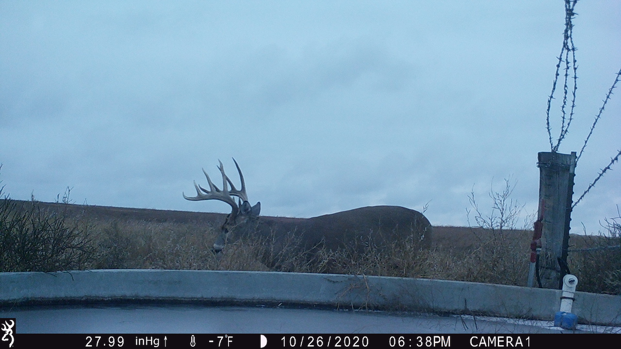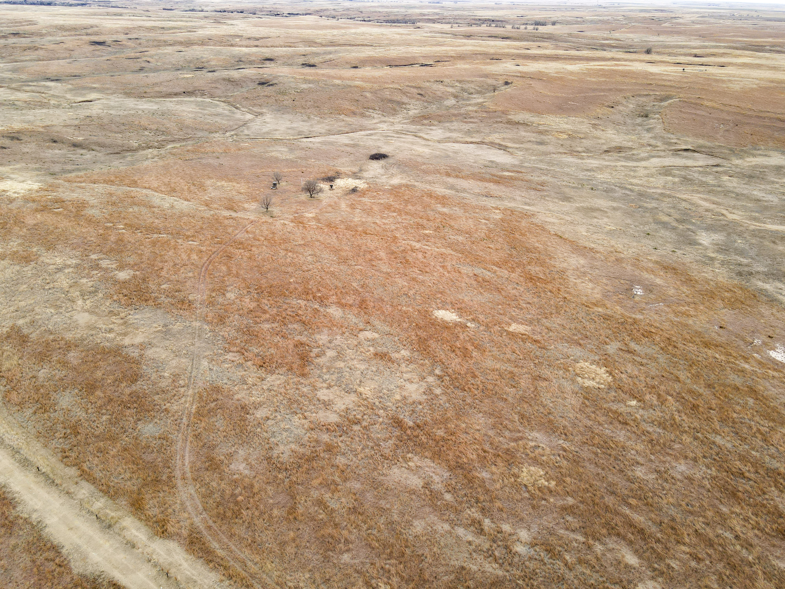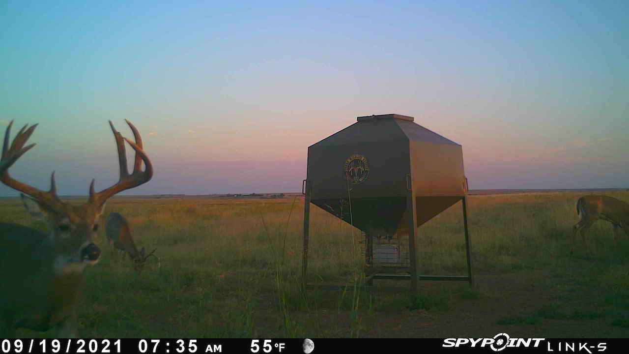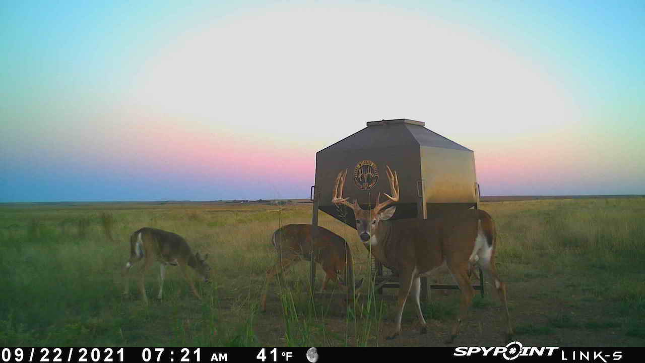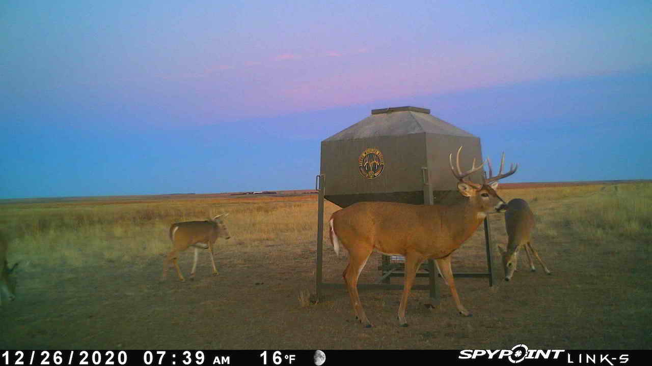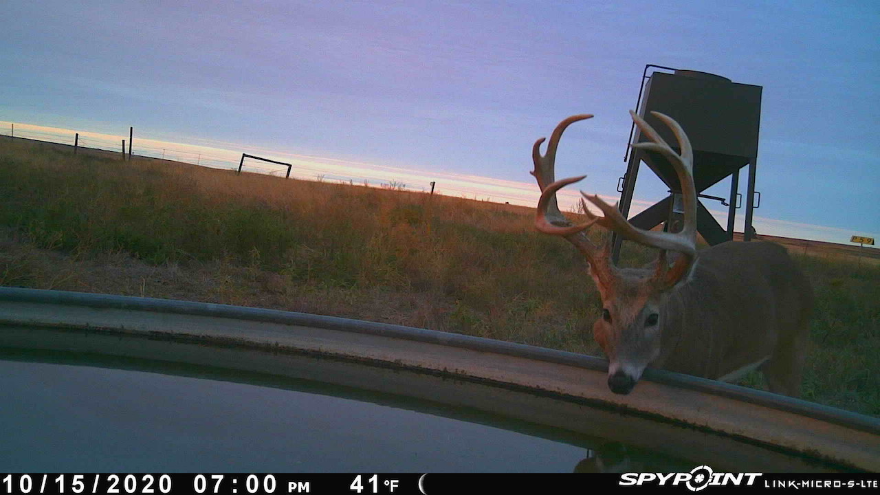 The big ranch country and wide-open spaces that lie in southern Kiowa County and northern Comanche county are many times considered just that, wide-open ranches. The people that are in the know realize that those passed over places and oceans of grassy pastures are the least pressured areas that still maintain just as much of a deer population as many other types of habitats. The benefit of that is the most important tool in big buck management…AGE! The deer in this area get old, “die of old age” old. When you combine that with neighboring ranches being under very strict management for maturity and you have an automatic and proven big deer property. There have been small several alfalfa fields implemented to draw deer and keep them throughout the summer months. This ranch also has numerous water tanks that are supplied by a well water line so there is a year-round freshwater supply for not only livestock if so desired, but also a wildlife supplement. Current owners have purposely taken very few bucks over the last several years and have put in place several Banks hunting blinds along with large feeders creating numerous hunt options for different winds and weather. DO NOT let the aerial fool you, check out the deer pictures and call us to go in-depth about what this property can produce as a big deer factory.