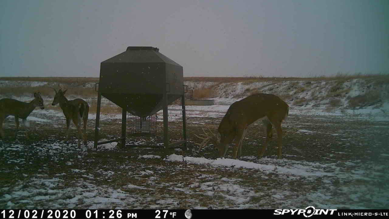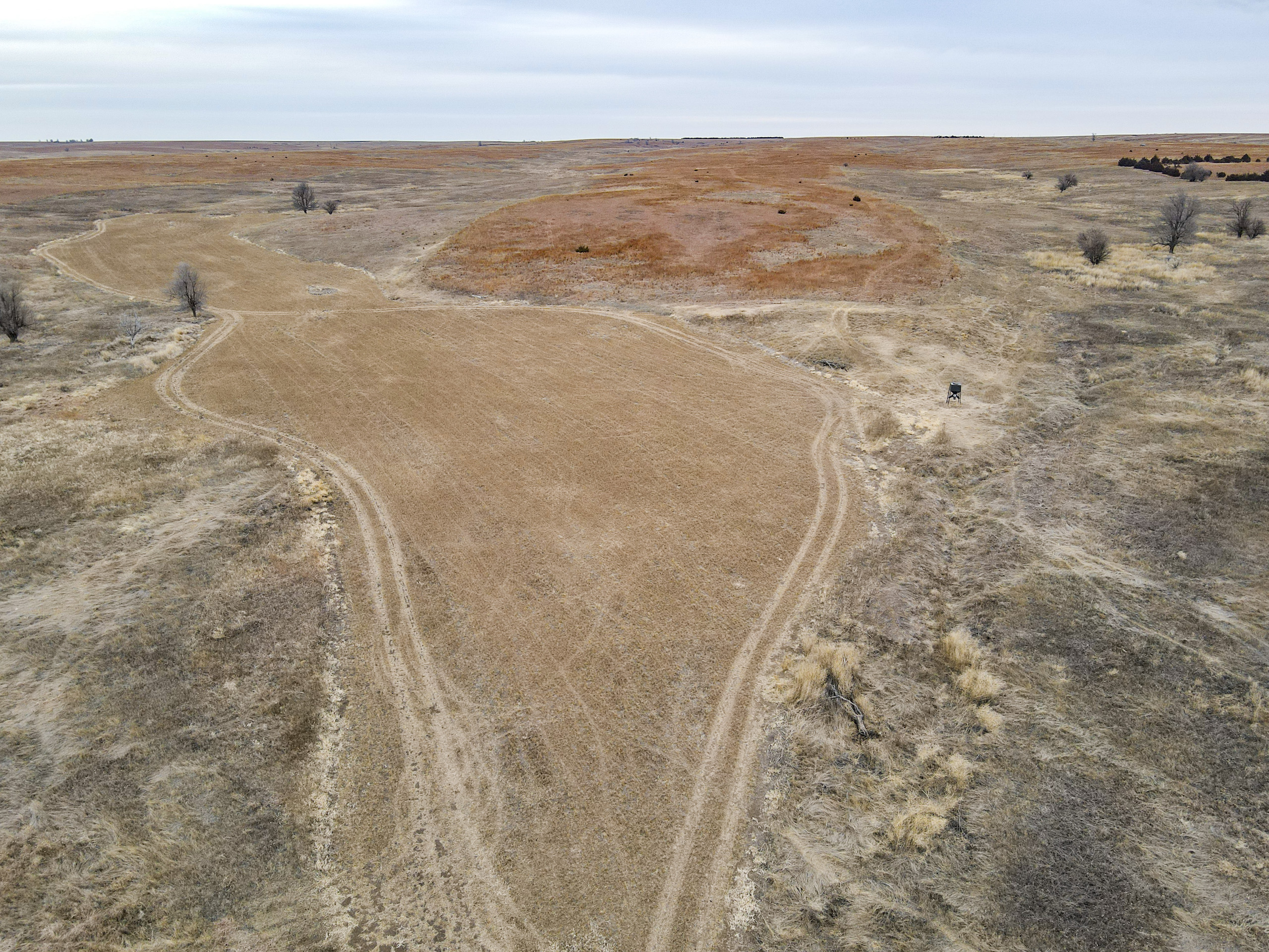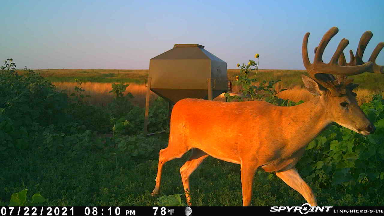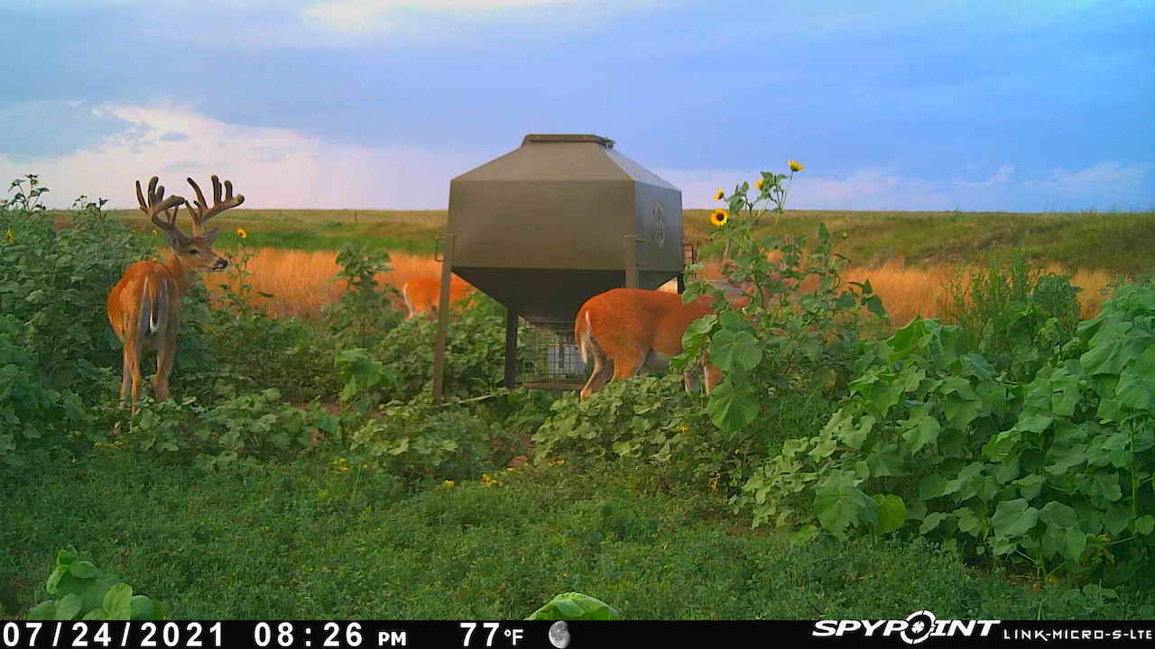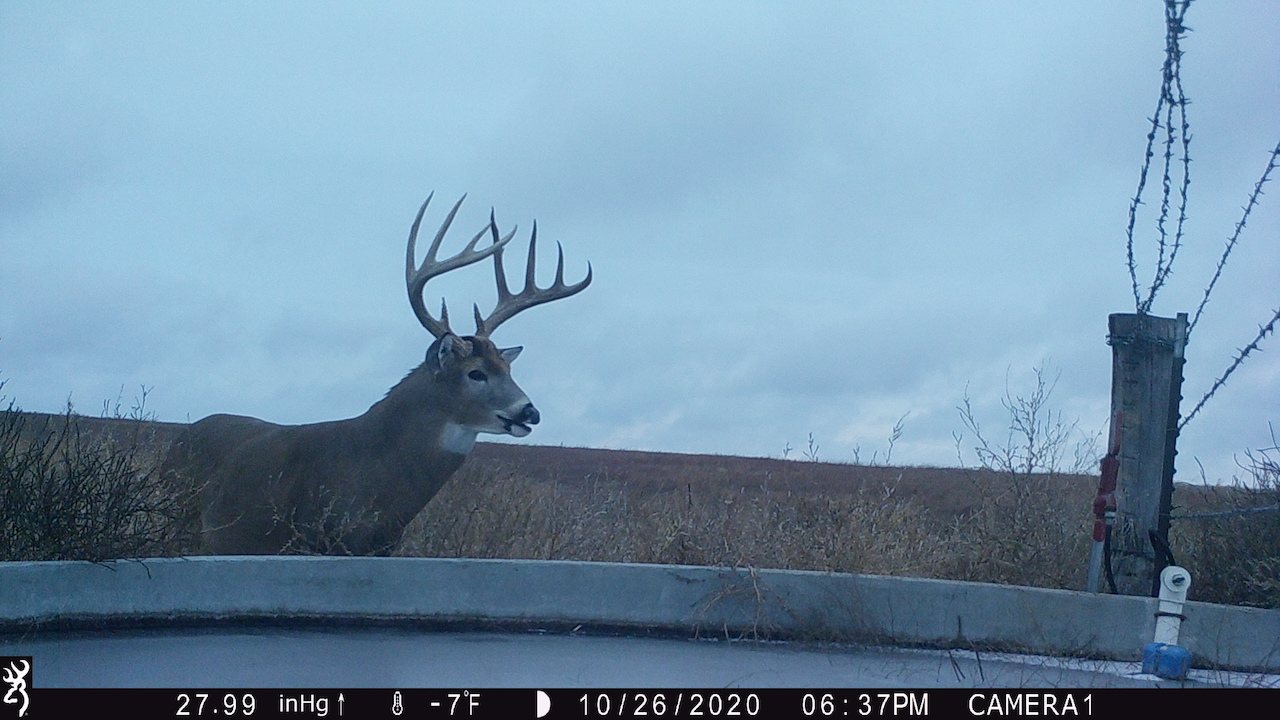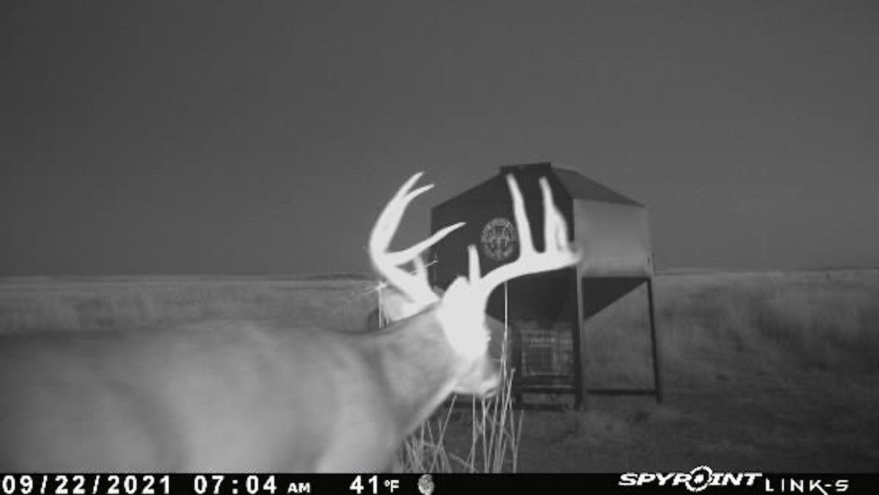The big ranch country and wide-open spaces that lie in southern Kiowa County and northern Comanche county are many times considered just that, wide-open ranches. The people that are in the know realize that those passed over places and oceans of grassy pastures are the least pressured areas that still maintain just as much of a deer population as many other types of habitats. The benefit of that is the most important tool in big buck management…AGE! The deer in this area get old, “die of old age” old. When you combine that with neighboring ranches being under very strict management for maturity and you have an automatic and proven big deer property. There have been small several alfalfa fields implemented to draw deer and keep them throughout the summer months. This ranch also has numerous water tanks that are supplied by a well water line so there is a year-round freshwater supply for not only livestock if so desired, but also a wildlife supplement. Current owners have purposely taken very few bucks over the last several years and have put in place several Banks hunting blinds along with large feeders creating numerous hunt options for different winds and weather. DO NOT let the aerial fool you, check out the deer pictures and call us to go in-depth about what this property can produce as a big deer factory.