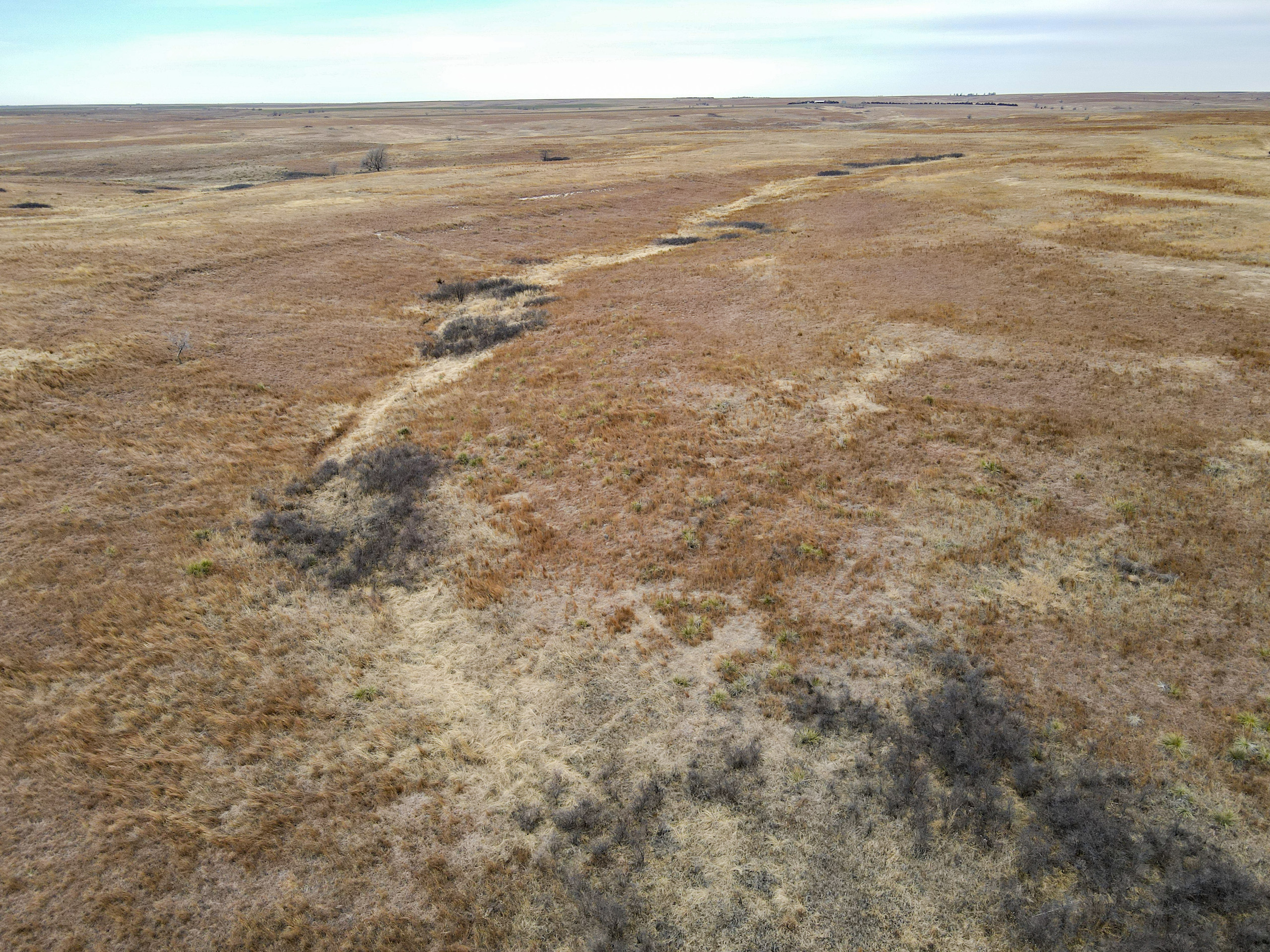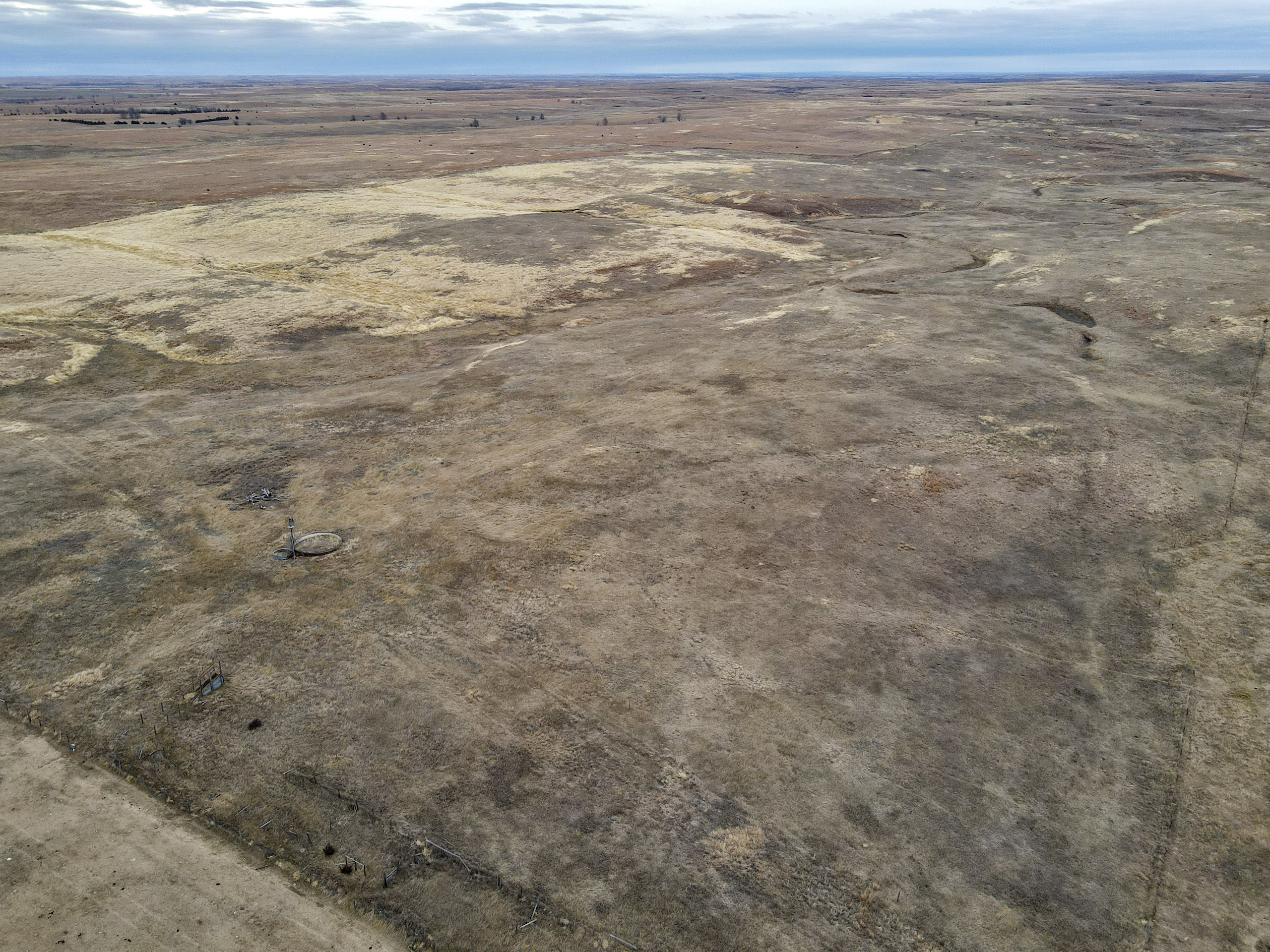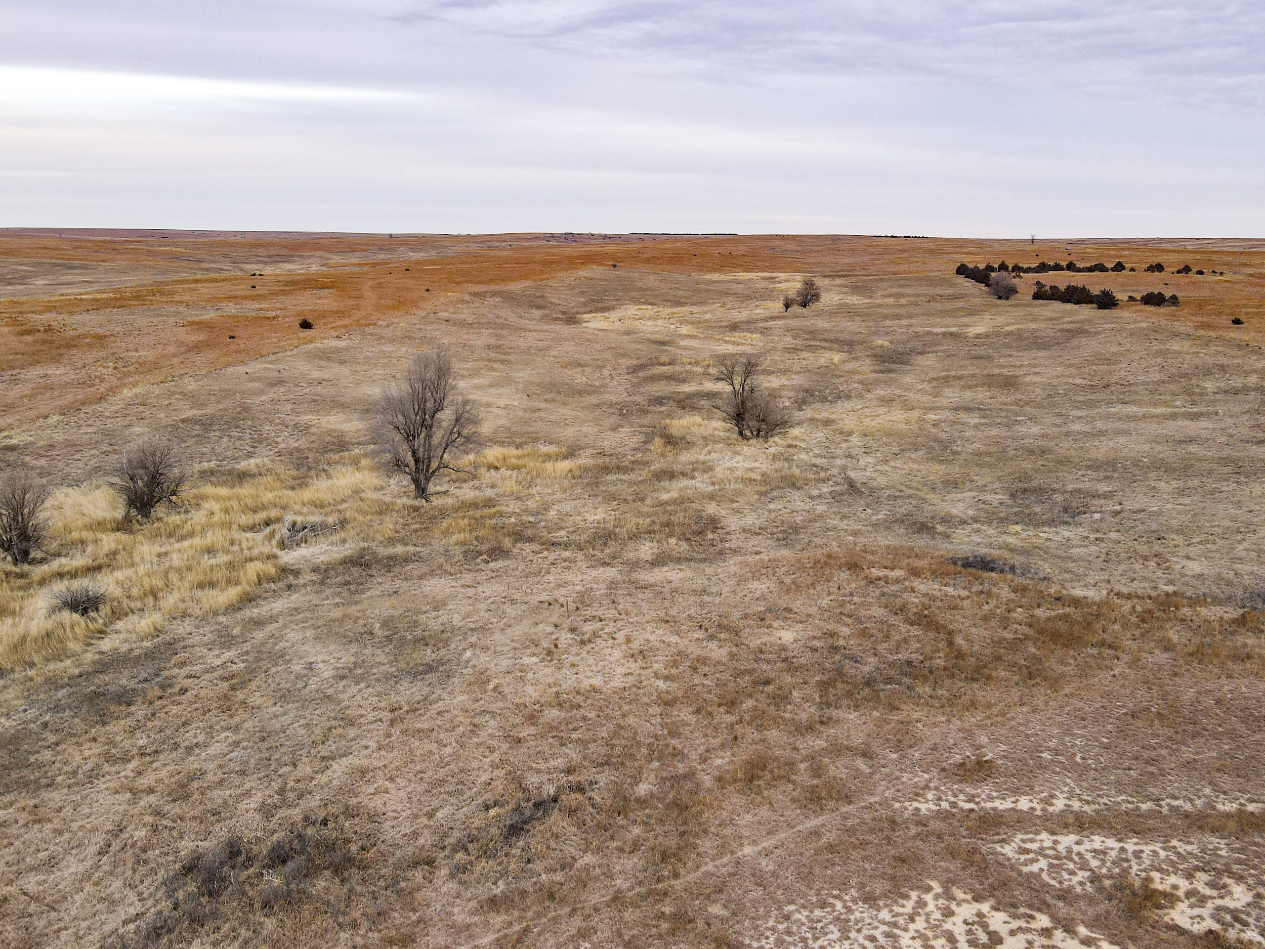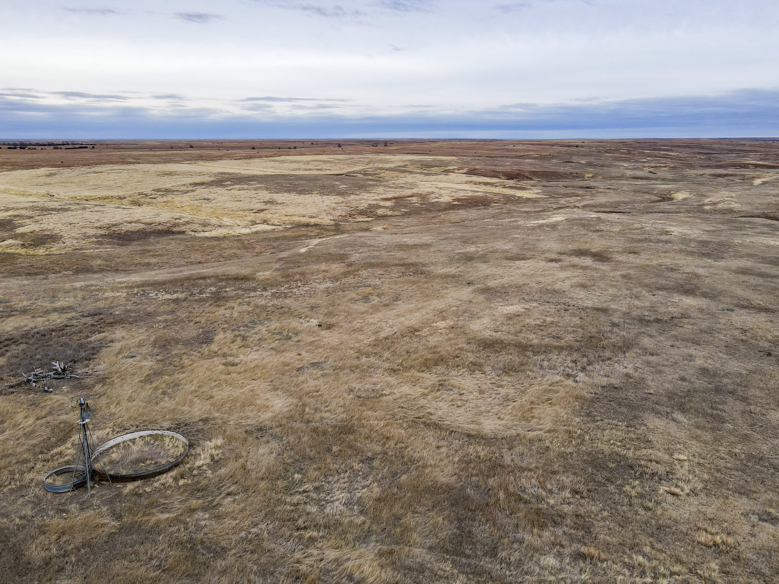 The big ranch country and wide-open spaces that lie in southern Kiowa County and northern Comanche county are many times considered just that, wide-open ranches. The people that are in the know realize that those passed over places and oceans of grassy pastures are the least pressured areas that still maintain just as much of a deer population as many other types of habitats. The benefit of that is the most important tool in big buck management…AGE! The deer in this area get old, “die of old age” old. When you combine that with neighboring ranches being under very strict management for maturity and you have an automatic and proven big deer property. There have been small several alfalfa fields implemented to draw deer and keep them throughout the summer months. This ranch also has numerous water tanks that are supplied by a well water line so there is a year-round freshwater supply for not only livestock if so desired, but also a wildlife supplement. Current owners have purposely taken very few bucks over the last several years and have put in place several Banks hunting blinds along with large feeders creating numerous hunt options for different winds and weather. DO NOT let the aerial fool you, check out the deer pictures and call us to go in-depth about what this property can produce as a big deer factory.