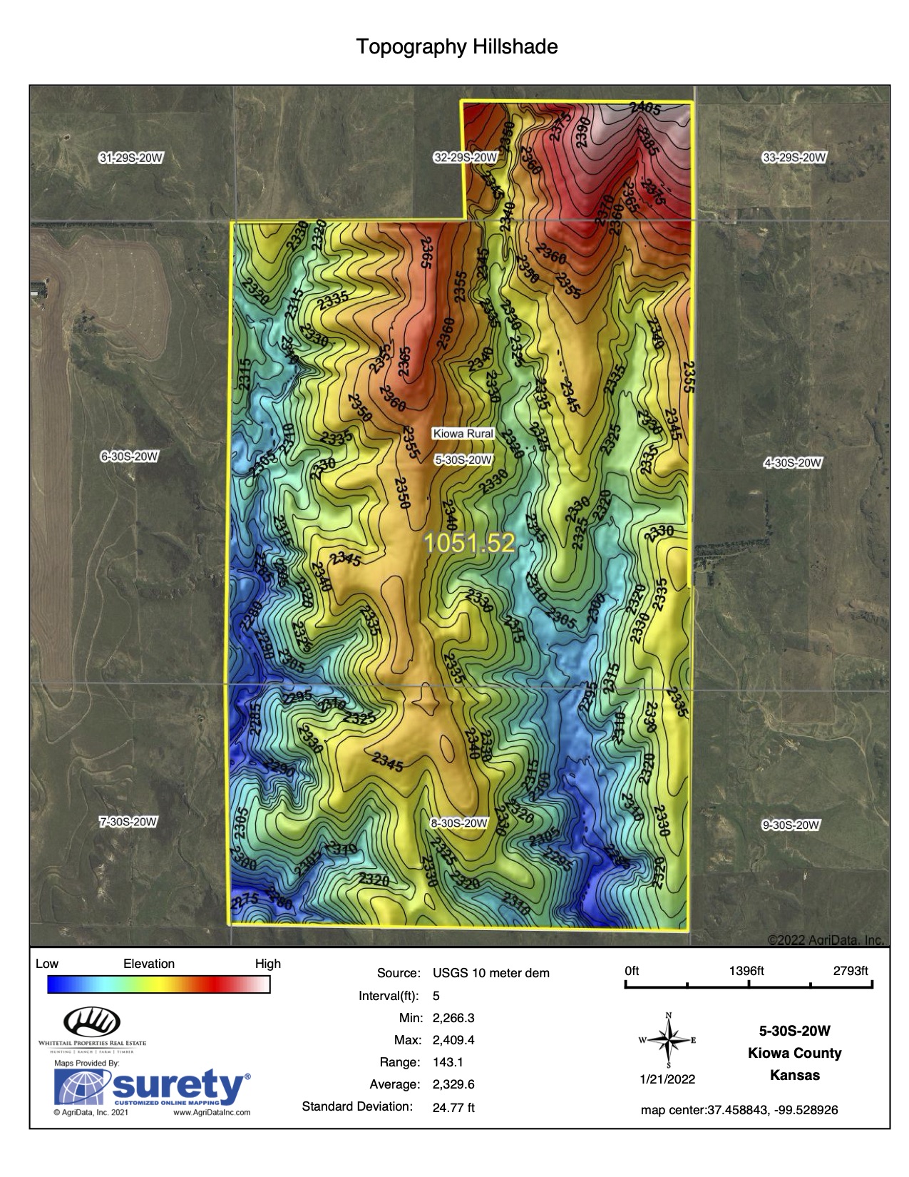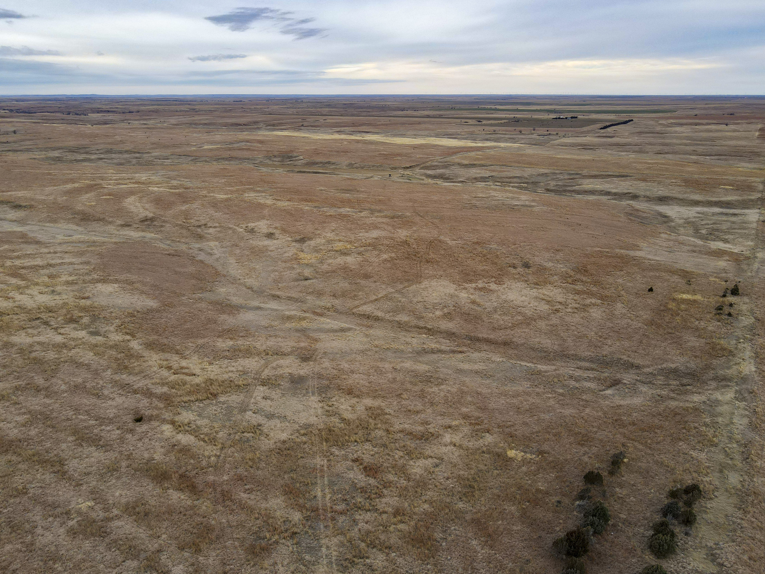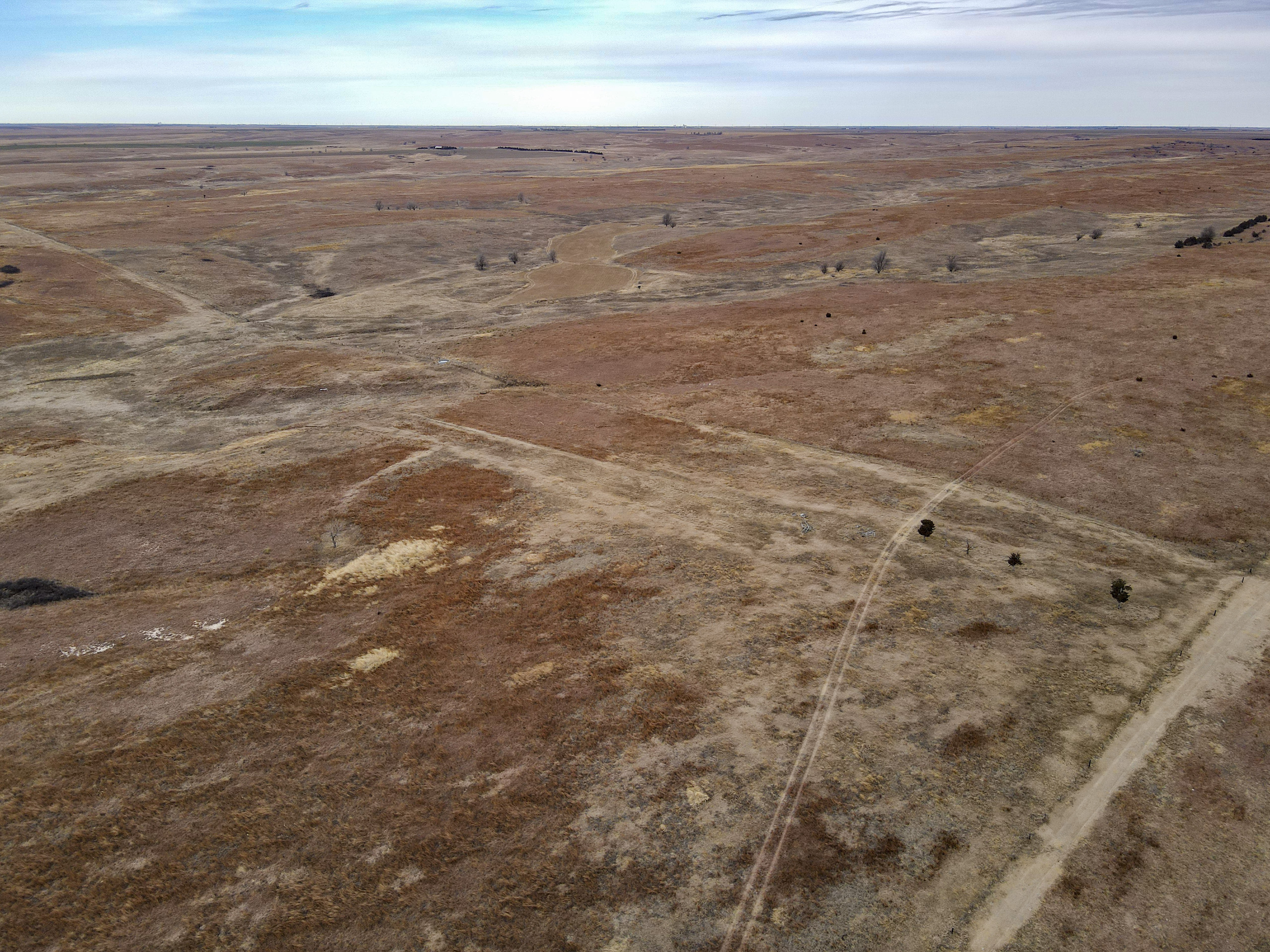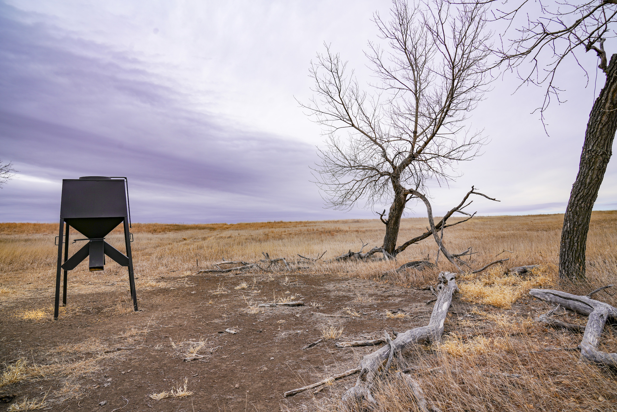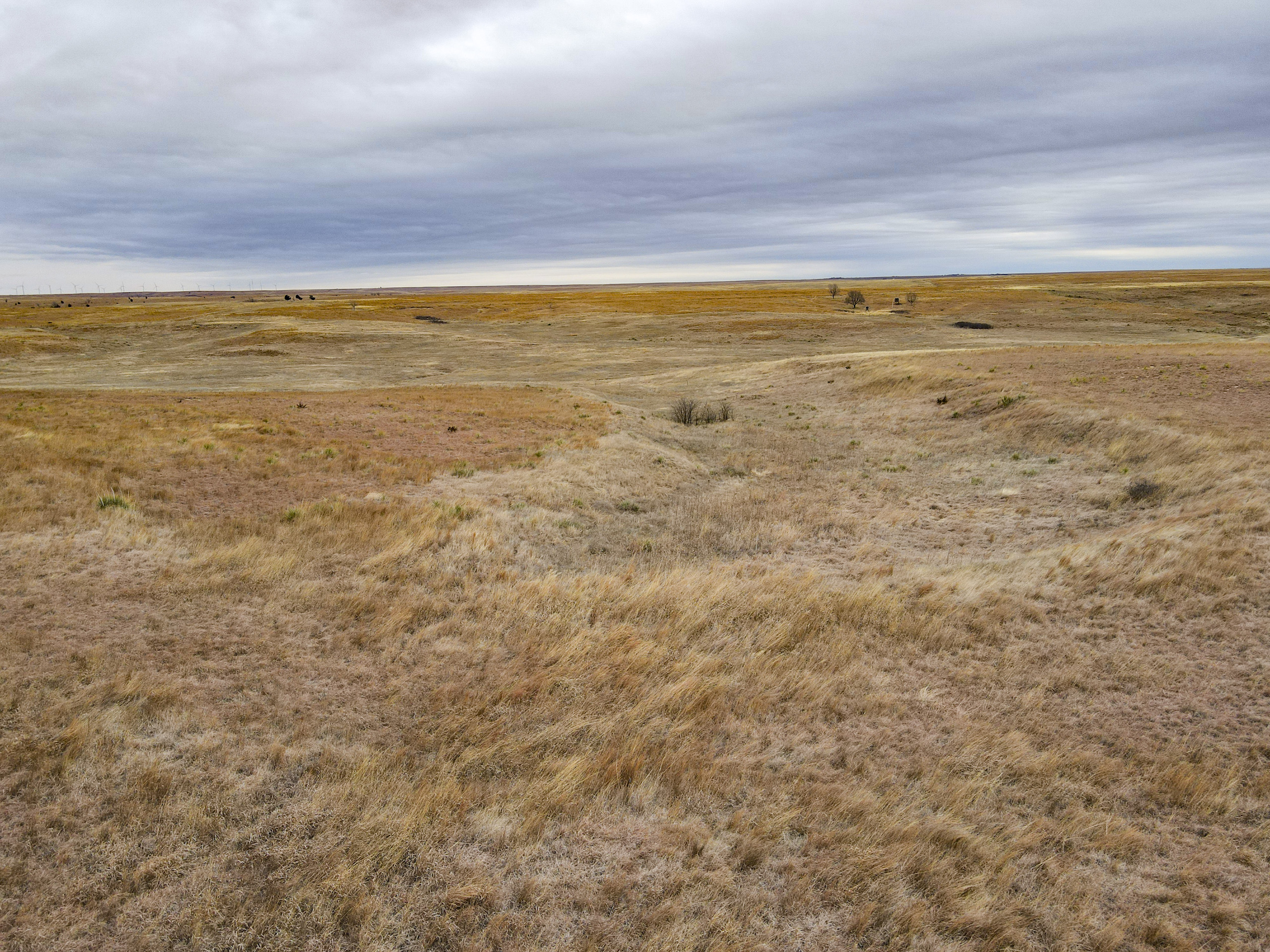 The big ranch country and wide-open spaces that lie in southern Kiowa County and northern Comanche county are many times considered just that, wide-open ranches. The people that are in the know realize that those passed over places and oceans of grassy pastures are the least pressured areas that still maintain just as much of a deer population as many other types of habitats. The benefit of that is the most important tool in big buck management…AGE! The deer in this area get old, “die of old age” old. When you combine that with neighboring ranches being under very strict management for maturity and you have an automatic and proven big deer property. There have been small several alfalfa fields implemented to draw deer and keep them throughout the summer months. This ranch also has numerous water tanks that are supplied by a well water line so there is a year-round freshwater supply for not only livestock if so desired, but also a wildlife supplement. Current owners have purposely taken very few bucks over the last several years and have put in place several Banks hunting blinds along with large feeders creating numerous hunt options for different winds and weather. DO NOT let the aerial fool you, check out the deer pictures and call us to go in-depth about what this property can produce as a big deer factory.