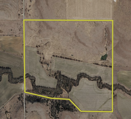 Located in one of the hottest areas in the state right now for whitetail deer hunting is this turnkey farm on Rattlesnake Creek. Food plots, dense timber, secluded fields, blinds, and feeders are just a few highlights this farm has to offer. Consisting of 56 total acres of tillable land broken up into 3 separate fields, 36 acres are currently planted to a milo crop which the outer rows will be left standing for the wildlife. A secluded 20 acre field is planted to alfalfa creating the picture perfect setup for whitetail and turkey hunting. This alfalfa field is totally secluded and invisible from the road. A new elevated Banks blind is in place with an all-seasons feeder also included. Several great deer and turkey pictures lately from this farm as you will notice in the photo section of the link. On the income side of things, you can expect approximately $6,000 annually with a cash rent from the tillable and pasture portion. The north side of the property is fenced separately that accommodates summertime grazing. A nice pond is located on the east side of the property. Three brand new gates have been installed recently with a new fence surrounding the entire property. Properties of this caliber rarely hit the market. I suggest taking a detailed look into this if you're serious about whitetail deer hunting. Call one of the listing agents Mitch Keeley or Adam Hann to set up a private showing of this hunting property. You better hurry, this place will not last!