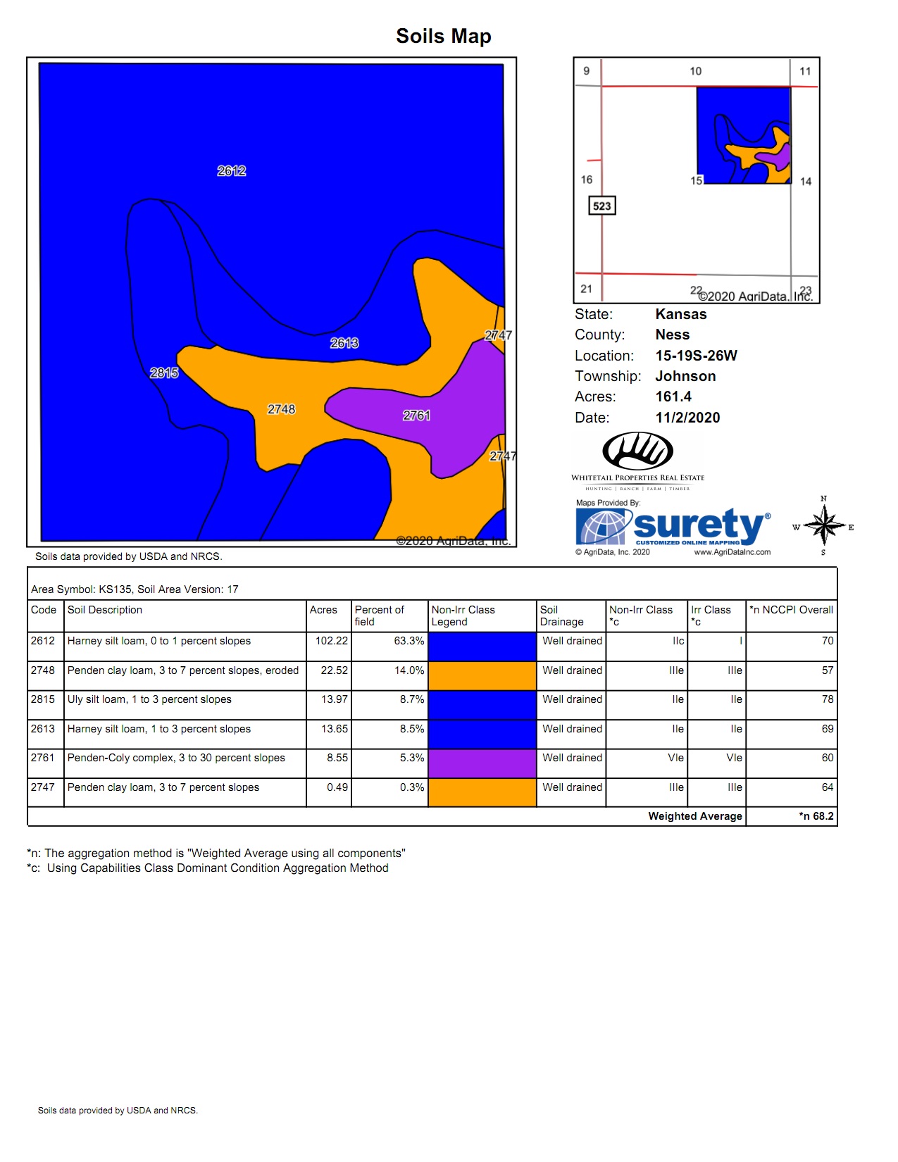 - Soil Types: 115.87 acres of Harney silt loam 0-3% slope; 13.97 acres of Uly silt loam 1-3%