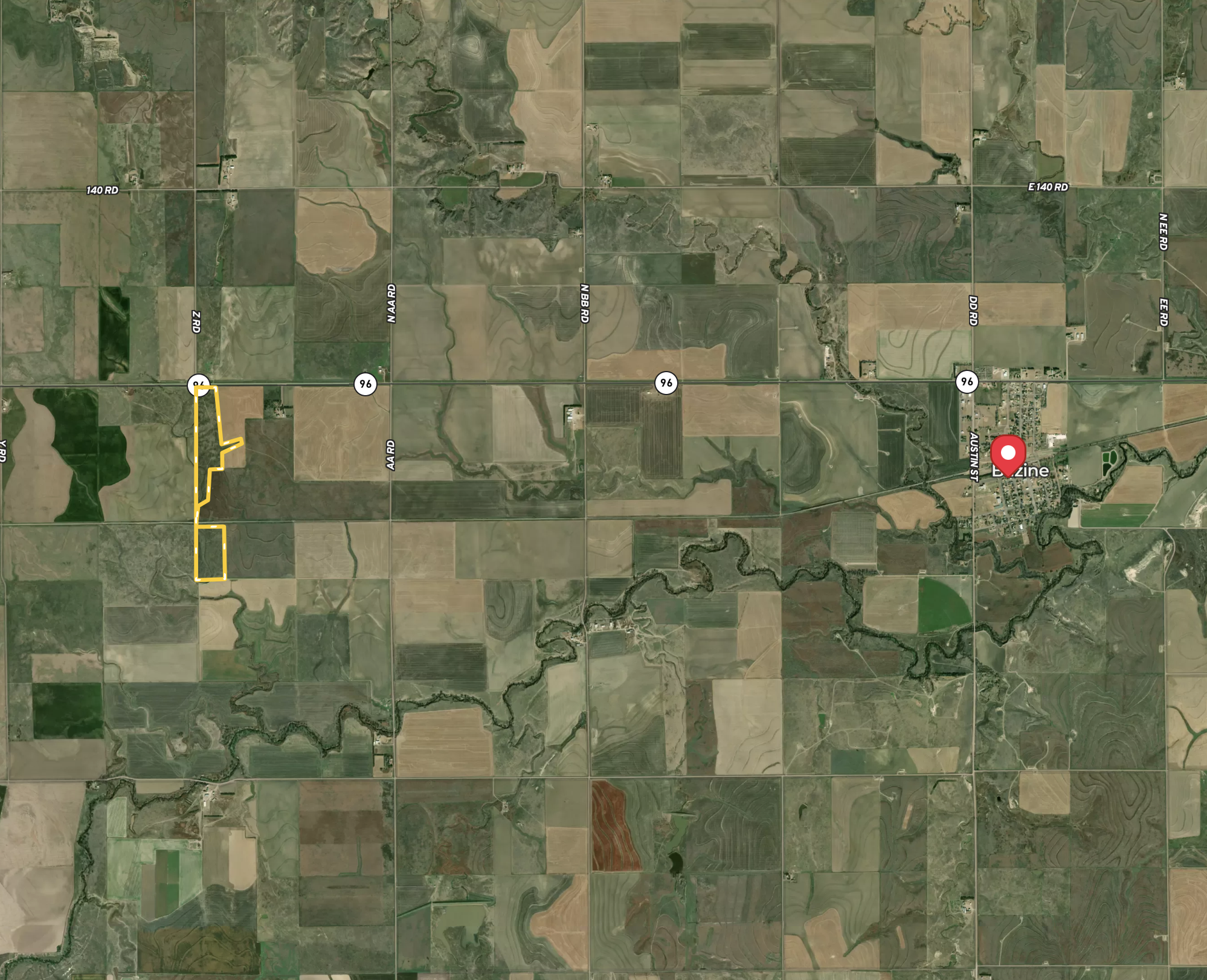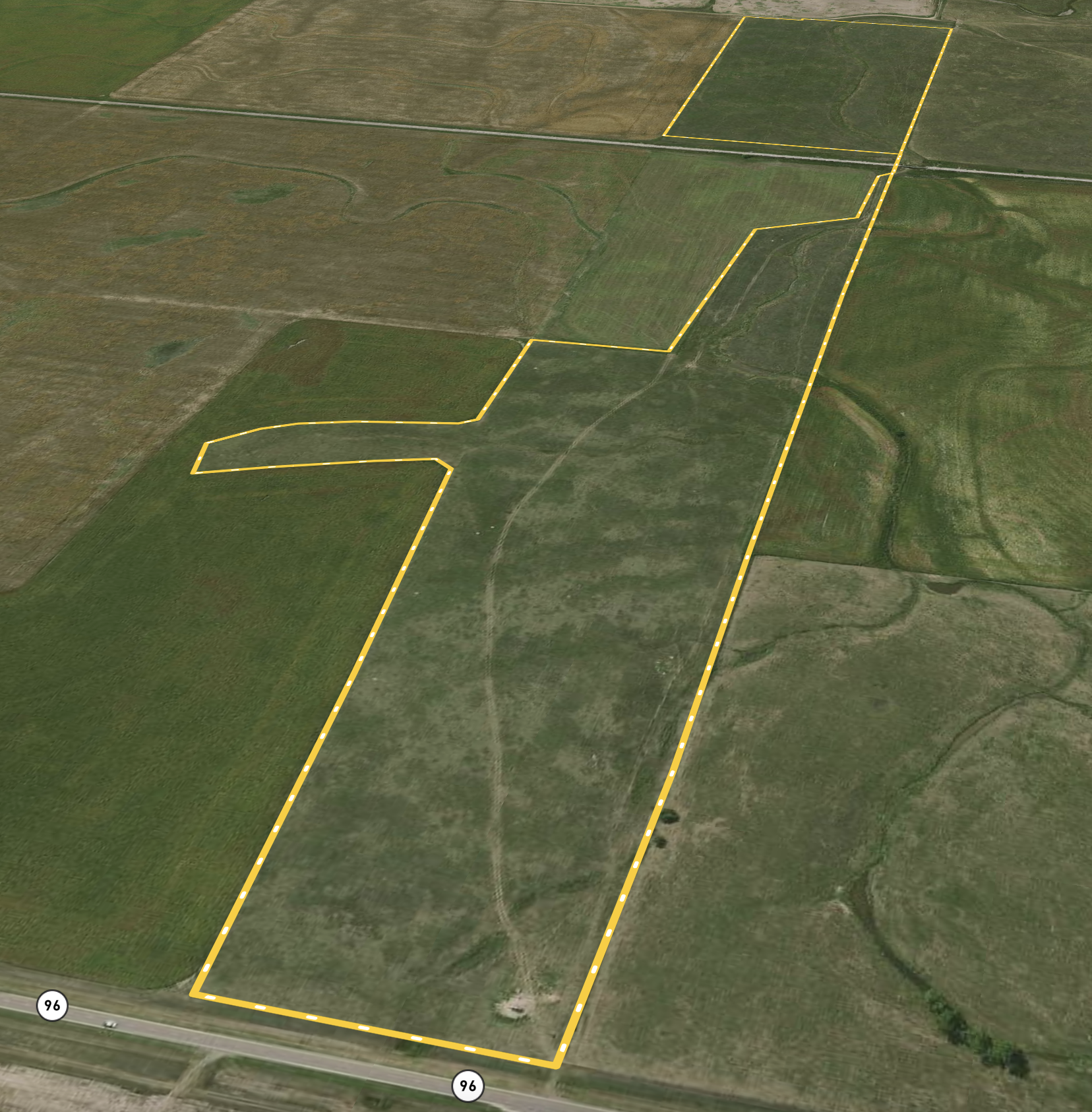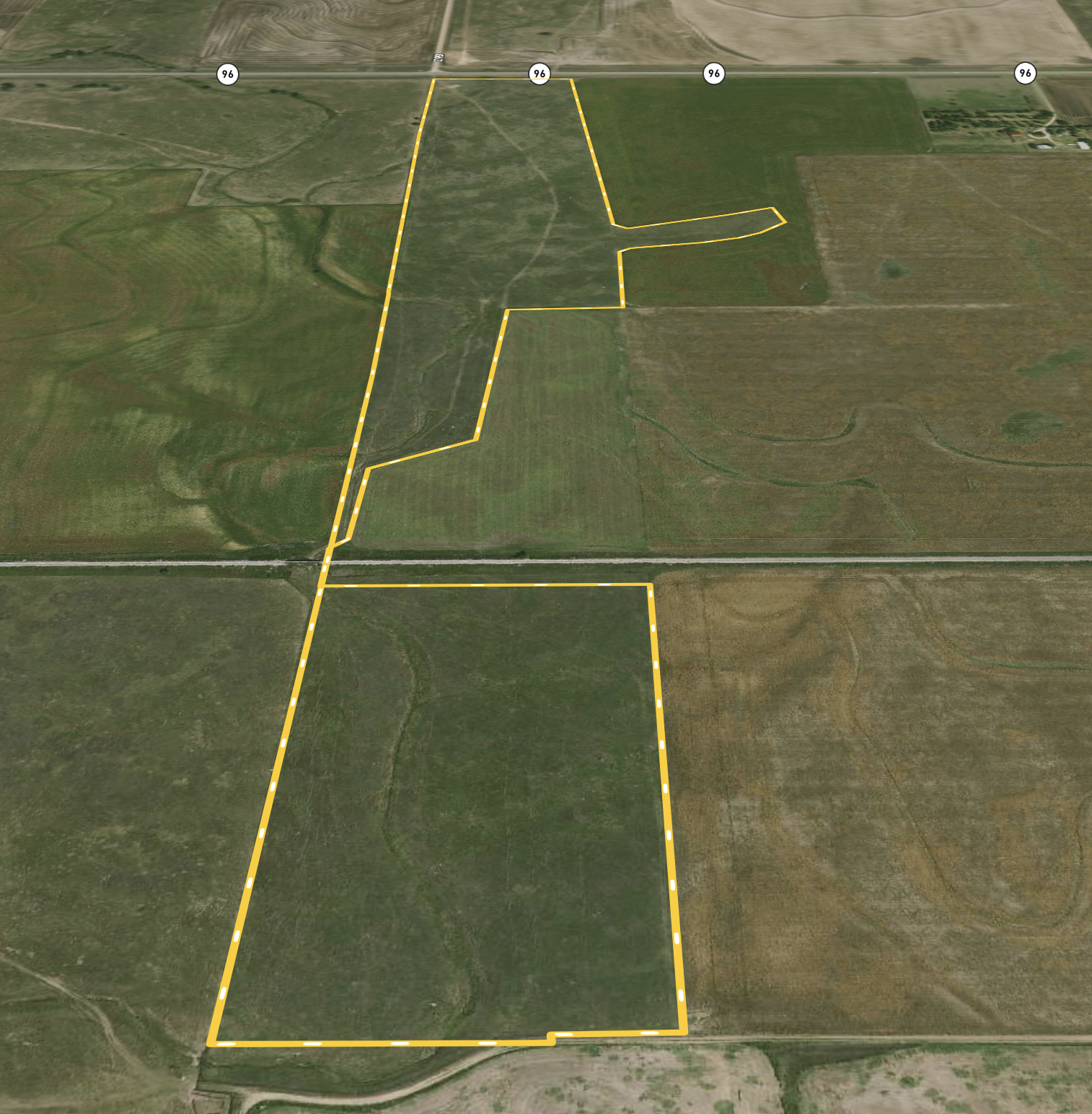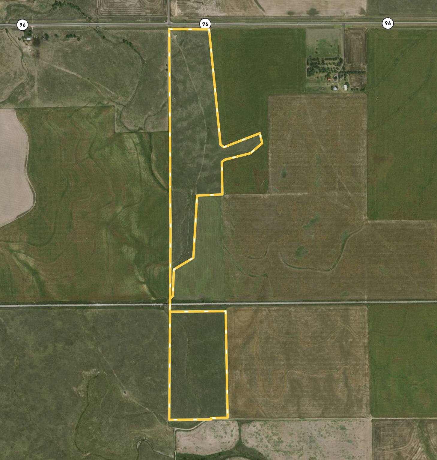- All grassland tract extending 1 mile north to south from HWY 96