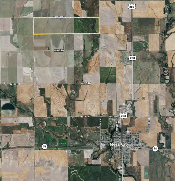- Located 3 miles north of Ness City and 1 mile west of HWY 283. Property borders the south side of W 170 Rd for 2 miles