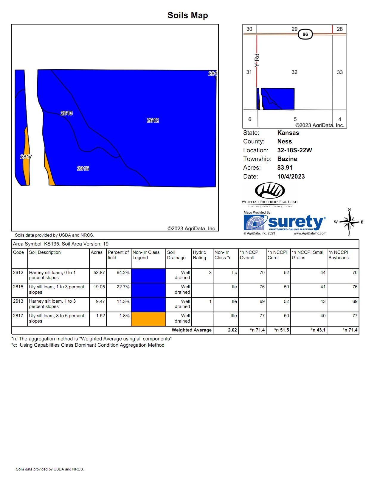 - Legal Description: 90.58 acres m/l within SW/4 of Section 32-18-22 in Ness County, Kansas