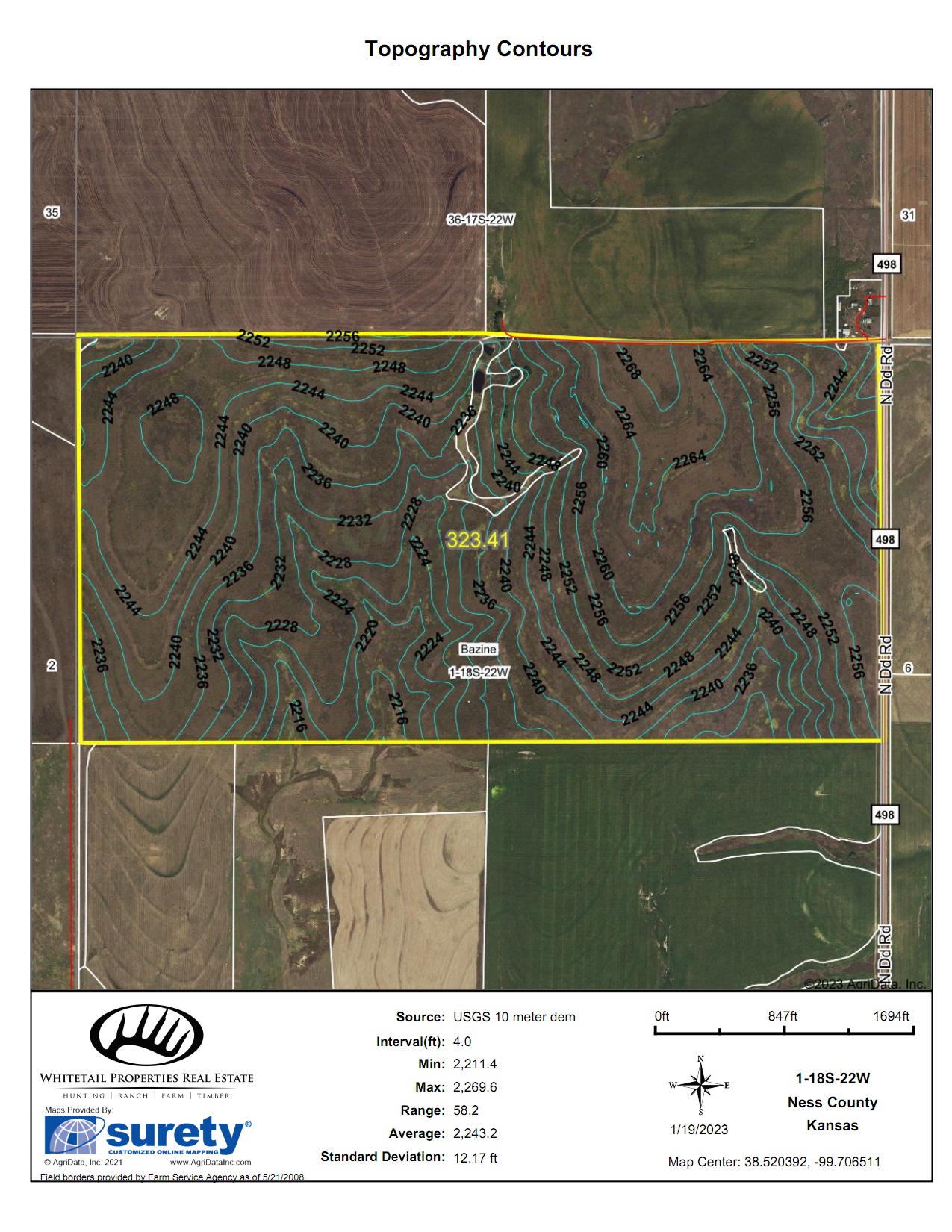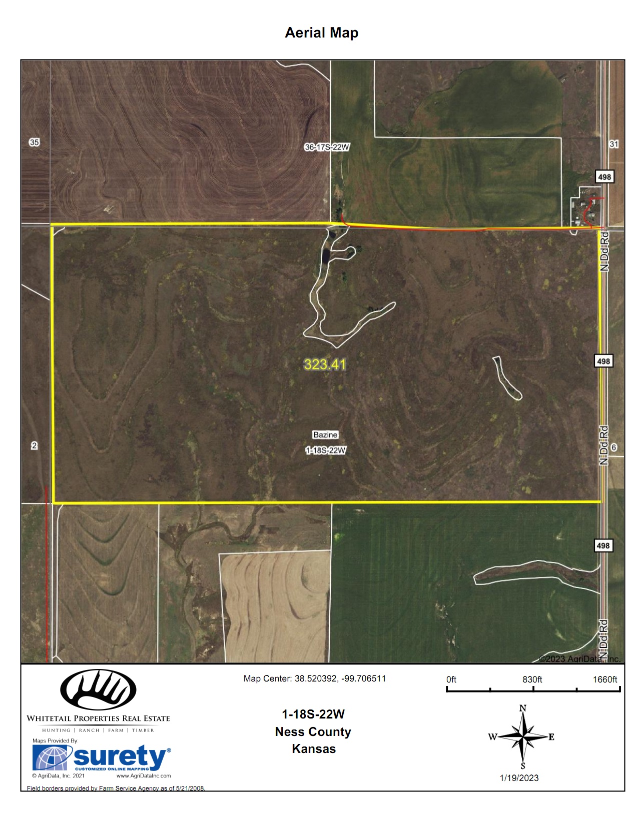 - Legal Description: 323.41 acres within the N/2 of Section 1, Township 18 South, Range 22 West in Ness County, Kansas