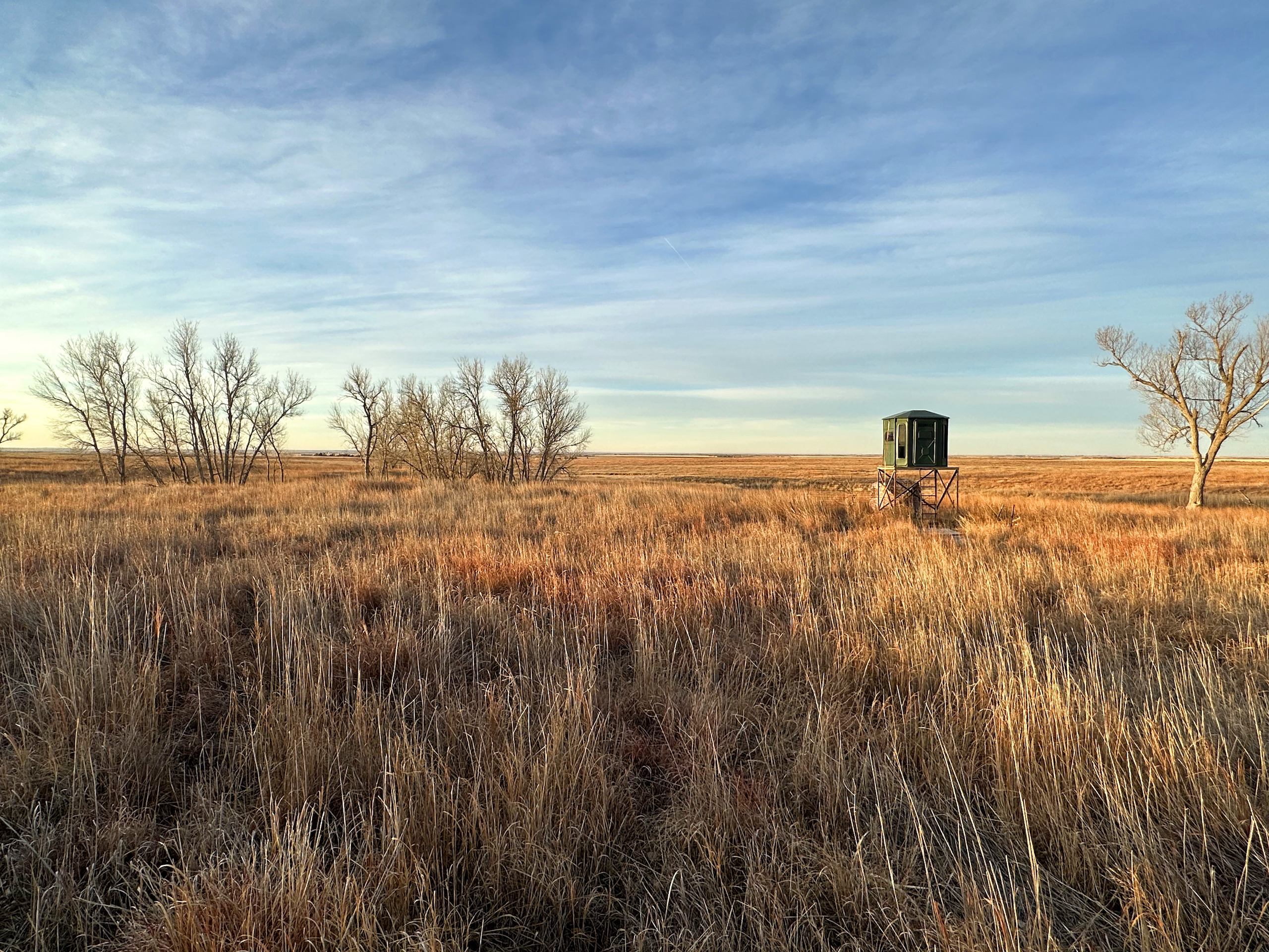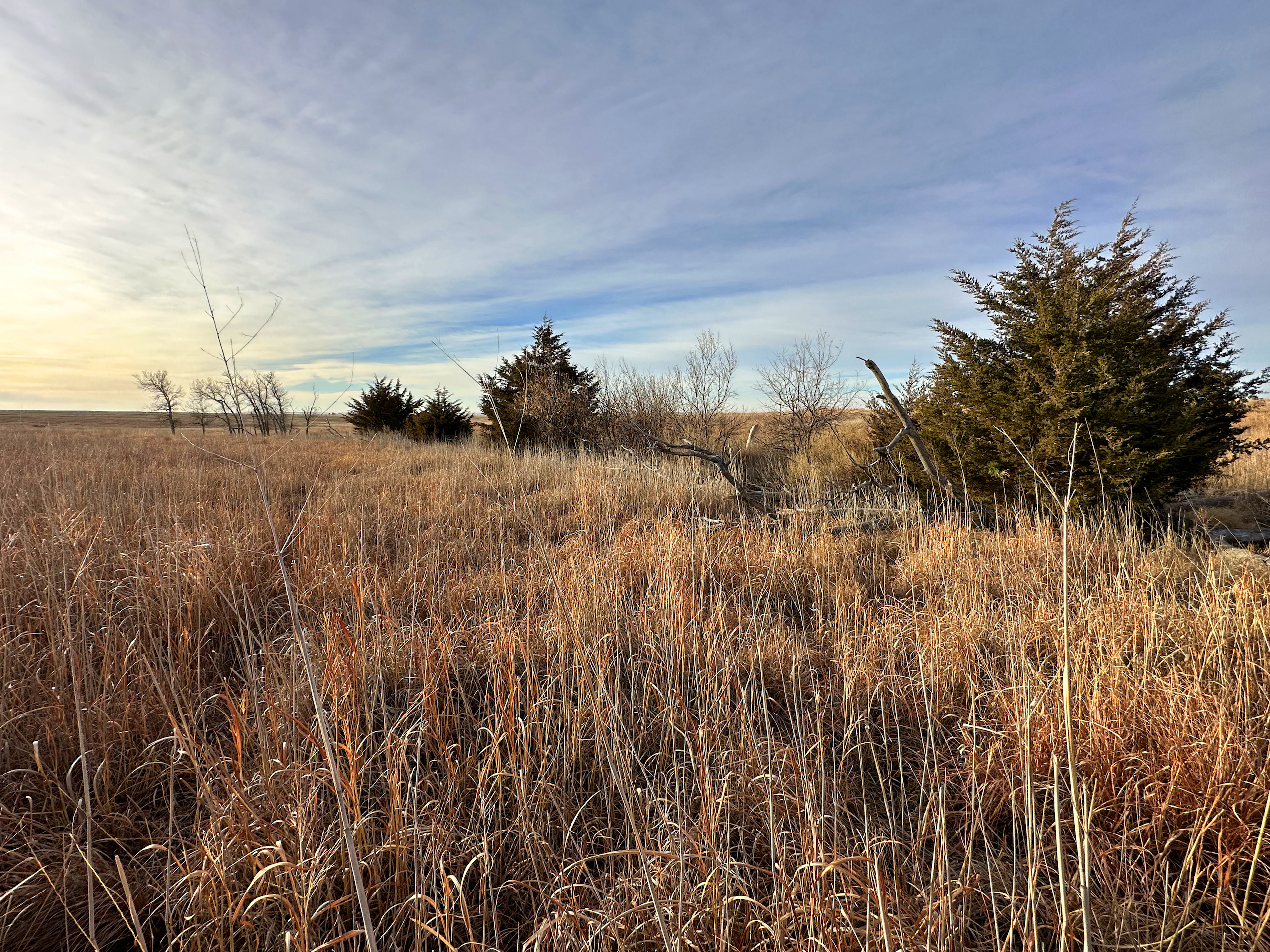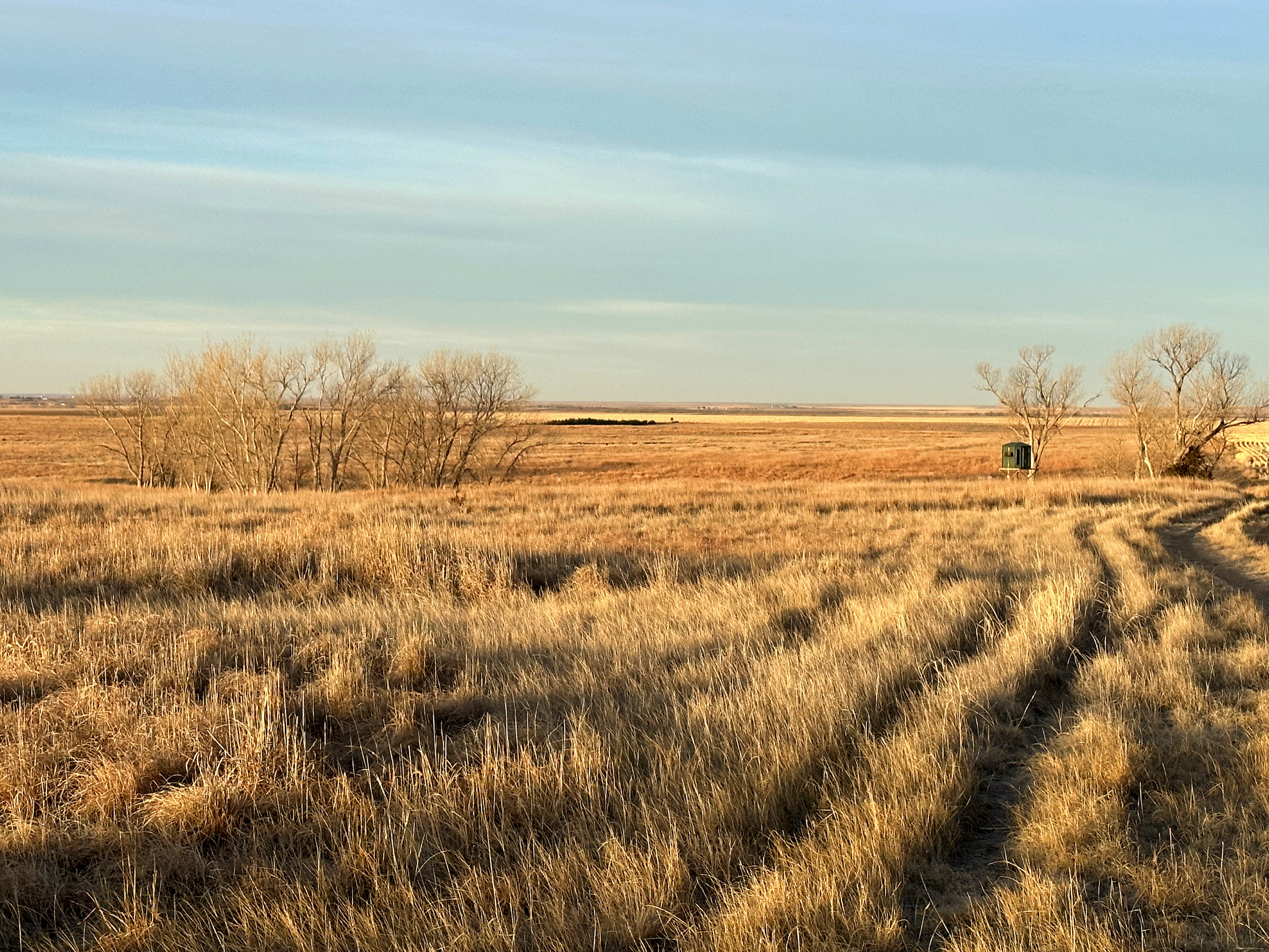 There’s just something about a rolling CRP farm on the plains of Central and Western Kansas that is like a magnet for whitetail deer and upland birds. Anyone who has hunted these types of farms can relate to the incredible enjoyment of watching a Booner whitetail work his way through the ‘openness’ of a CRP field, only to watch them magically disappear in the blink of an eye. Whitetails love to bed in the warm season grasses during the fall and winter months and the colder it gets, the more the deer maximize it's security and protection from the elements. The tall varieties of bluestem and switchgrass blends, among others, can also work to the advantage of the hunter when playing the wind and rut conditions correctly. Many trophy bucks are harvested throughout this part of the state each year by way of a successful spot and stalk hunt with a bow. This can be one of the most challenging and rewarding methods of hunting prairie whitetails. Of course, the tremendous habitat provided by CRP is also very beneficial to all other wildlife inhabiting this region. Most notably, the ringneck pheasant, which thrives in this area and is most commonly found in a reasonably sized field of CRP like this specific farm.