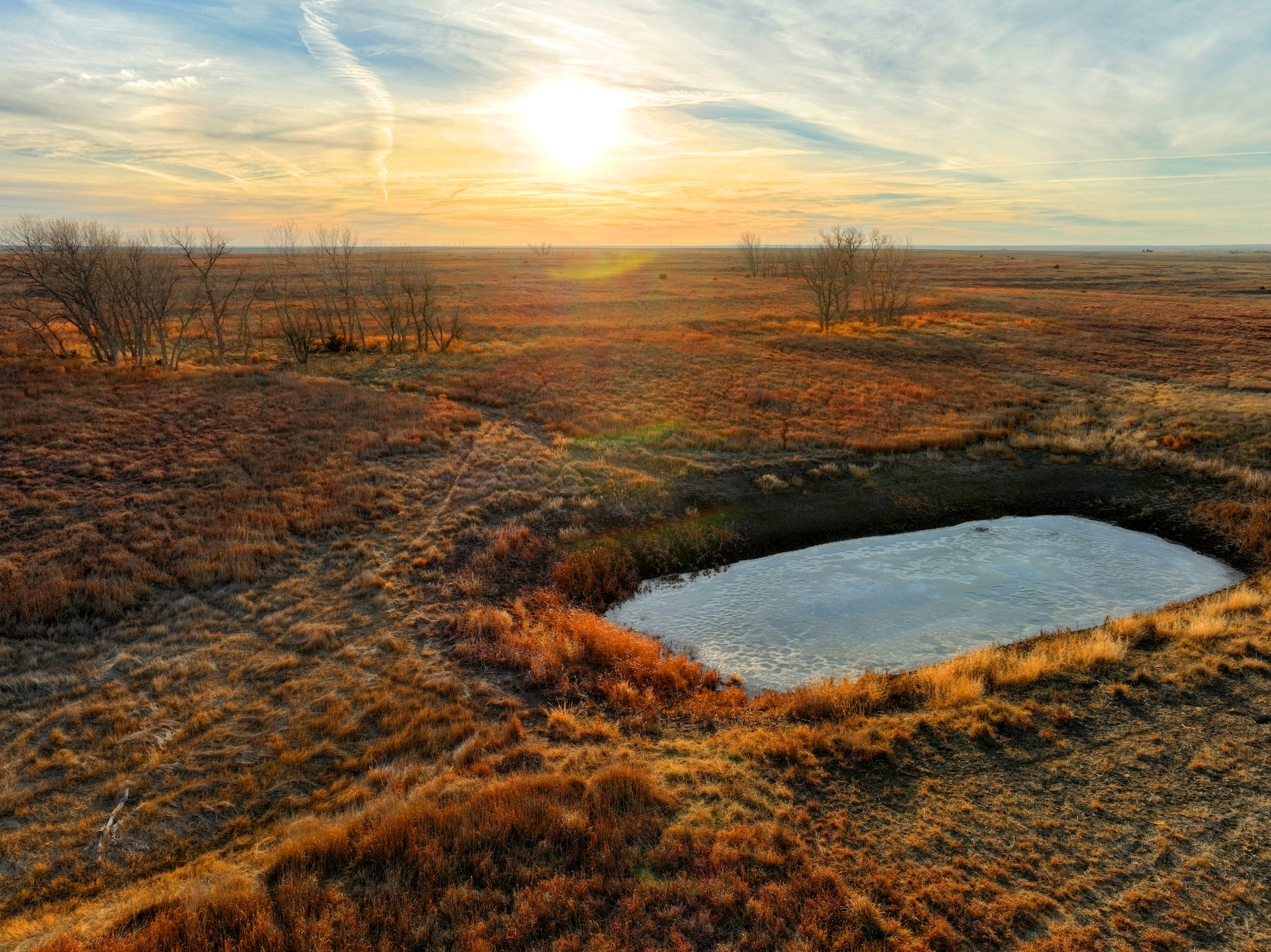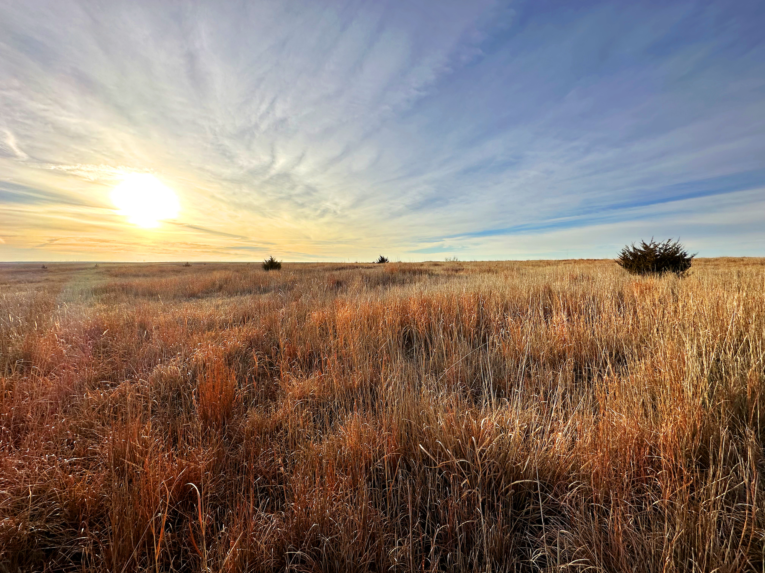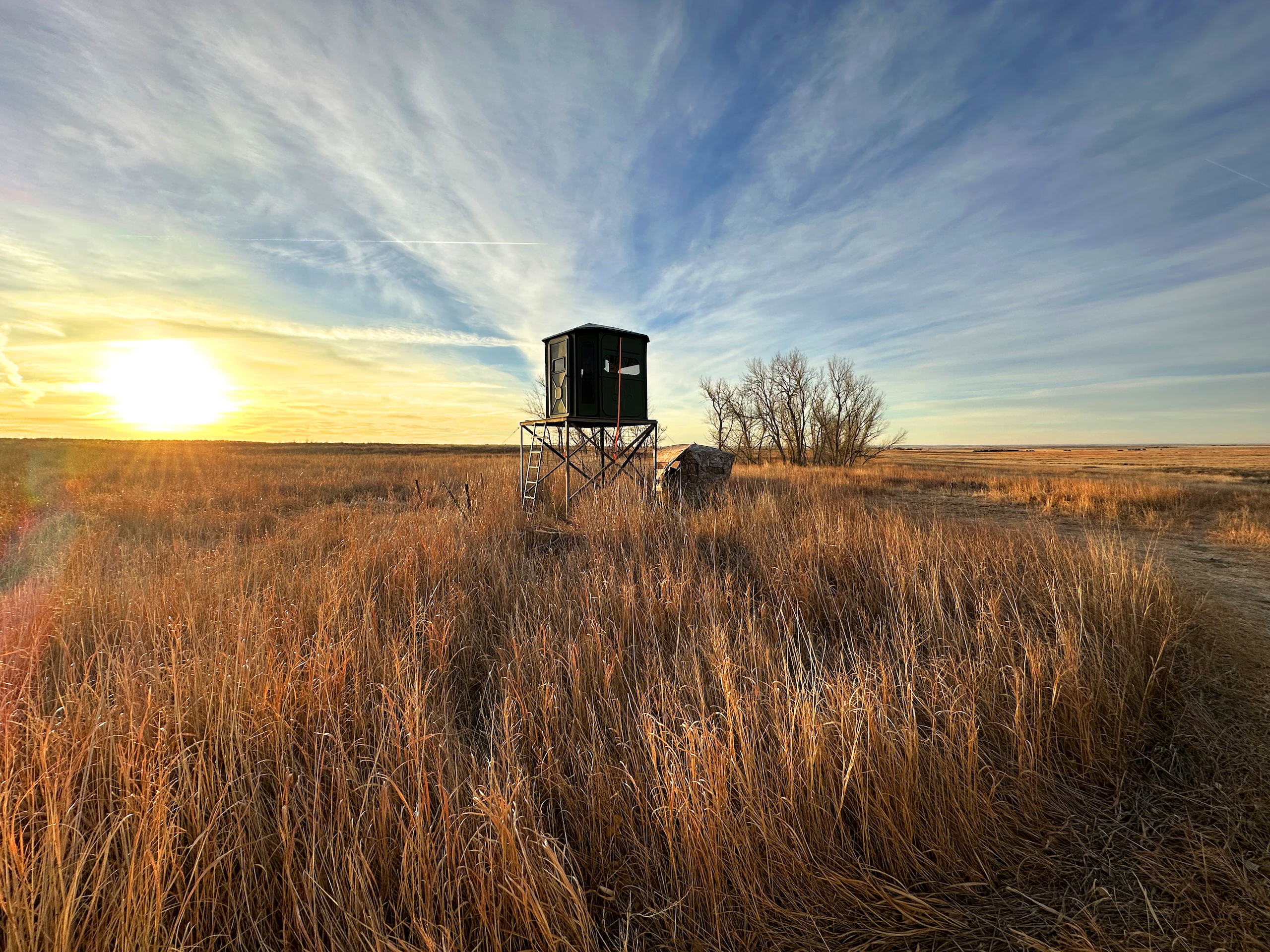 There’s just something about a rolling CRP farm on the plains of Central and Western Kansas that is like a magnet for whitetail deer and upland birds. Anyone who has hunted these types of farms can relate to the incredible enjoyment of watching a Booner whitetail work his way through the ‘openness’ of a CRP field, only to watch them magically disappear in the blink of an eye. Whitetails love to bed in the warm season grasses during the fall and winter months and the colder it gets, the more the deer maximize it's security and protection from the elements. The tall varieties of bluestem and switchgrass blends, among others, can also work to the advantage of the hunter when playing the wind and rut conditions correctly. Many trophy bucks are harvested throughout this part of the state each year by way of a successful spot and stalk hunt with a bow. This can be one of the most challenging and rewarding methods of hunting prairie whitetails. Of course, the tremendous habitat provided by CRP is also very beneficial to all other wildlife inhabiting this region. Most notably, the ringneck pheasant, which thrives in this area and is most commonly found in a reasonably sized field of CRP like this specific farm.