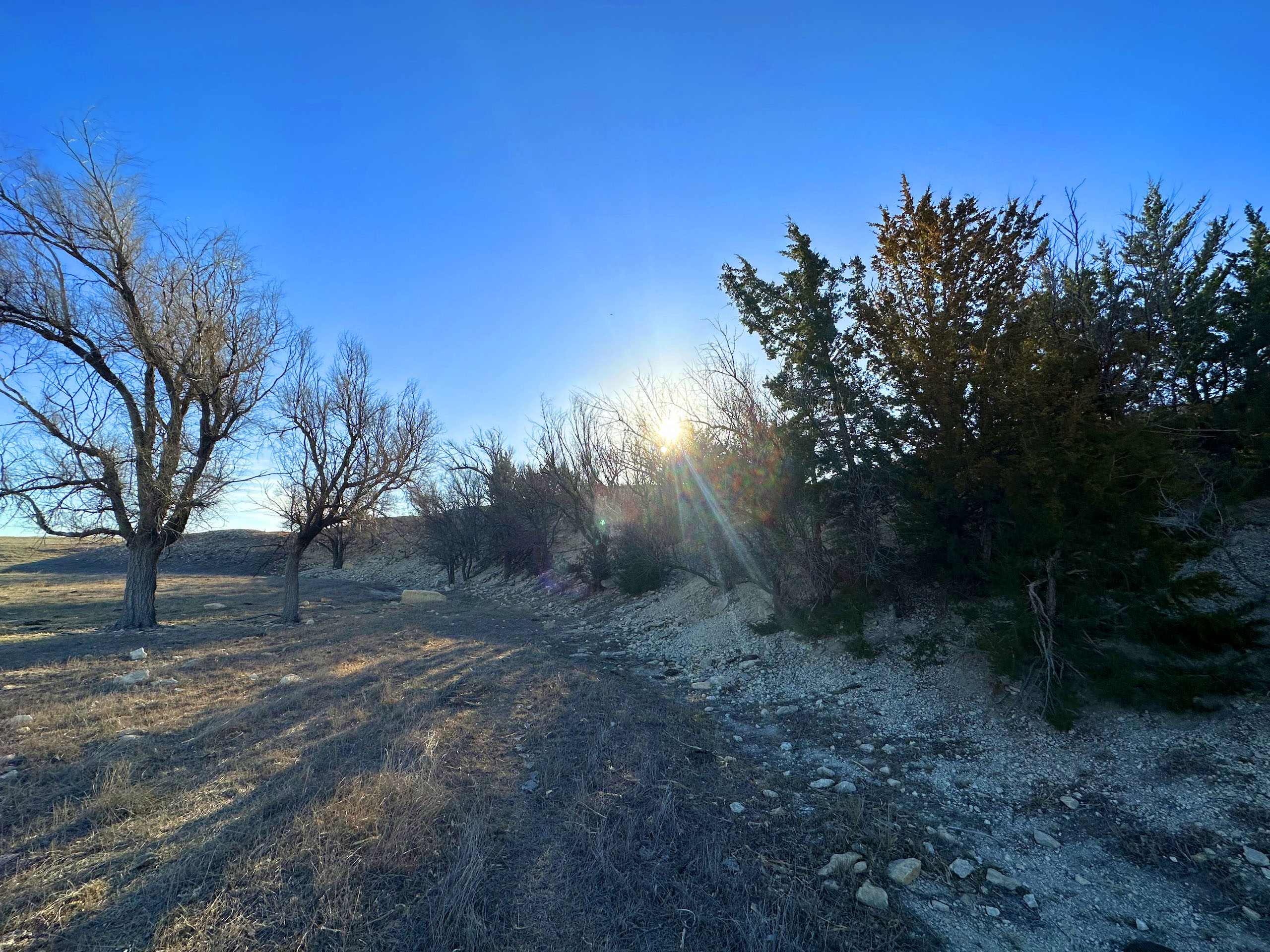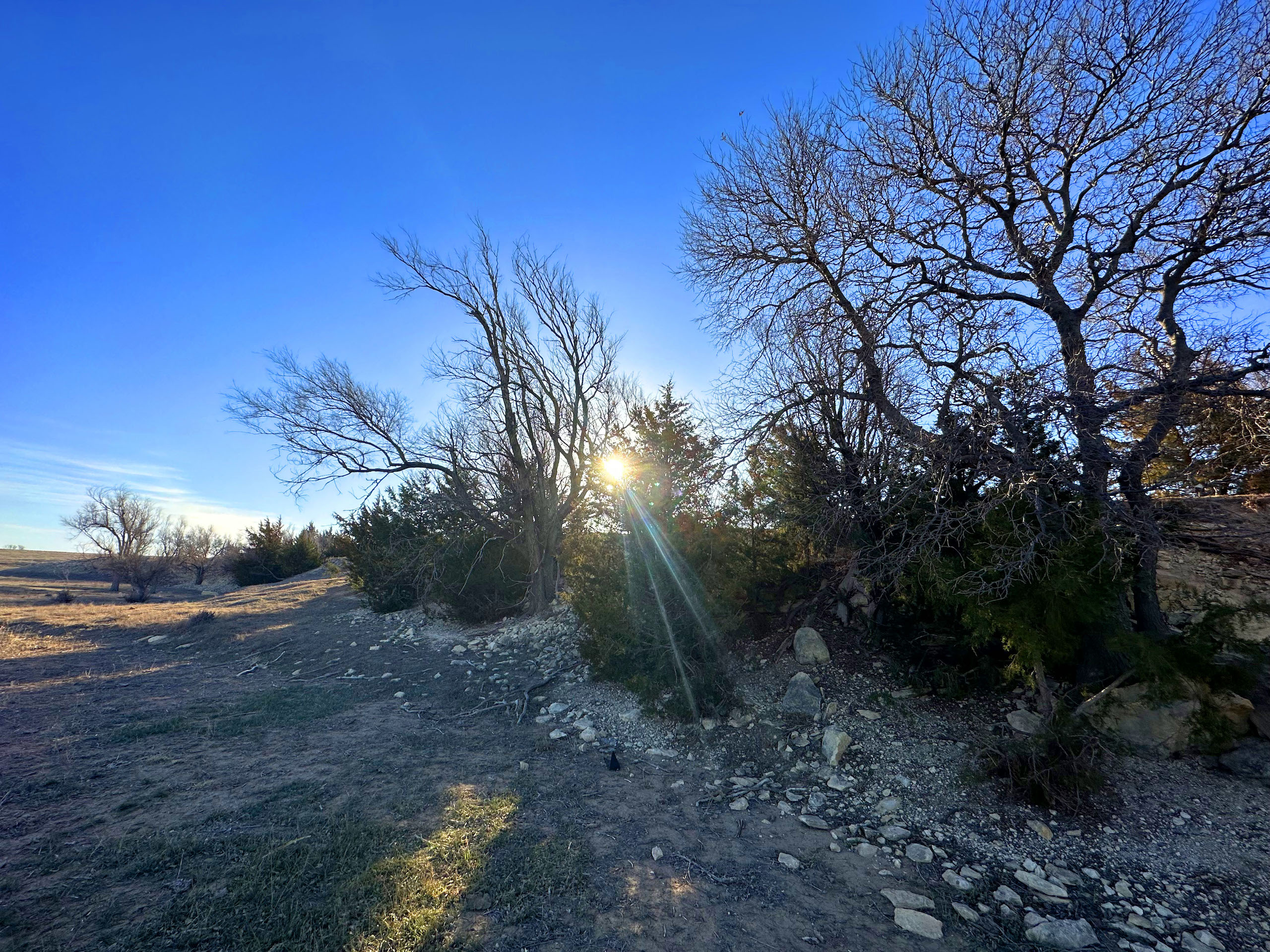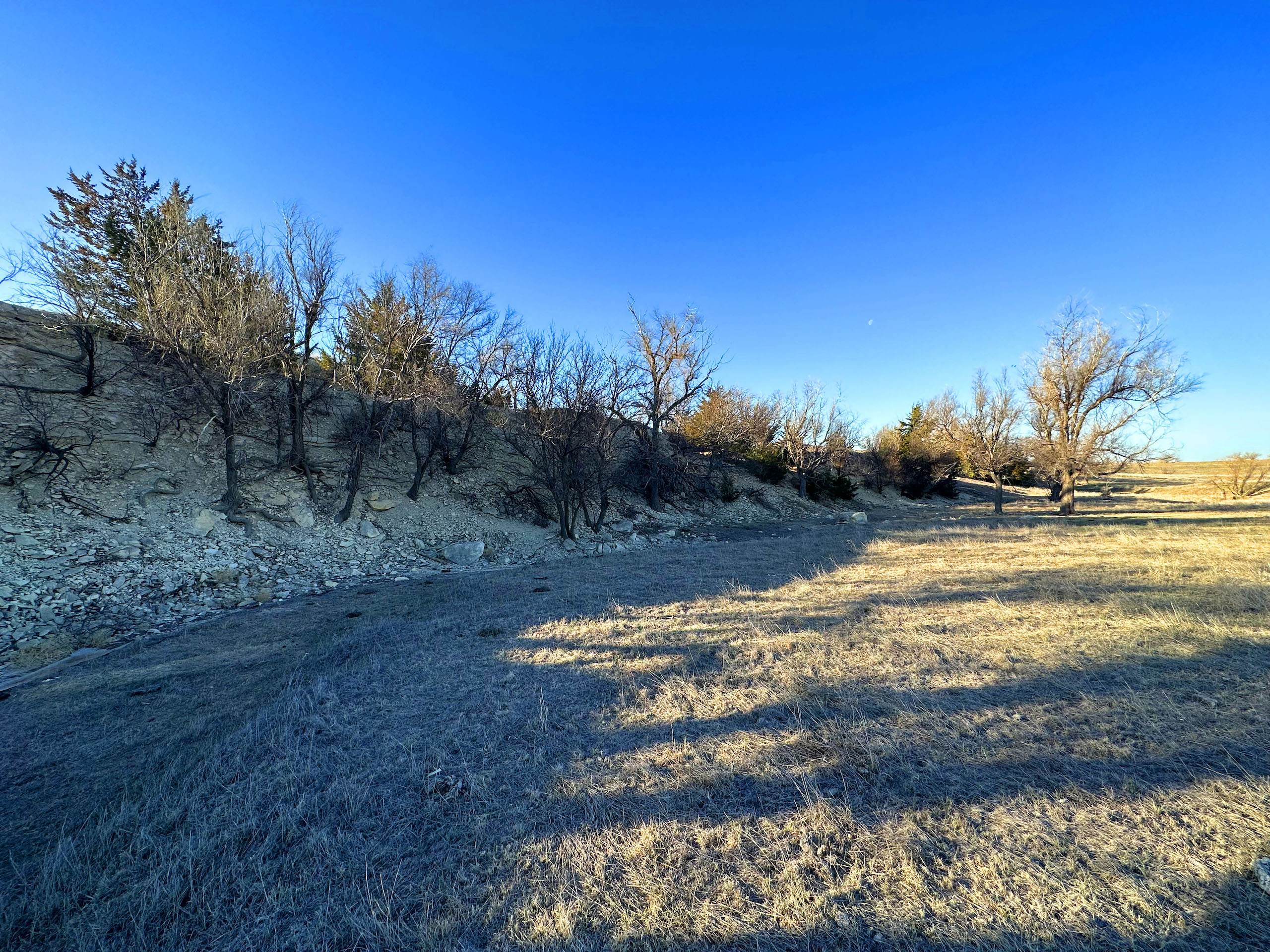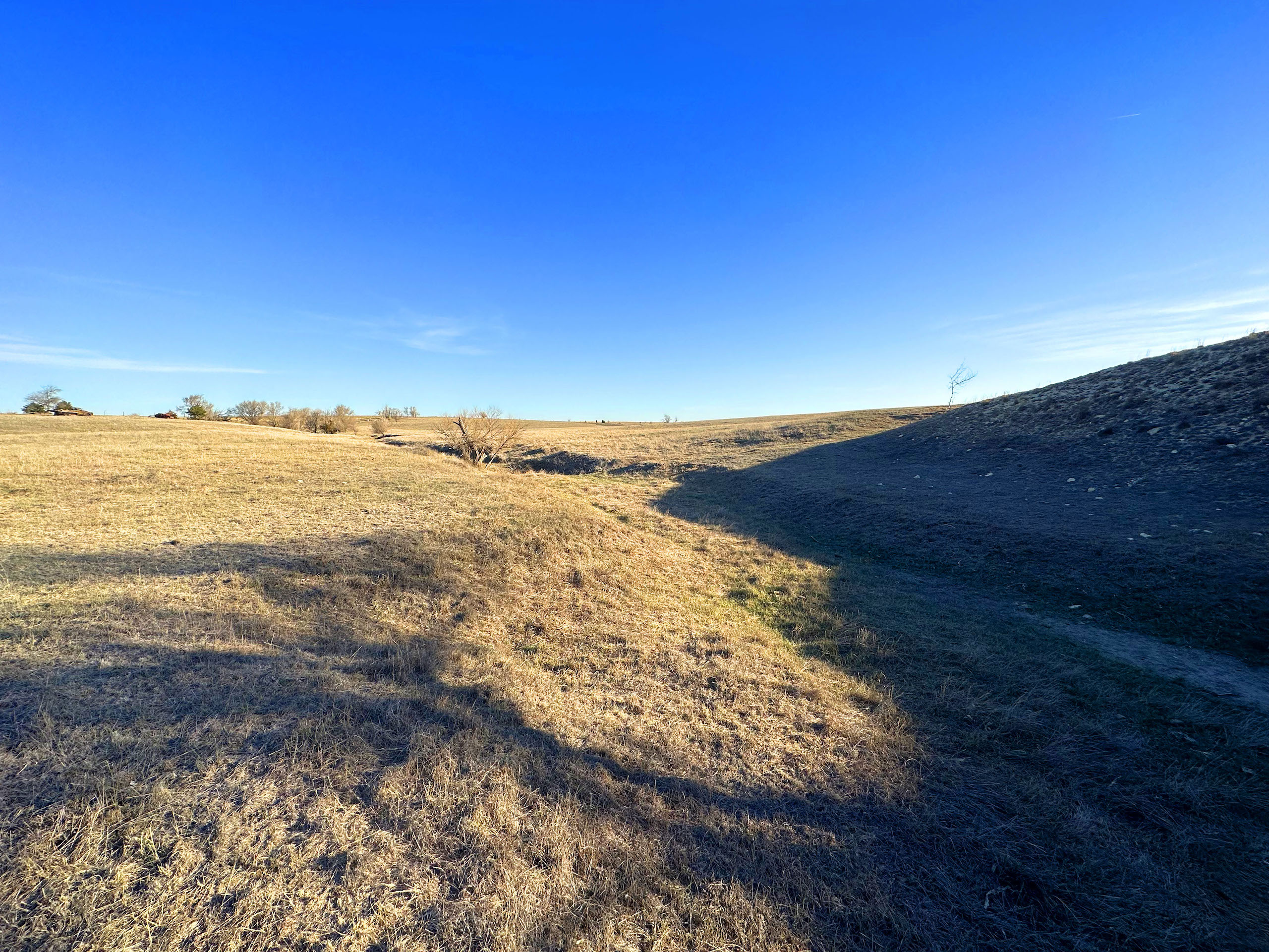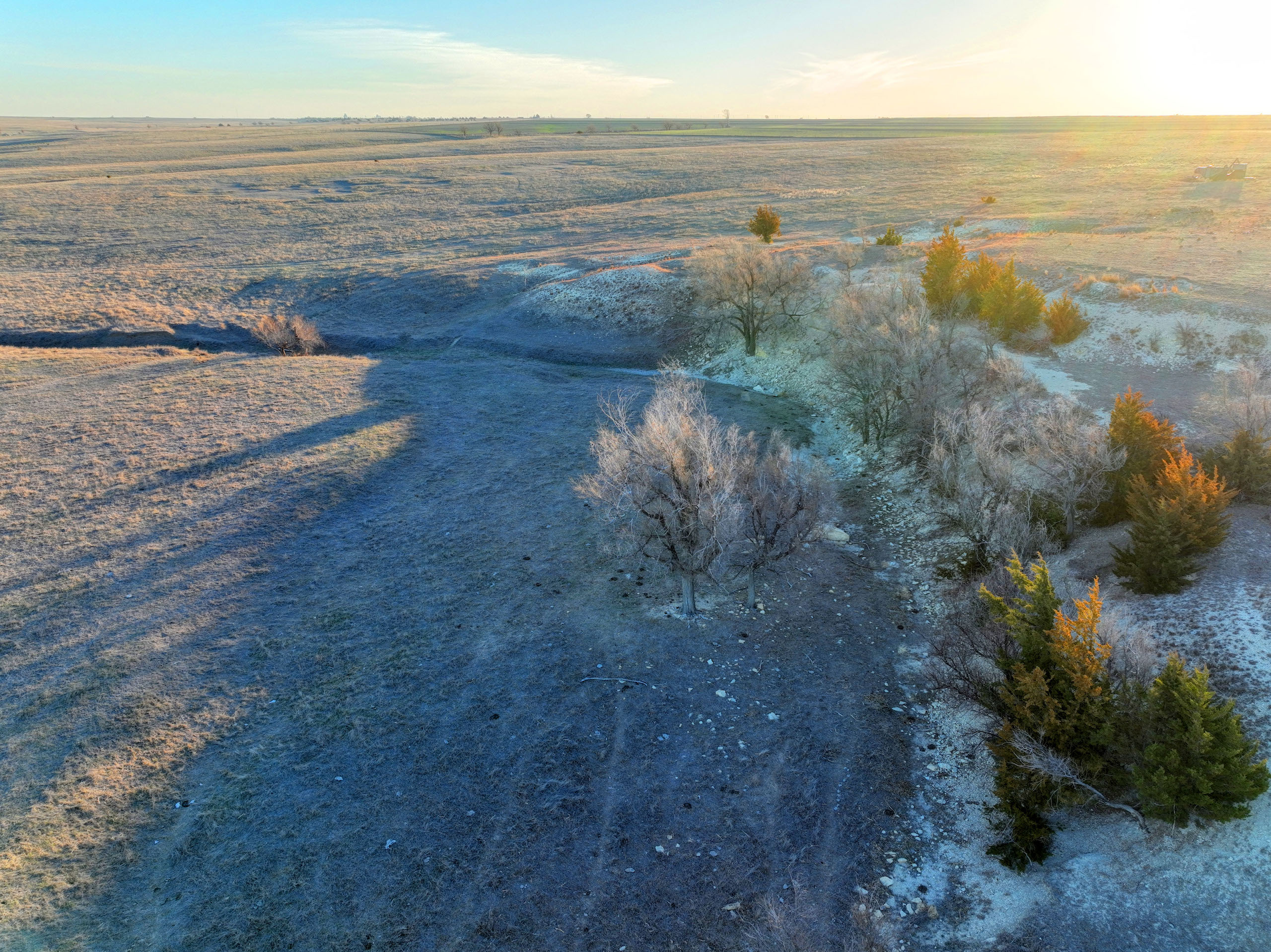 This quarter section in Ness County, KS, checks many boxes for both the avid hunter and the farm operator looking to add some more quality acres. In an area plush with wildlife and excellent crop production, this farm features a good dose of upland and big game habitat while also featuring nearly 92 acres of cropland consisting of Class II and III silt loam soils. The southeast corner of the property features over a ¼ mile of double-rowed cedar windbreaks, an old pond site, and tall grass and native forbs that are beneficial for holding pheasants, quail, and deer. Long cedar windbreaks like this are frequently used by whitetail and mule deer in this area as shelter from the cold winter winds. The nearly 52 acres of grassland at the NW corner is highlighted by a rugged rock ledge overlooking a seasonal stream bed with a few trees providing shade and cover for deer in the area. Even some gobbling tom turkeys were heard nearby upon our first visit.