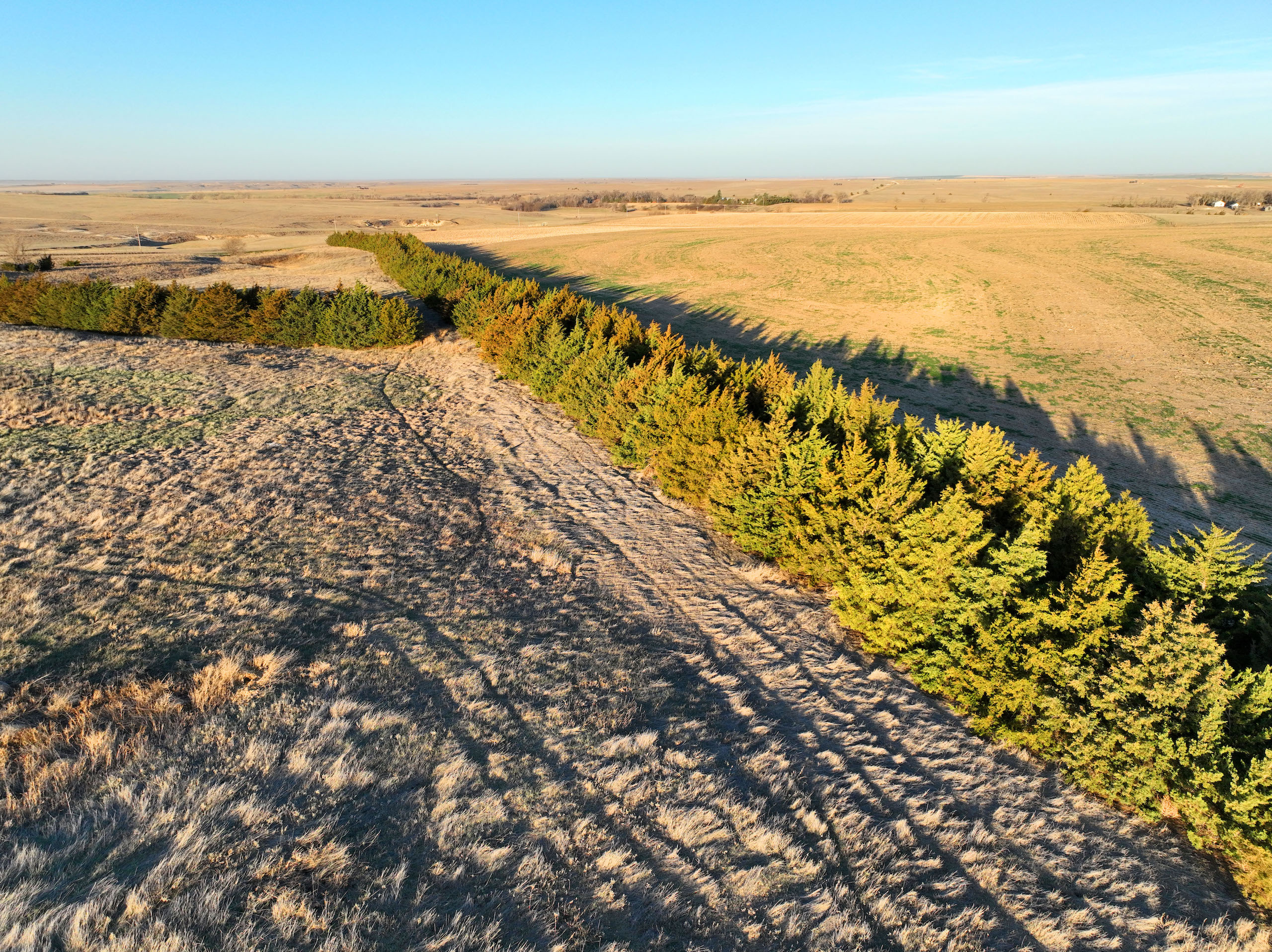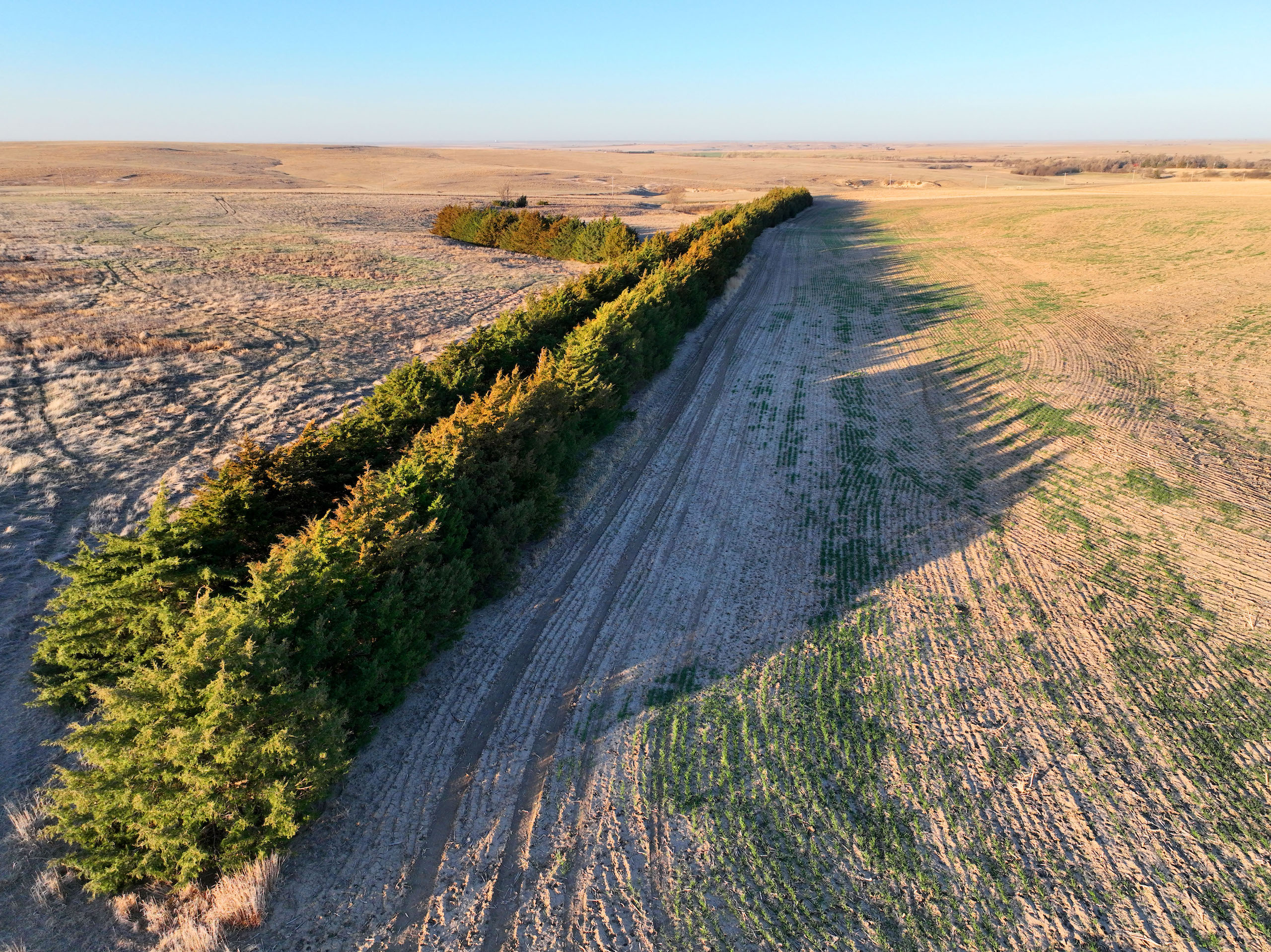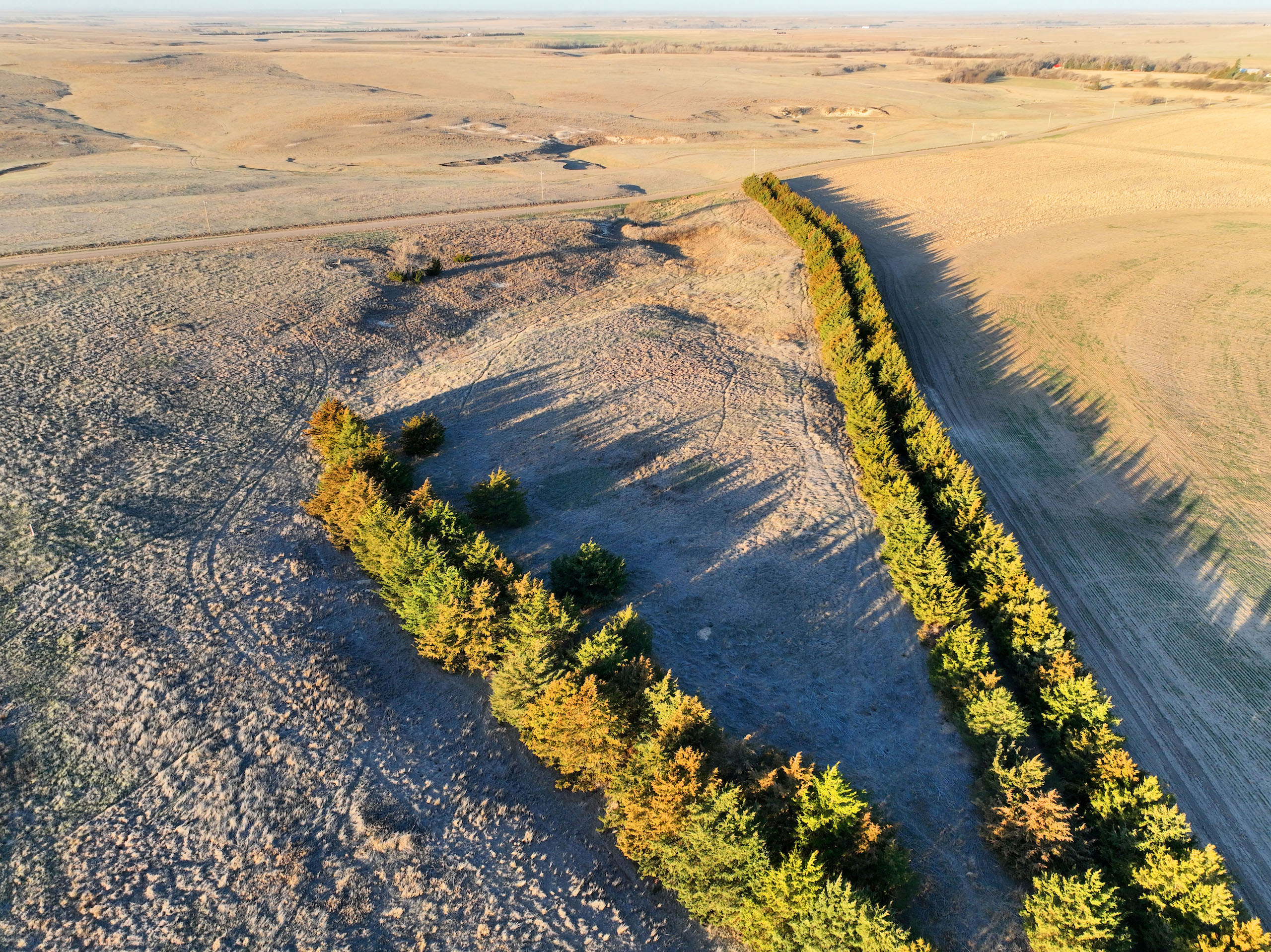 - Over 550 yards of cedar windbreaks planted in double rows at the SE corner of the property. These windbreaks provide excellent security and habitat for upland birds and deer. Several deer tracks on the property and great cover for pheasants and quail