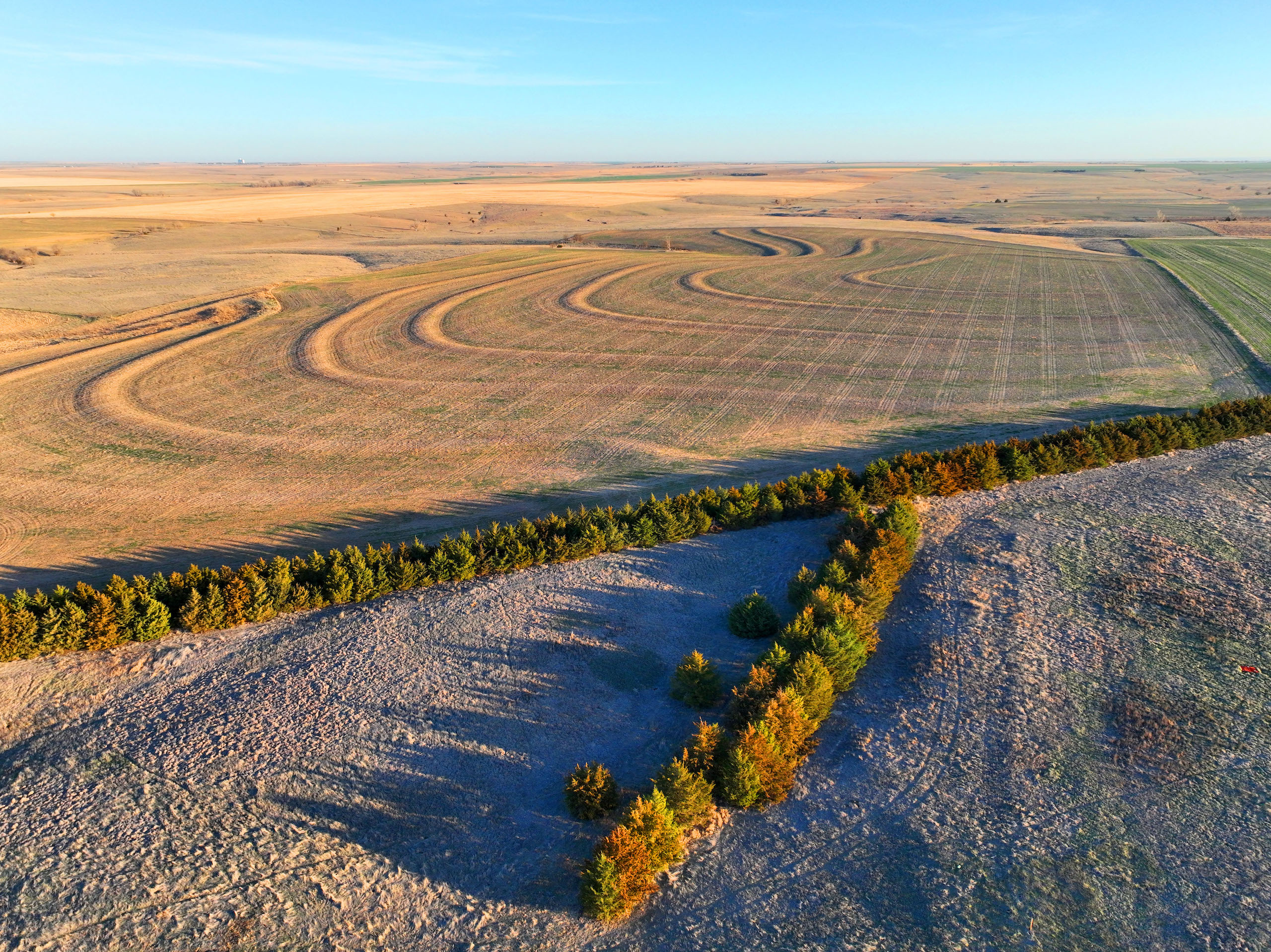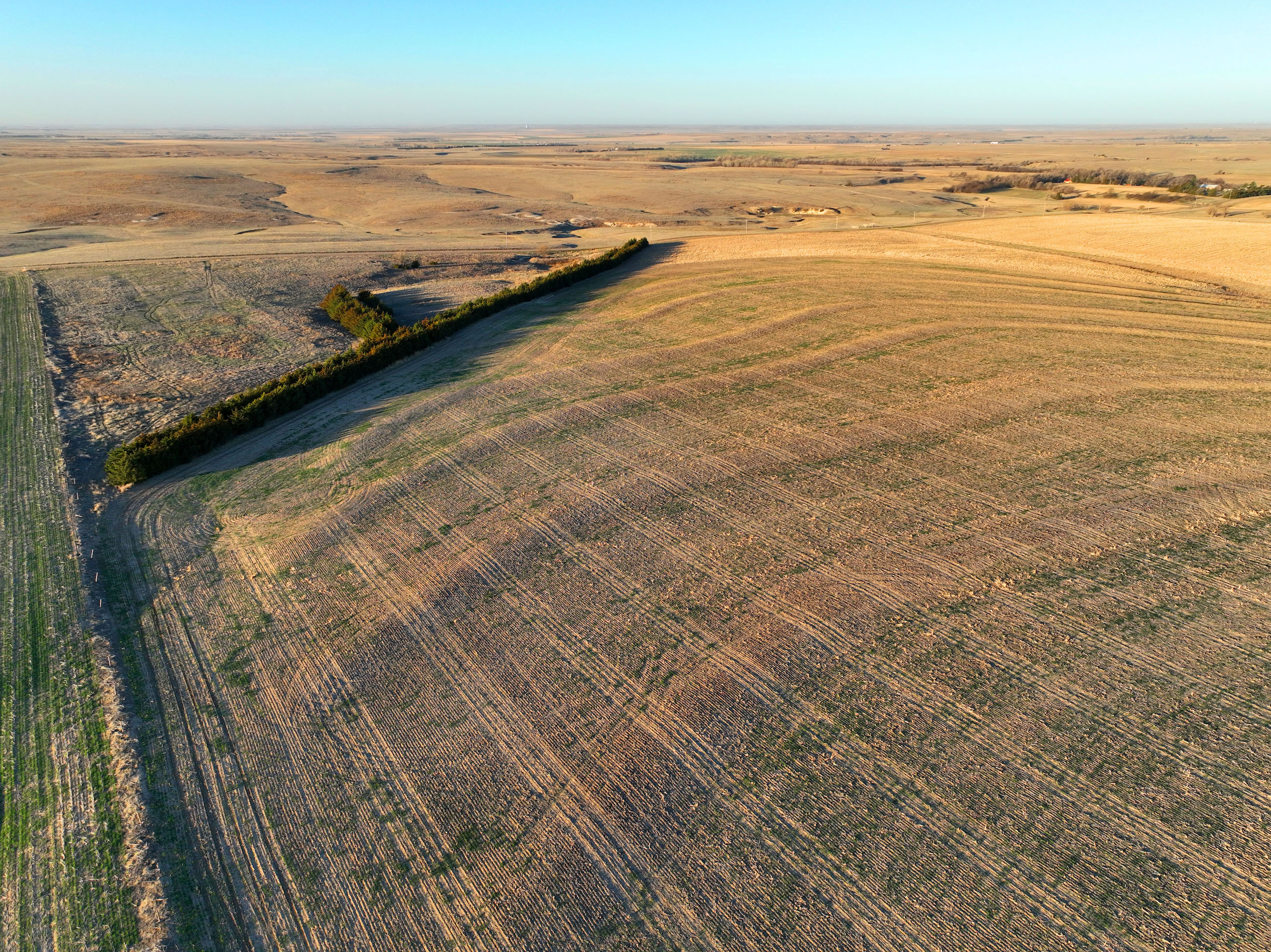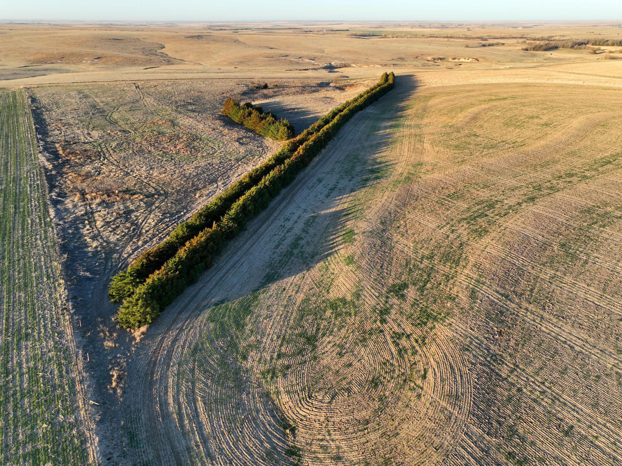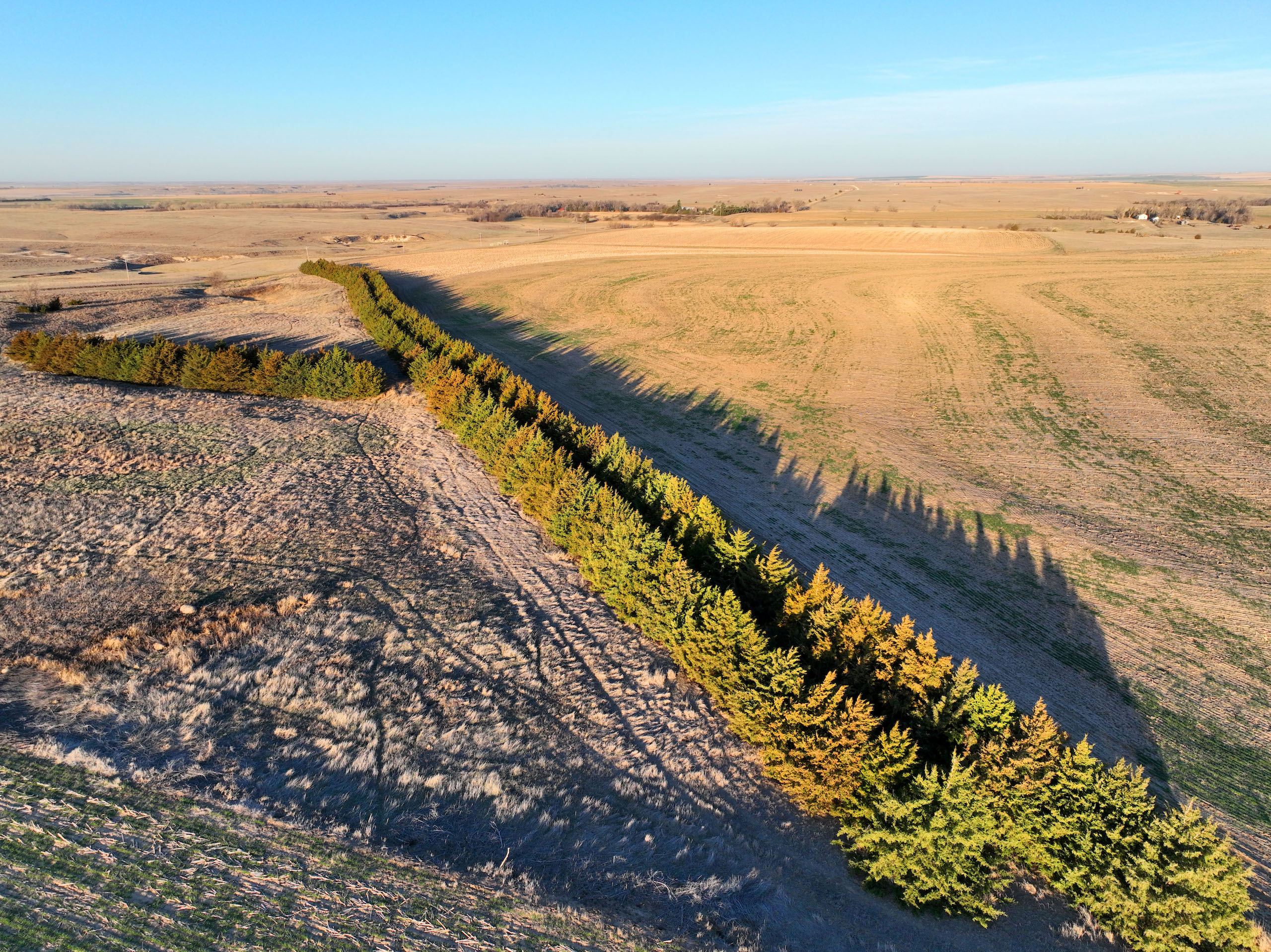 - Over 550 yards of cedar windbreaks planted in double rows at the SE corner of the property. These windbreaks provide excellent security and habitat for upland birds and deer. Several deer tracks on the property and great cover for pheasants and quail