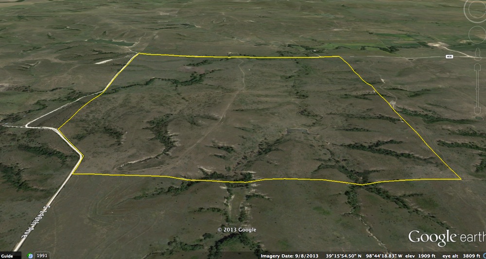 This large tract of Smoky Hill pasture and hunting ground is a premier piece of real estate for cattle ranchers and whitetail deer hunters. This property provides enough grass for a considerably large cattle herd. There is new cross fencing and well-maintained perimeter fencing and gates. In the center of the property there is a corral with a large stock tank and water pump. A spring fed pond and 2 other constructed pond dams provide additional water sources for both cattle and wildlife. A dry creek with tall mature hardwoods winds through the NW corner providing plentiful cover and a natural travel route for whitetails. Portions of the southern half of this ground consist of rugged terrain and steep cuts with small trees leading into the spring fed pond. This is the core bedding area for many whitetails in the area. With the addition of a good food source this piece of ground could be the premier rifle deer hunting spot for miles around.