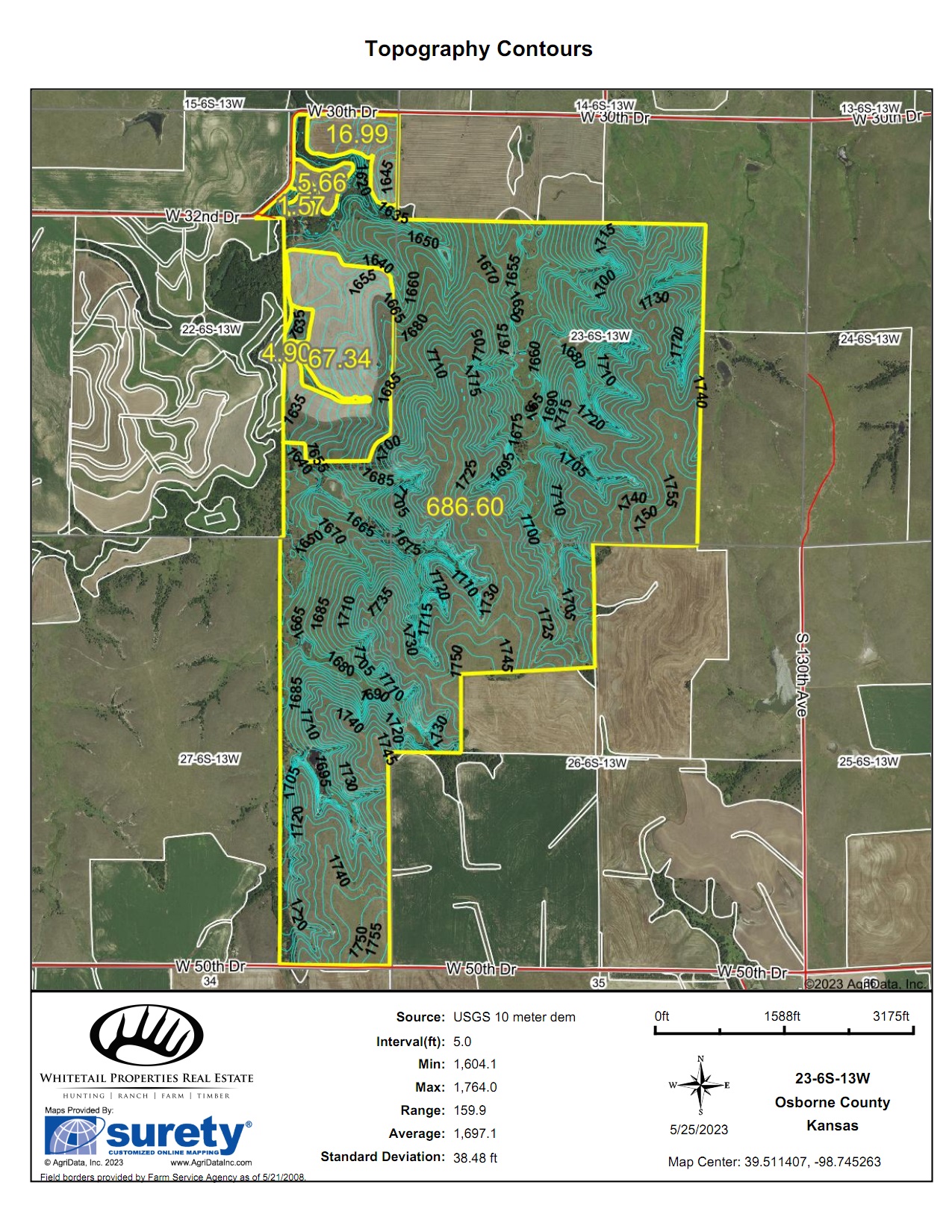 - 686.6 +/- acres of fenced pasture and creek bottom