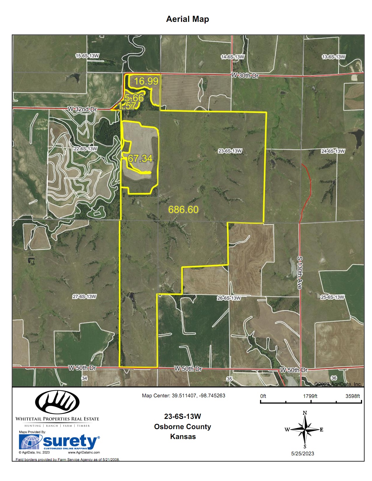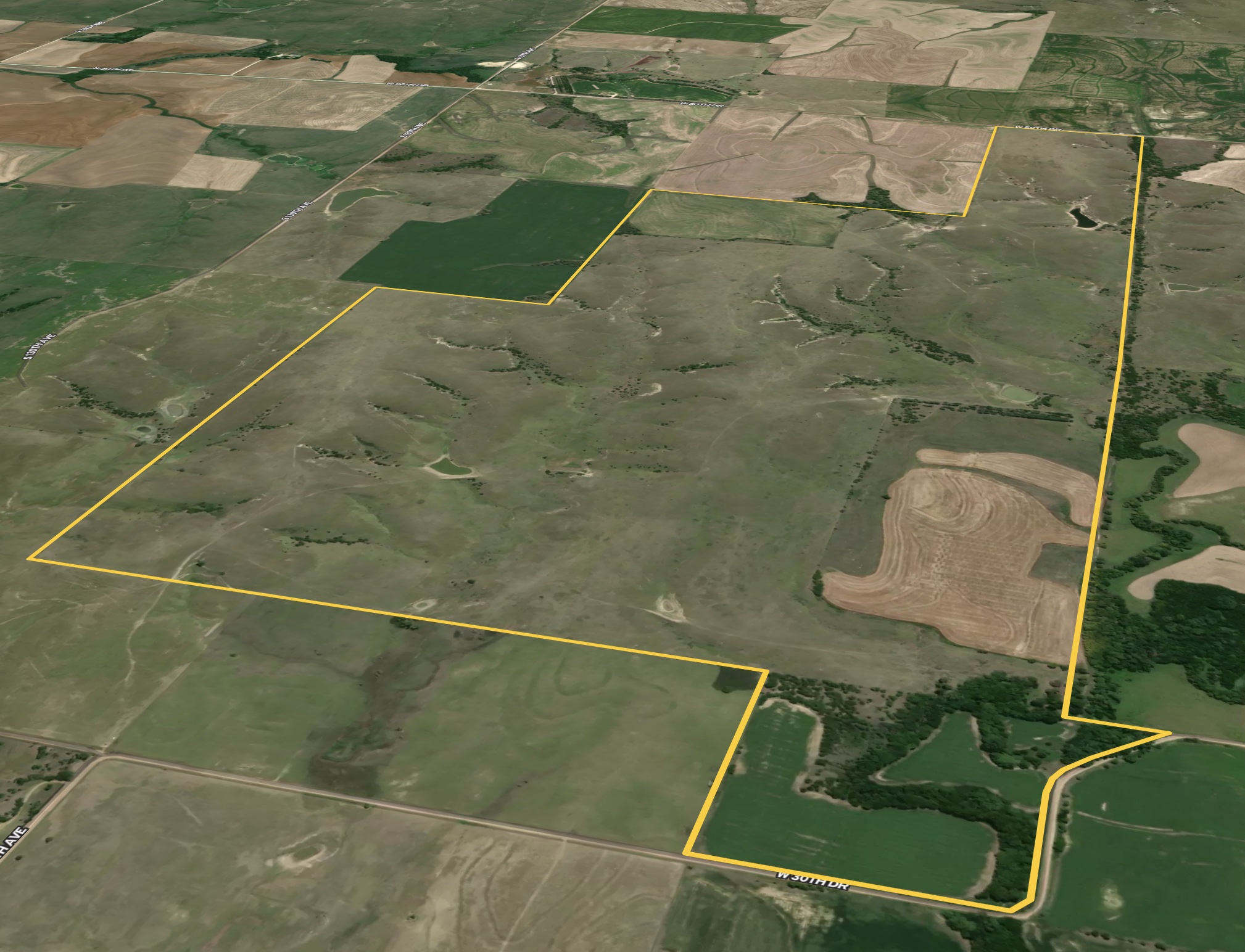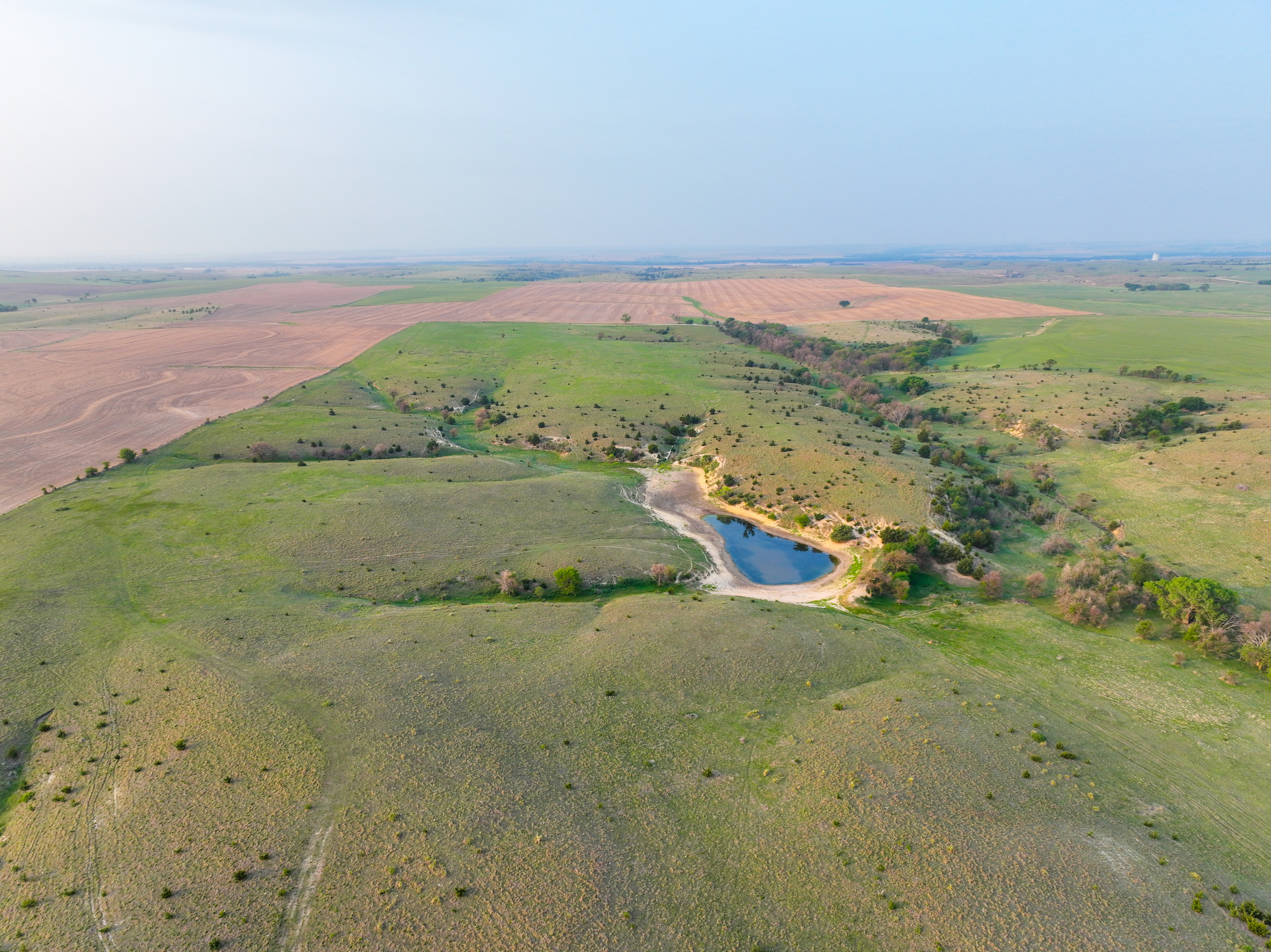 IMMEDIATE POSSESSION! This 816-acre tract in Osborne County, Kansas, is located just four miles northwest of town and boasts incredible acres of fertile cropland and excellent grassland, as well as incredible creek bottom hunting habitat along Joy Creek! There are 686.6 acres of excellent fenced pasture and creek bottom on this property that is not bound to any grazing lease for 2023. The buyer will receive immediate possession! There is a total of 92 acres of tillable land in addition to the grassland and creek; 65 acres of these tillable acres are currently in grain production, with the balance being hayed by the current owners. An incredible tree shelter belt runs through the pasture along the south end of the largest crop field, providing adequate security for both livestock and wildlife. Several pond sites are scattered throughout the pasture, with the largest pond currently holding water. This pond has also been the site for many great fishing outings by the current owners.