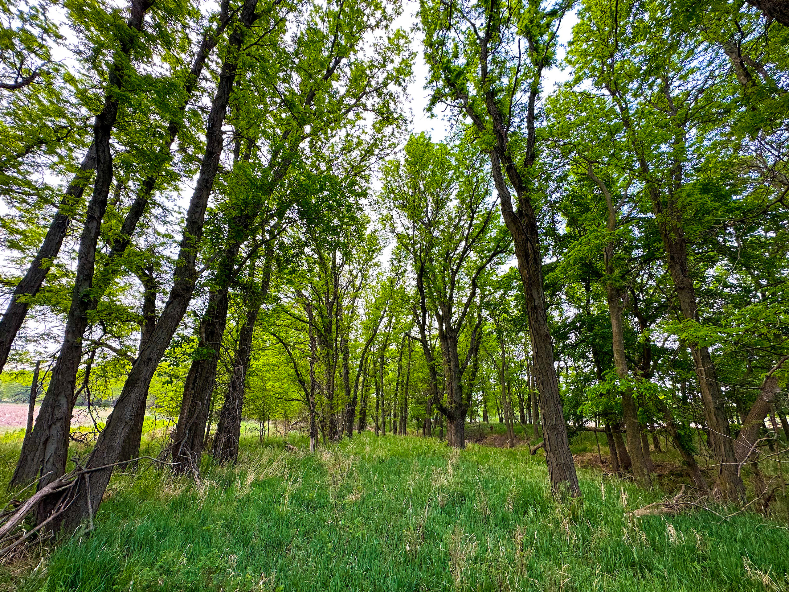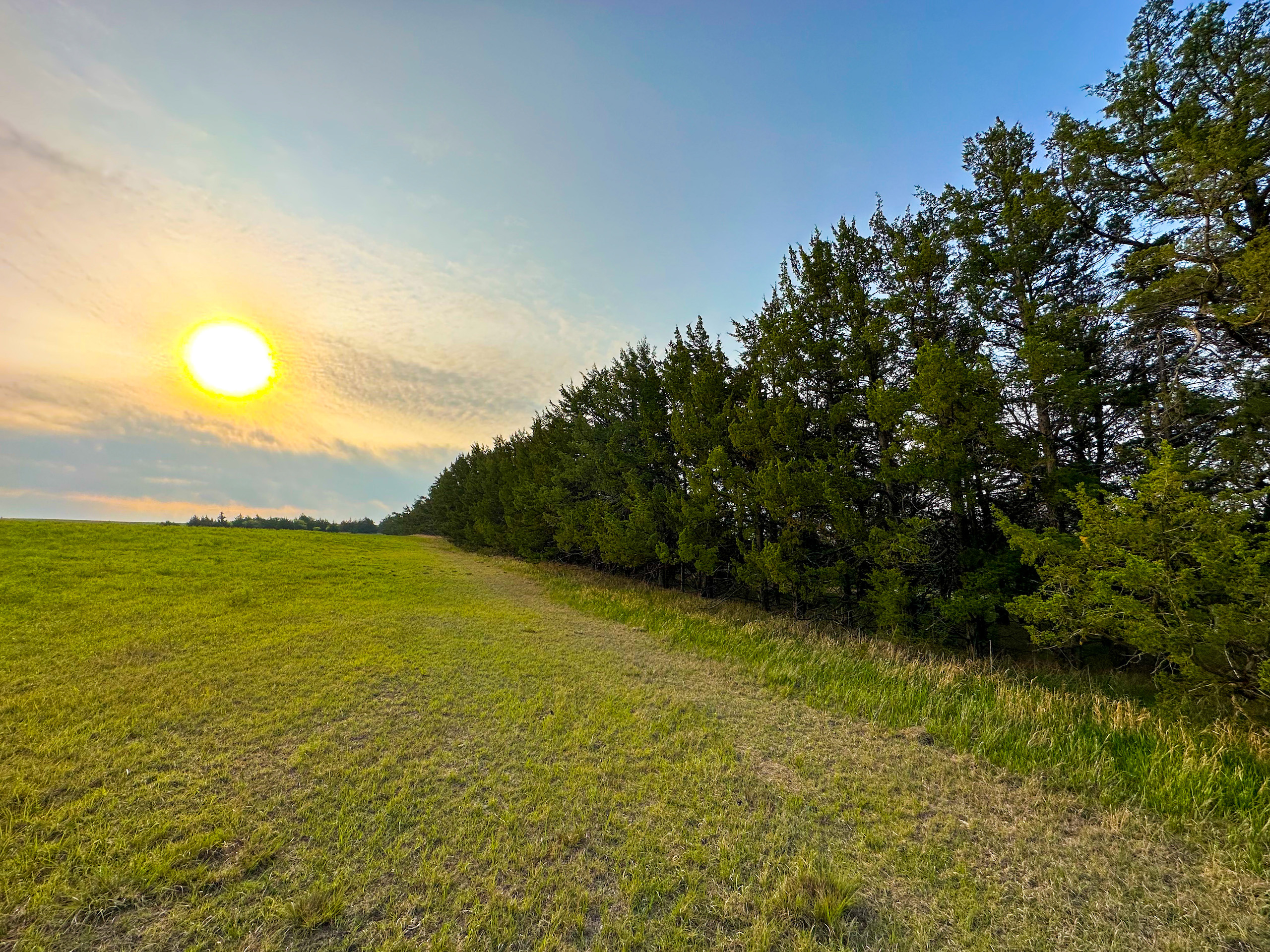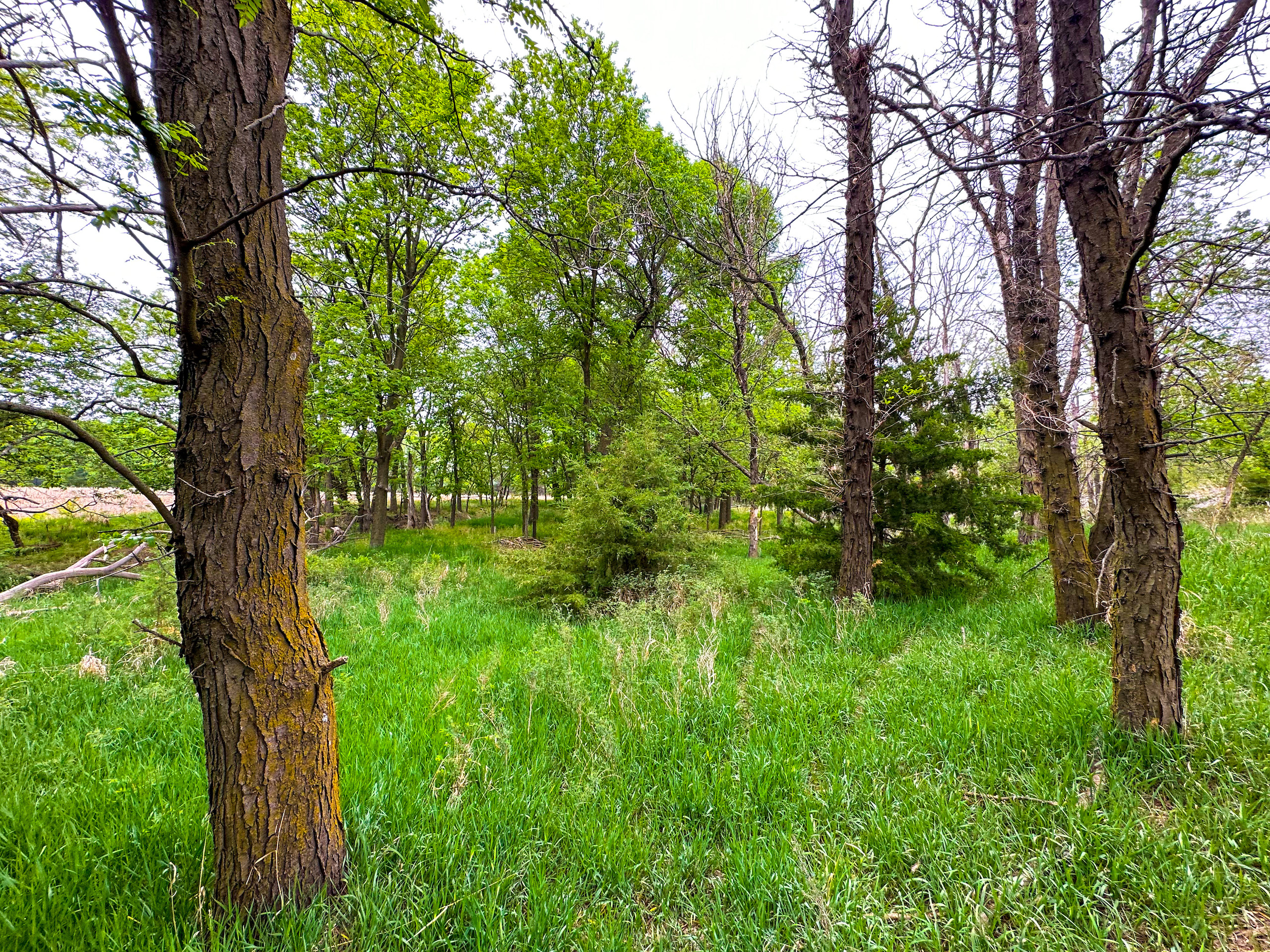 - Large tree shelter belt on the South end of the hayfield and entrance to the pasture. Mature trees providing shelter for livestock as well as wildlife