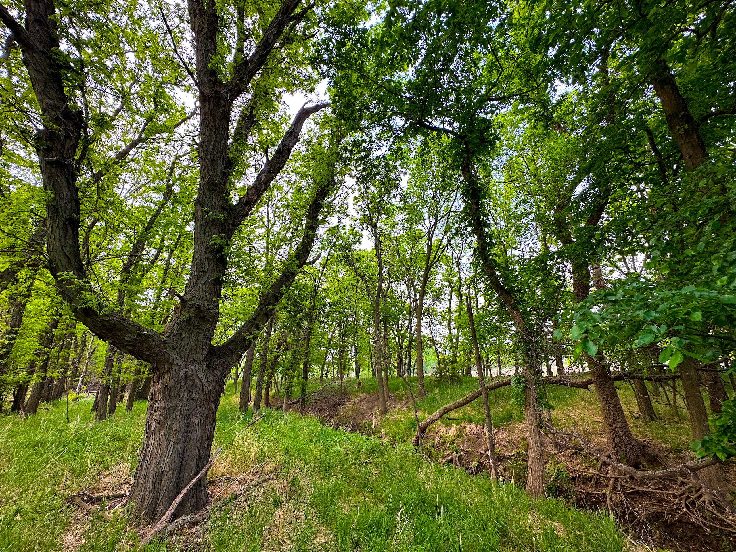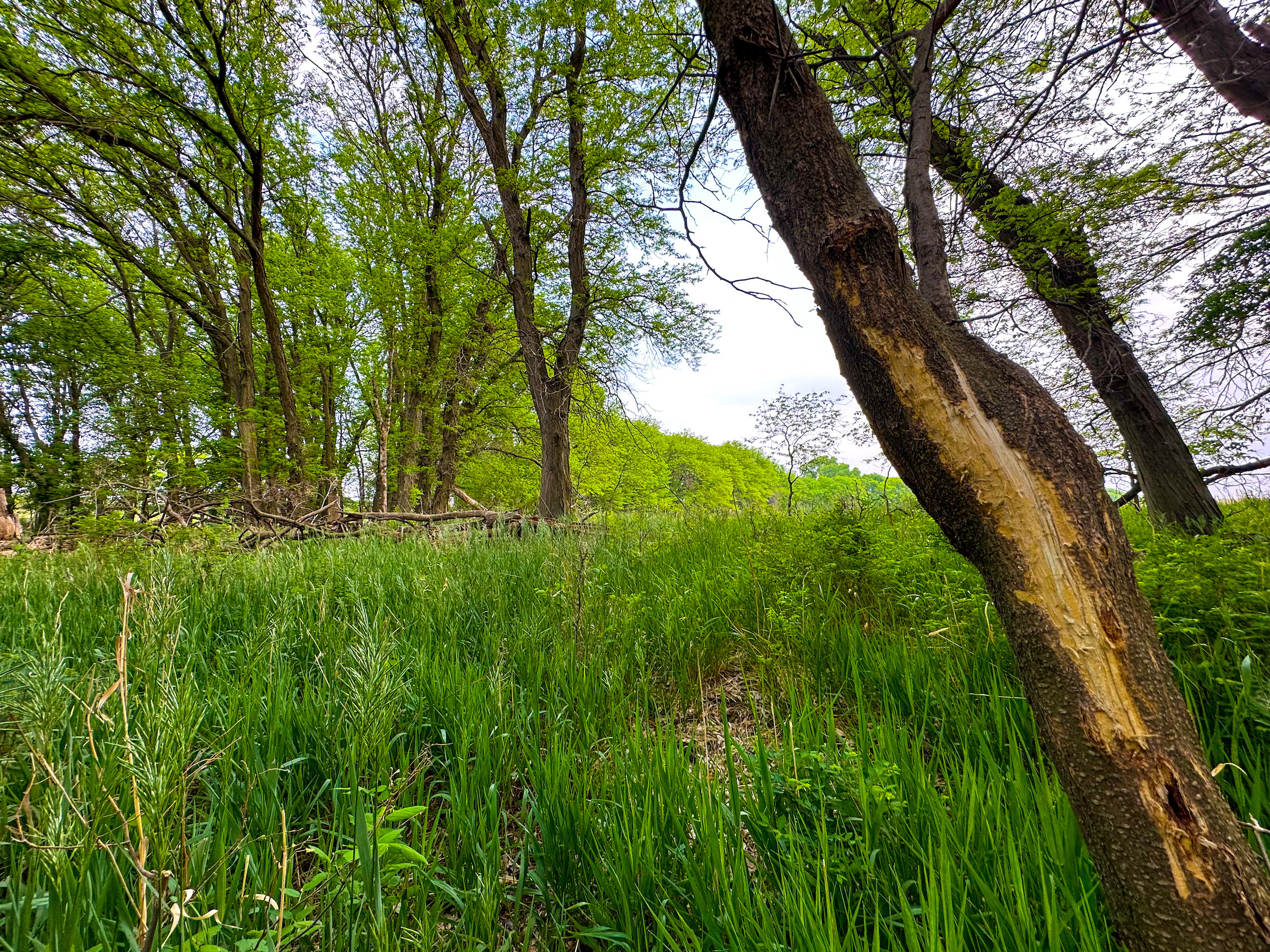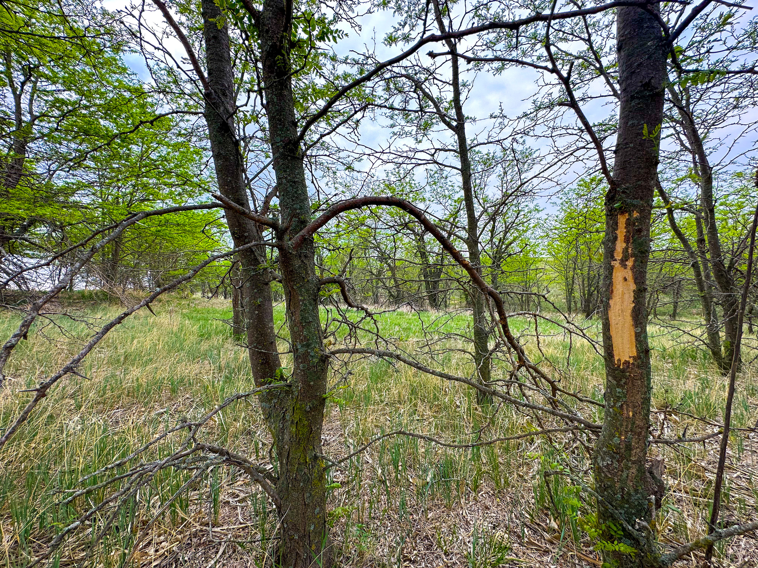 - Large tree shelter belt on the South end of the hayfield and entrance to the pasture. Mature trees providing shelter for livestock as well as wildlife