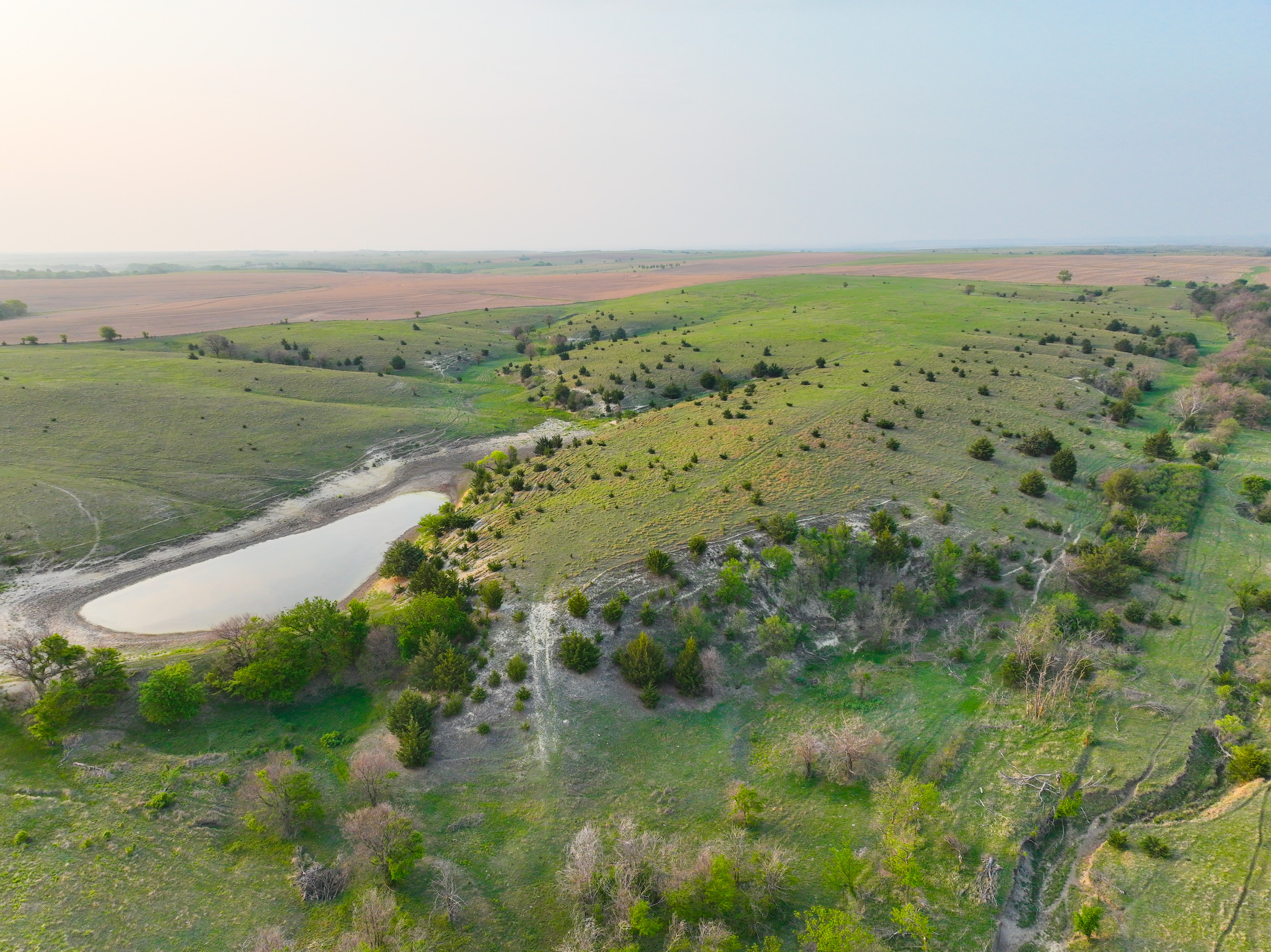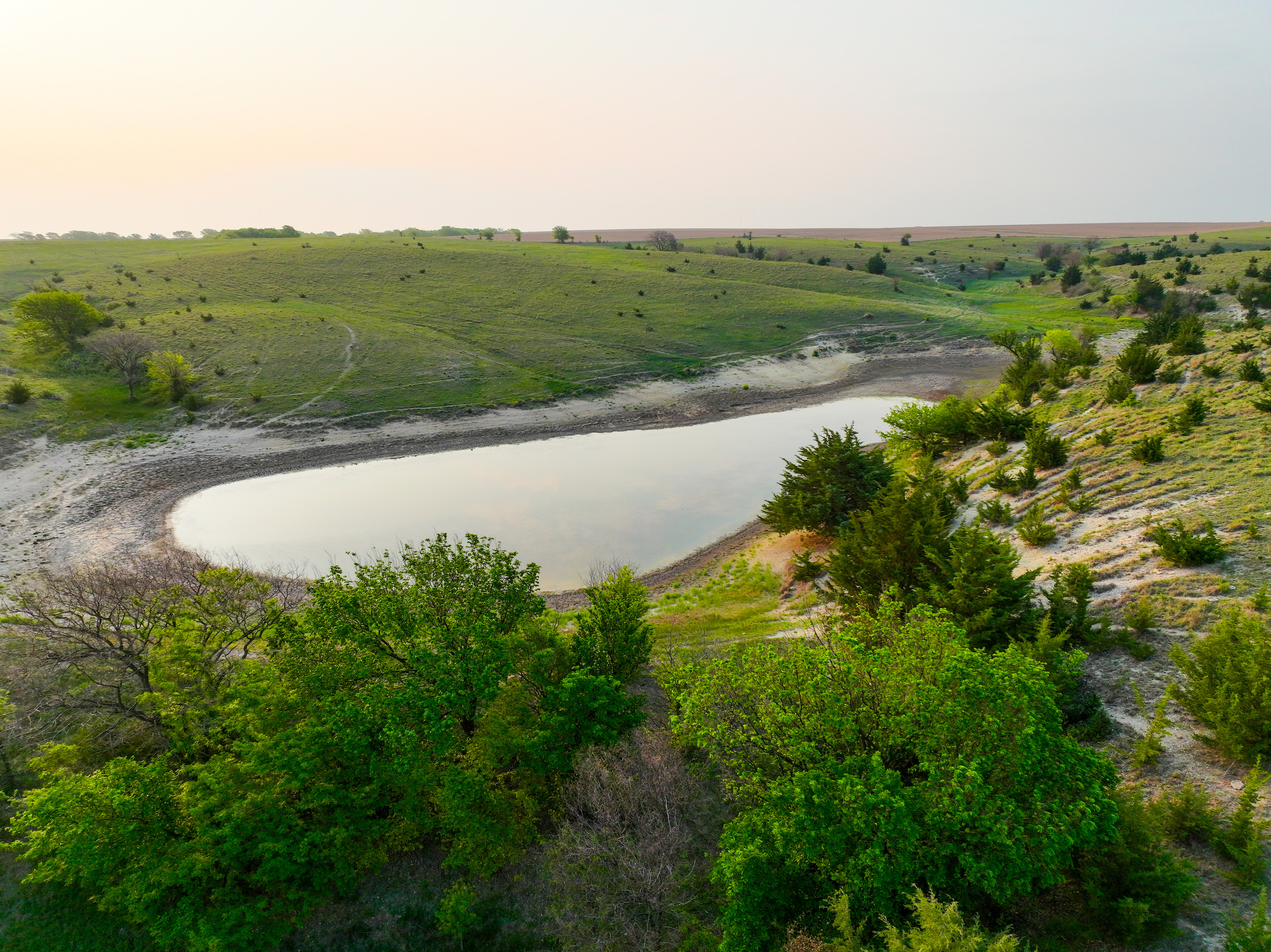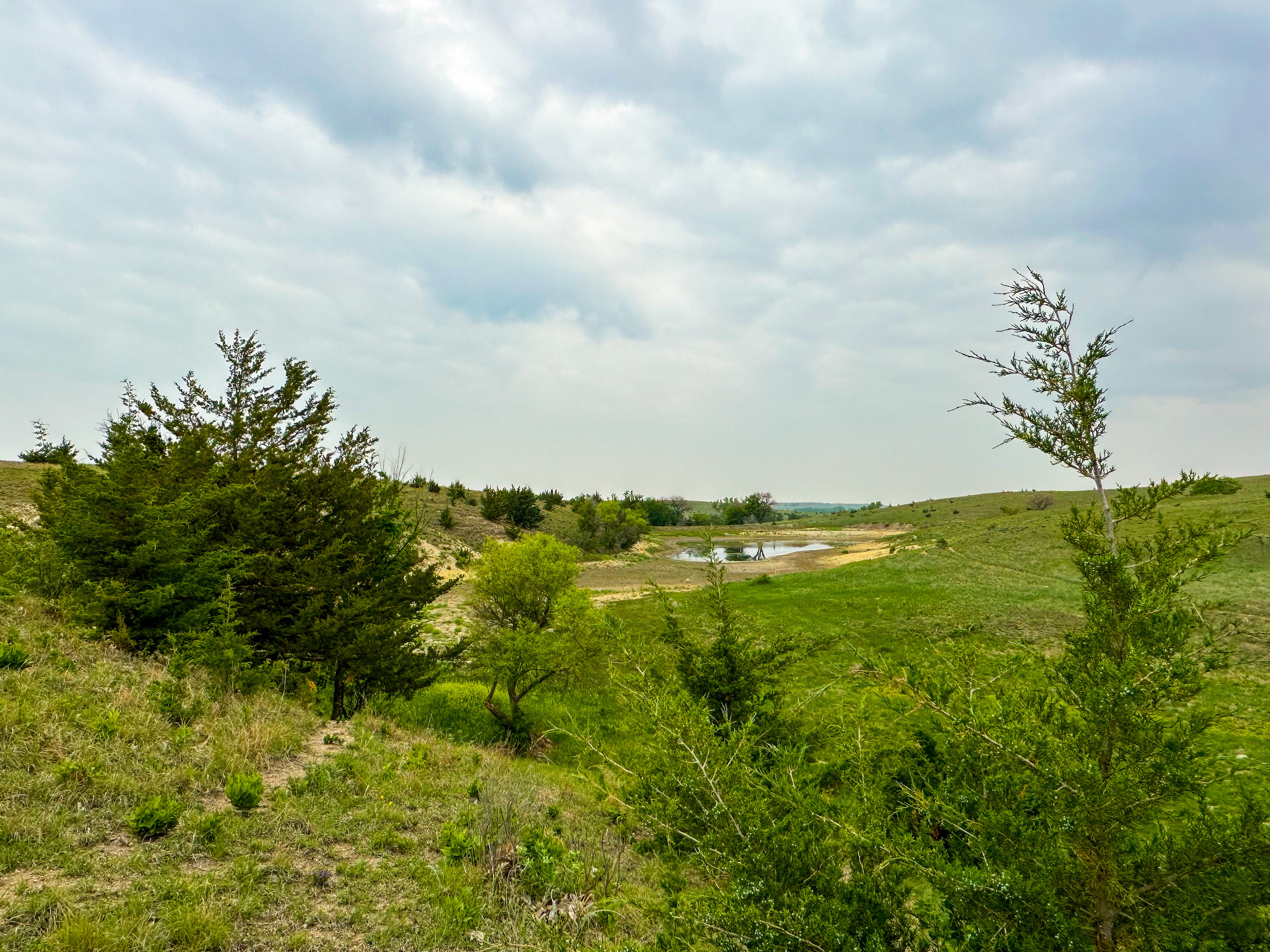 - Large pond on the property currently holding water. Several ponds on the property provide water during normal years of precipitation