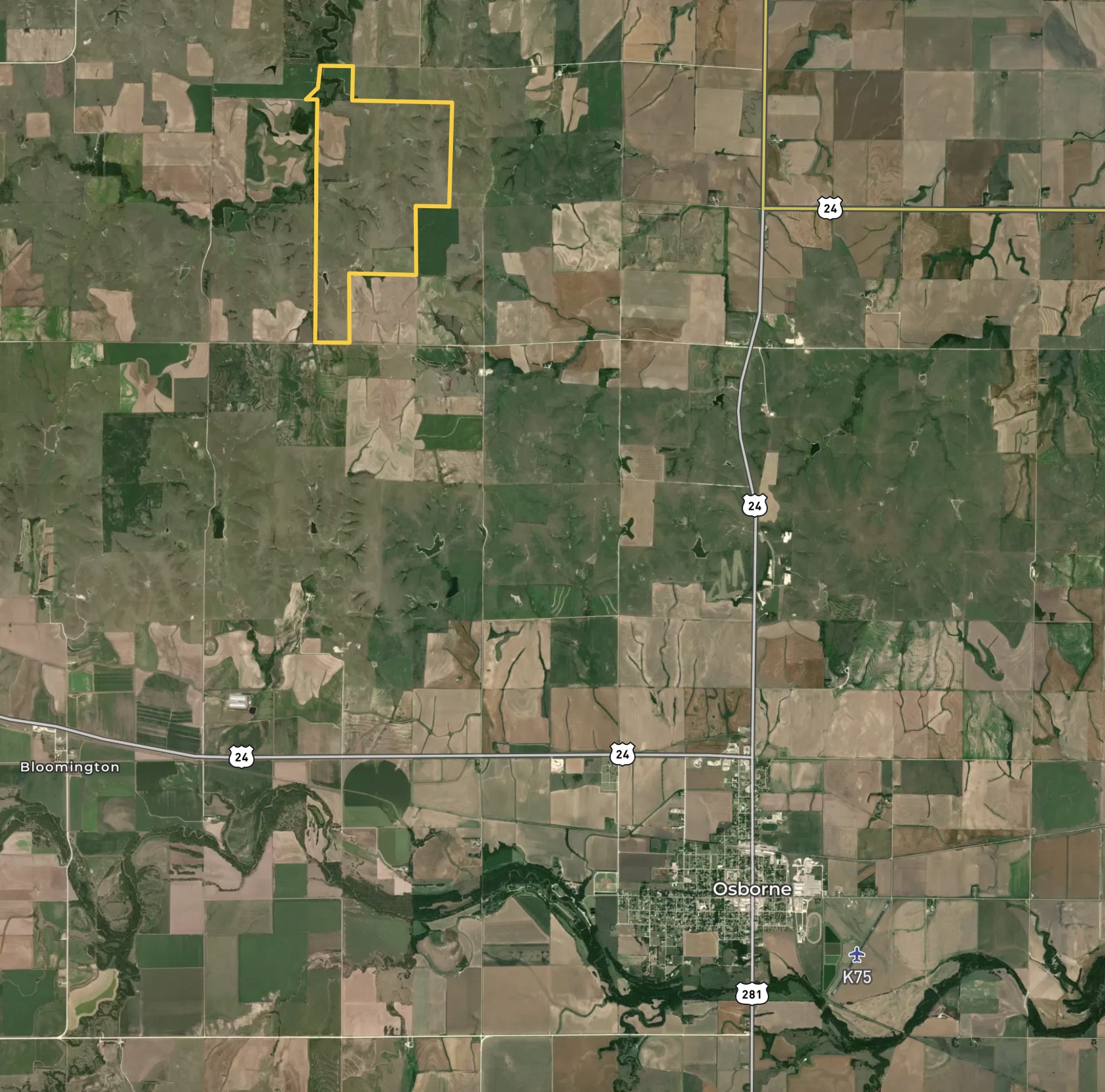 - 4 +/- miles NW of Osborne, KS