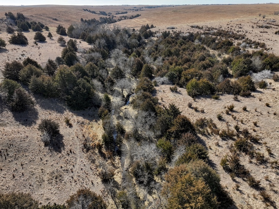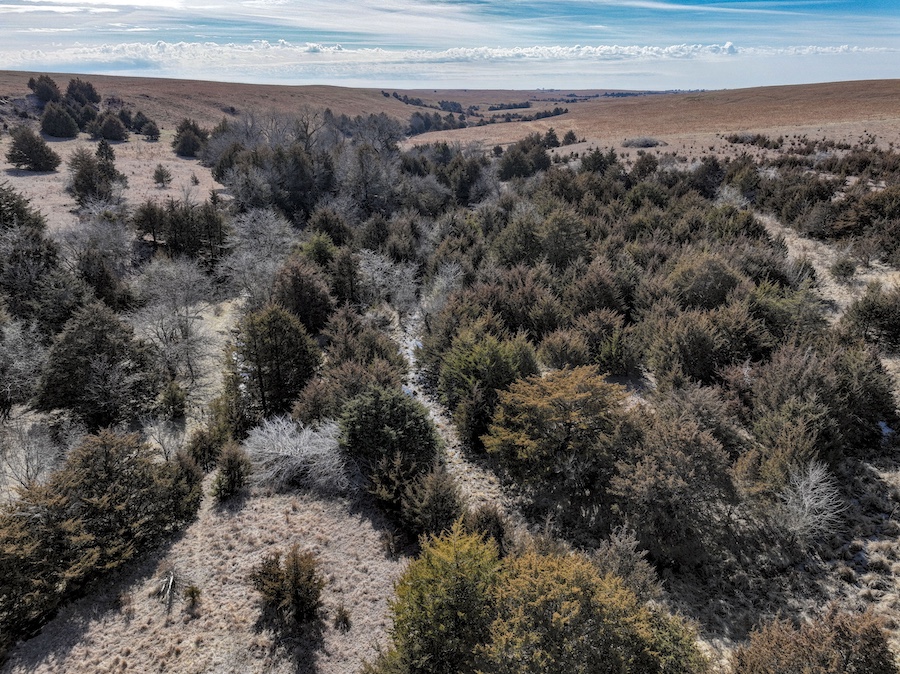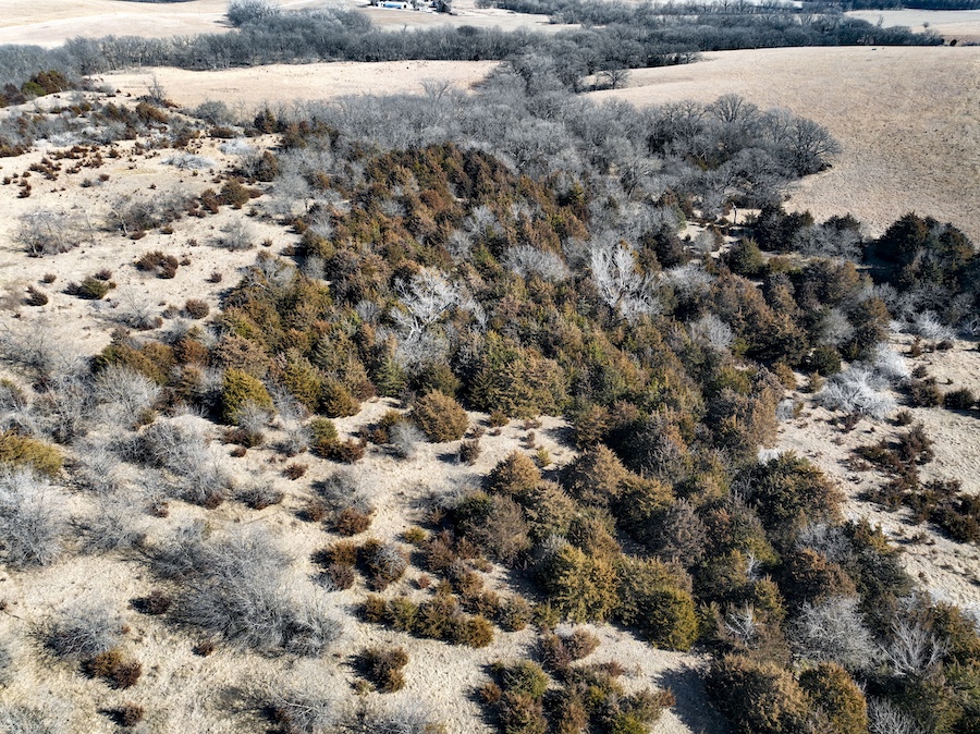- Nice combination of hardwood creek draws and dense cedar cover