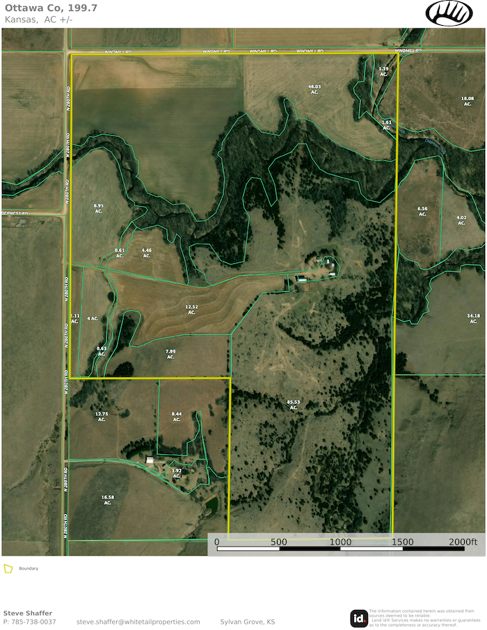 Located in the northeast corner of Ottawa County, Kansas, this 200 +/- acre property offers everything an outdoor enthusiast could ask for. From a very diverse whitetail habitat that consists of hardwood creek bottoms surrounded by thick, dense cedar cover, mature hardwood pockets, and a big creek bed great for roosting turkeys, to a perfect mix of fertile farmland and brushy pastures providing year-round food and cover, this place has it all. On top of the hard-to-match hunting opportunities, this tract also has a ready-to-live-in farmhouse, solving the problem of where to stay while enjoying all this farm has to offer. This is truly a unique find and a must-see in person, so get in touch with the listing agent ASAP to take a closer look at this offering.