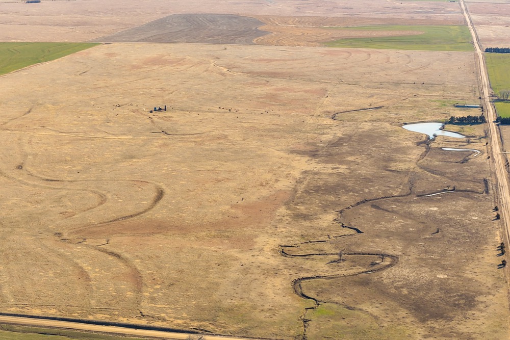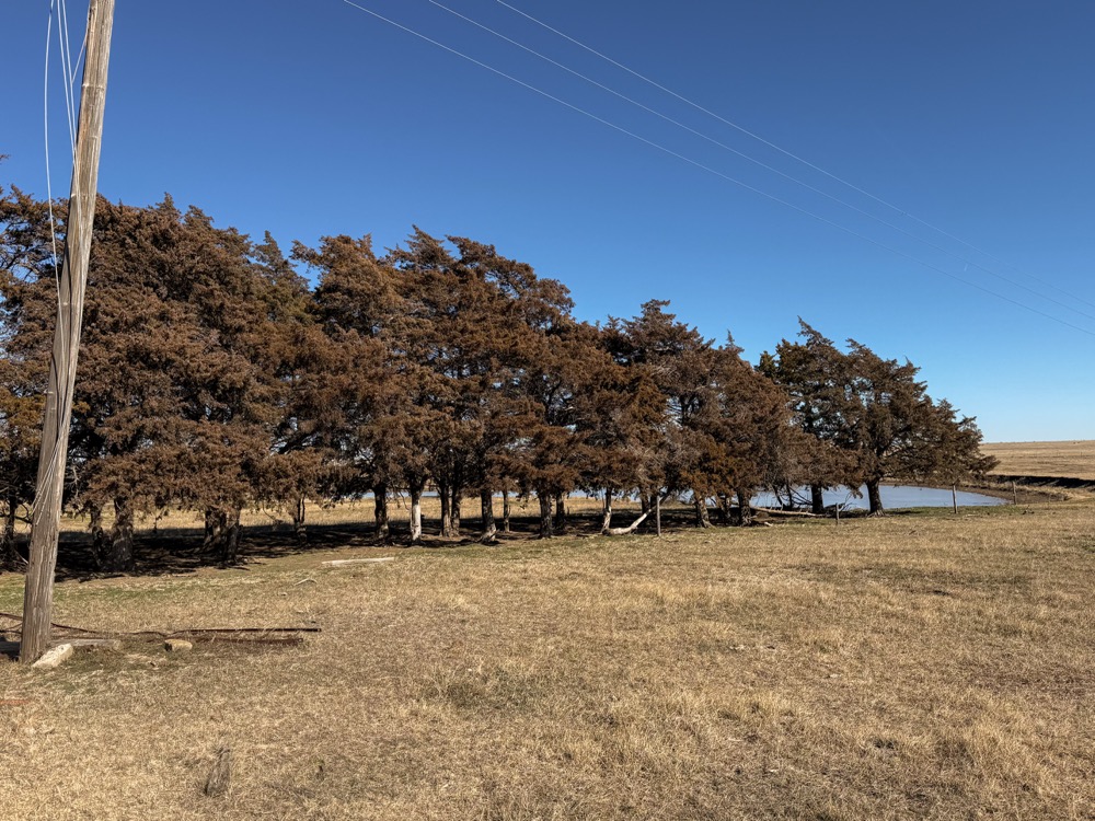 - Corrals, seasonal pond and tree row