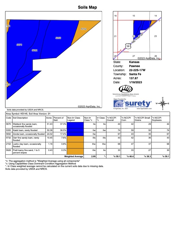 How many times have you come across a property with over a 5% return on investment annually? It's very hard to find a property with a great return after taxes are paid, and input costs are applied. The program this property is enrolled in is called the Conservation Reserve Enhancement Program or "CREP" program. While this particular property's term lasts until 2035 and pays $24,393 annually, property taxes are approximately $1,064 annually. This property previously had water rights and pivot irrigation, the water rights have been retired, and the sprinklers removed. Once the term of this CREP program expires in 2035, the landowner can then convert this back to dry land farming or sign up for re-enrollment. The perimeter is fully fenced with highway frontage and also county road frontage. The planted habitat from the program creates some of the best upland bird cover in the area. Pheasants and quail are very plentiful, along with the occasional deer. Very seldom will you come across a property with this type o return. I suggest calling one of the listing agents today; this property will not last long!