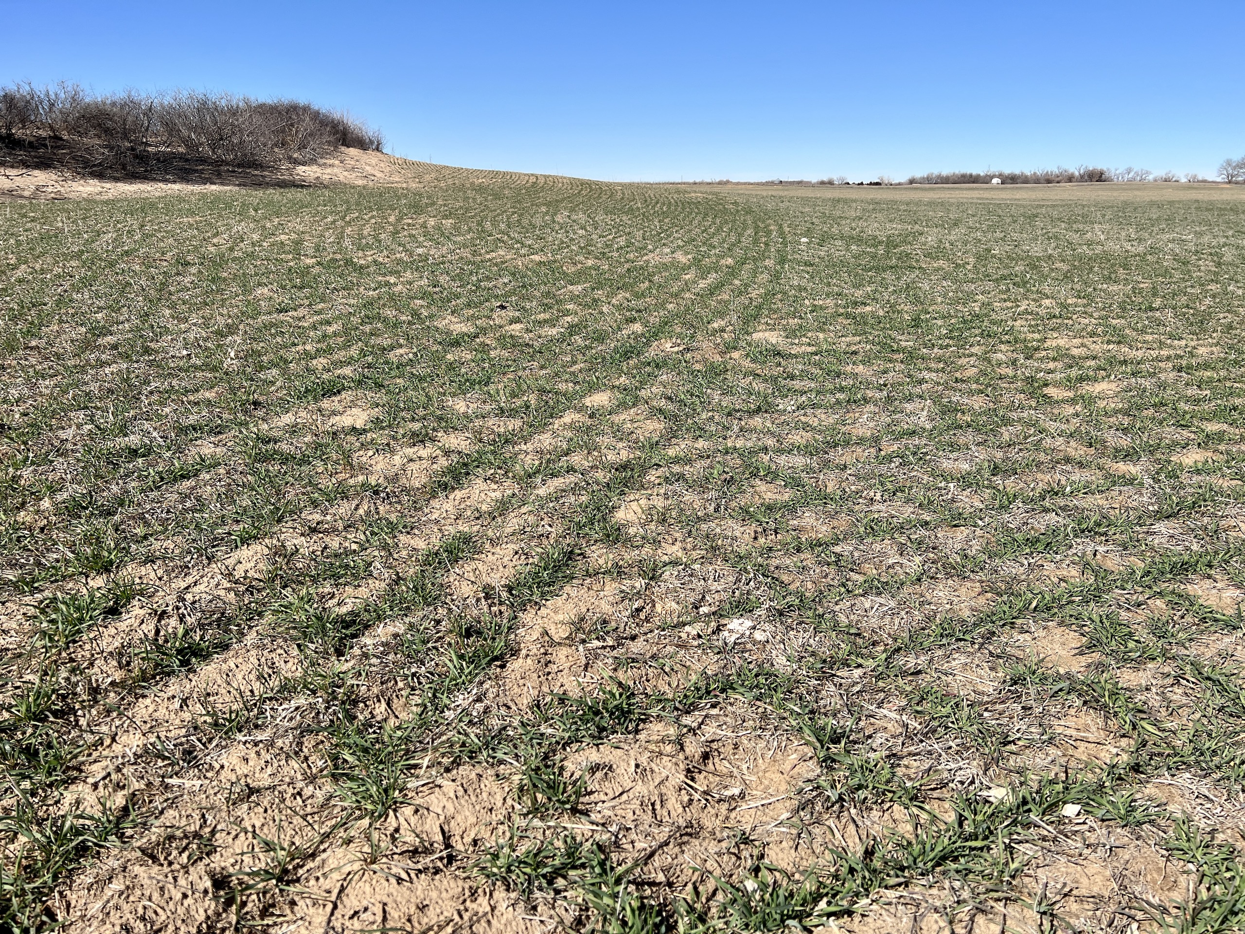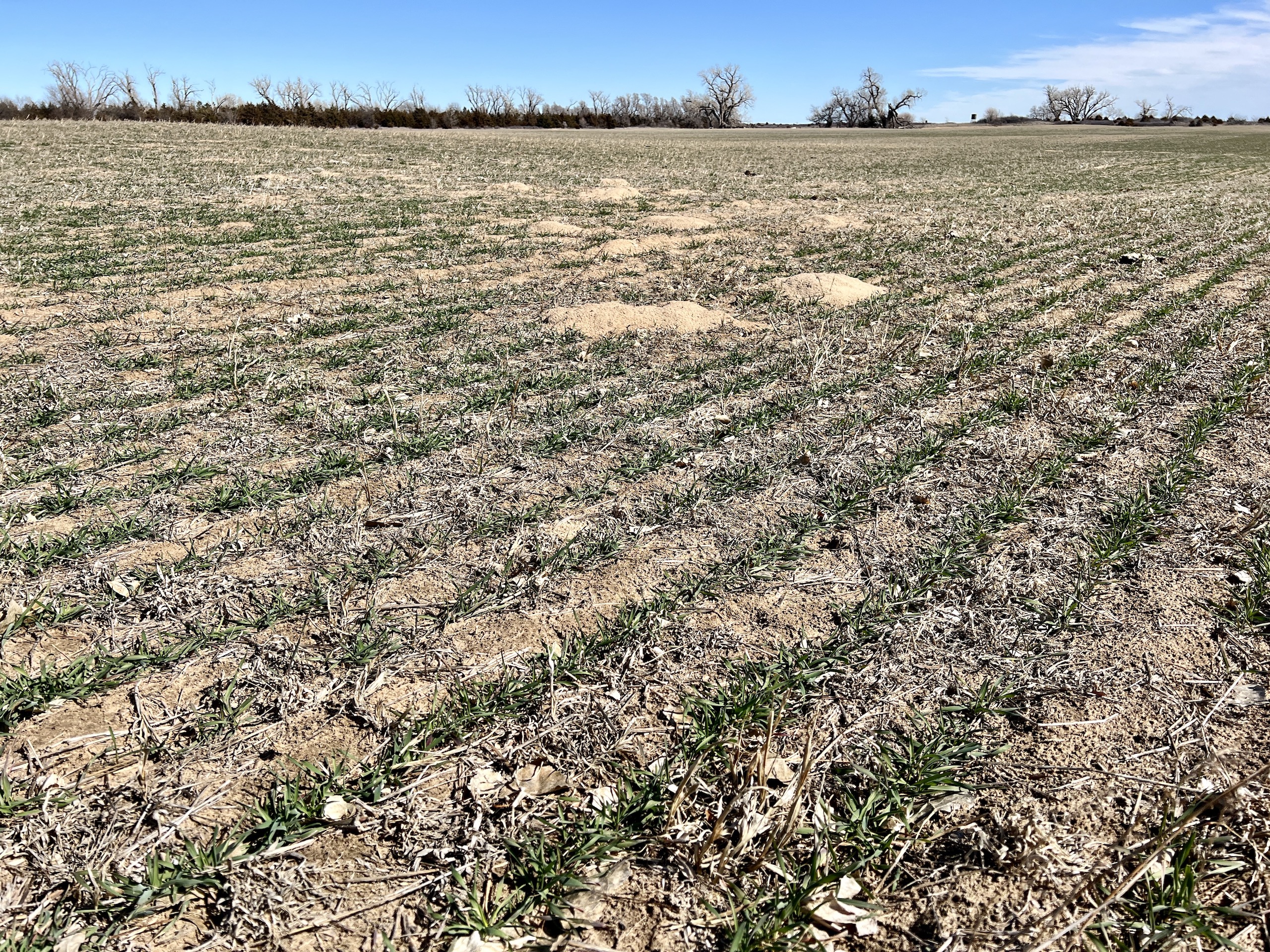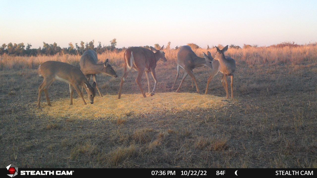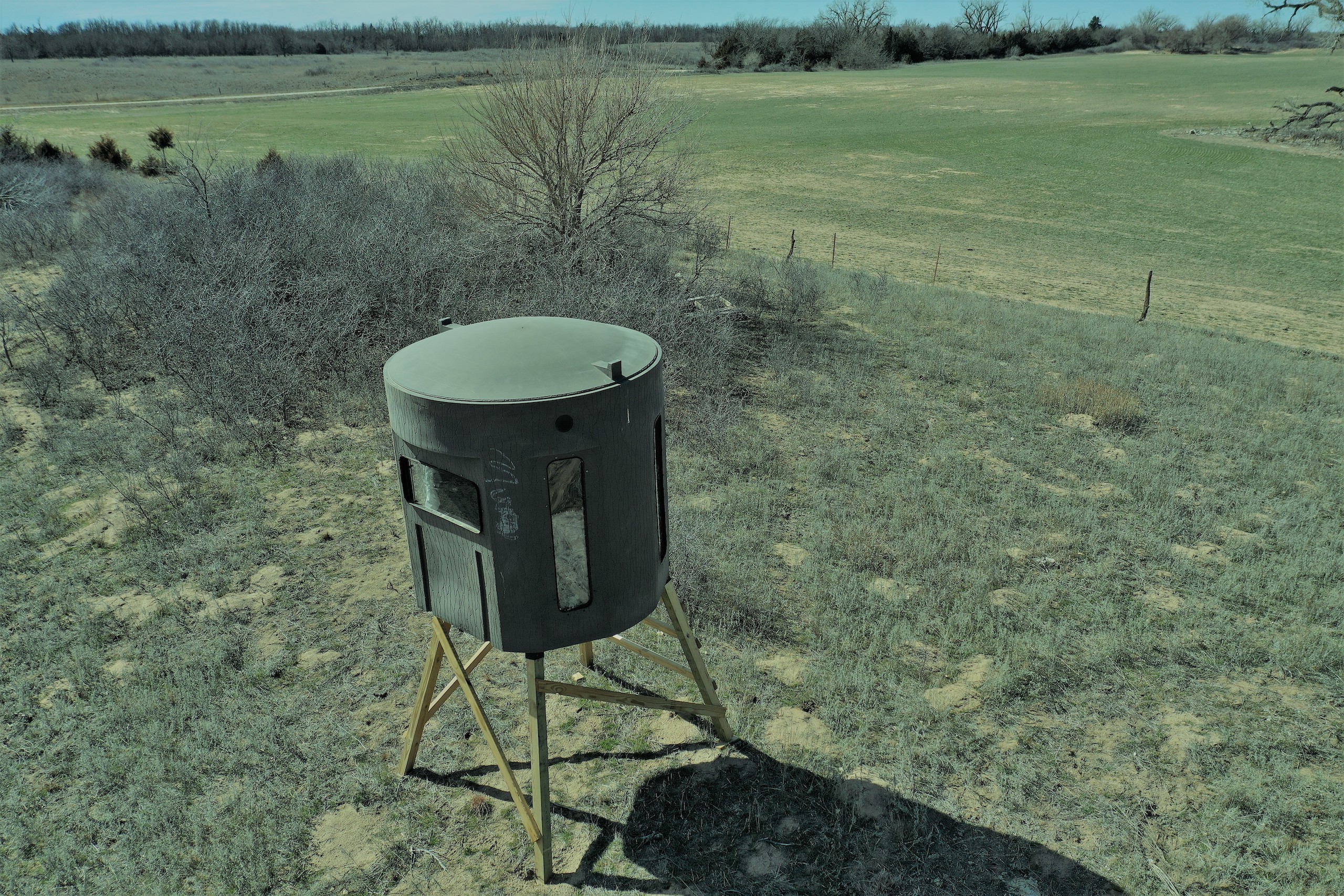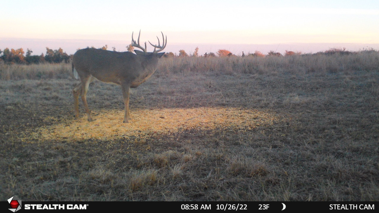 The property has 2 Banks Blinds, one overlooking the bedding area and one overlooking the farm ground. The 62 Acres of farm ground are currently planted to wheat. The seller currently has a great lease arrangement with a farmer to plant wheat for the deer, in-turn he’ll graze calves once deer season is over. This agreement can likely continue with the new owner. The wheatfield is covered up in deer tracks! The pasture is predominately rolling hills with heavy native grass and plum thickets providing great bedding. It has some scattered trees and tree rows that are full of rubs and scrapes.