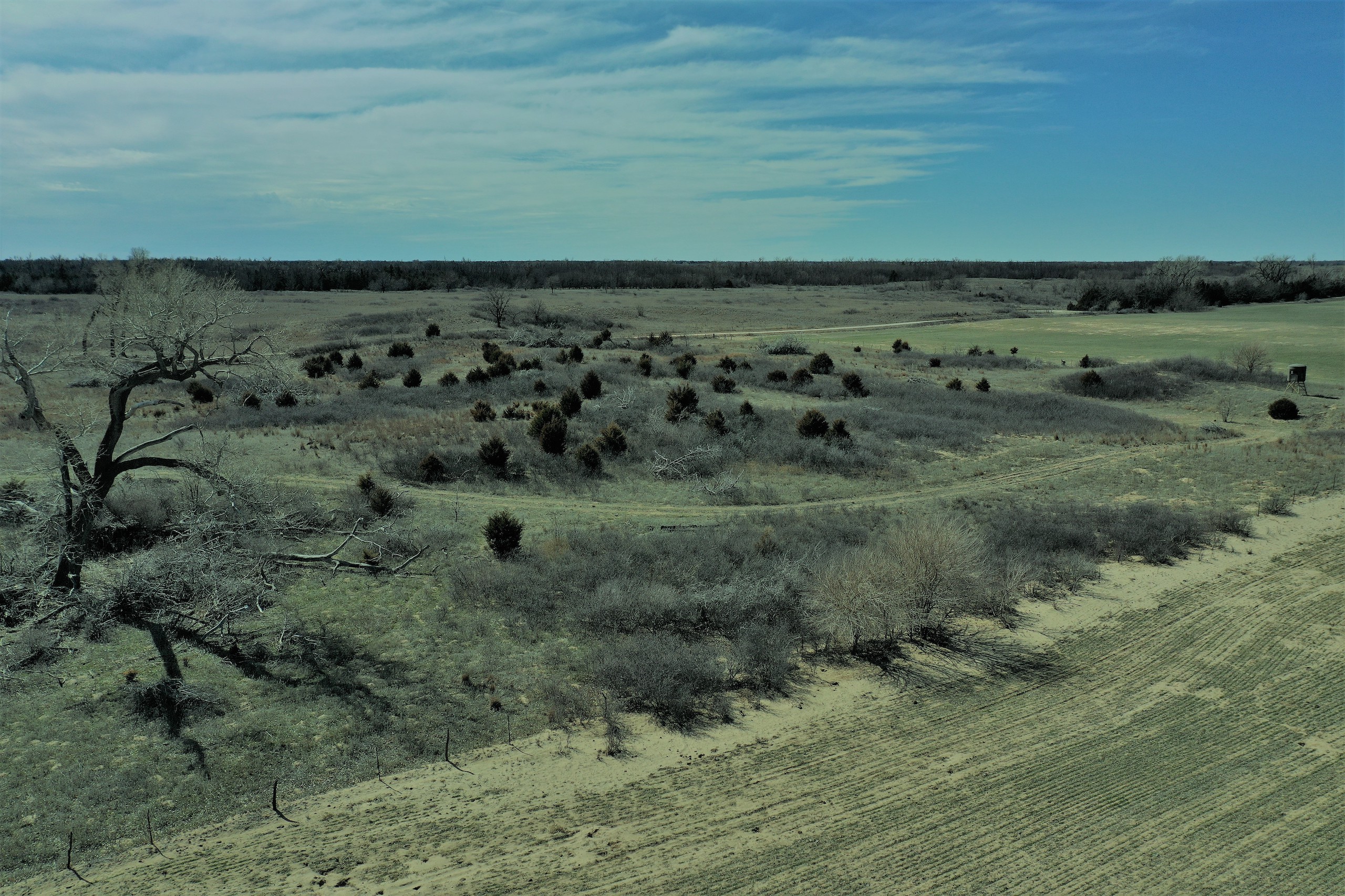 Here’s an opportunity to own a great hunting tract bordering the Pratt Sandhills Wildlife Area, giving you an additional 5,700 acres to hunt just over the fence!