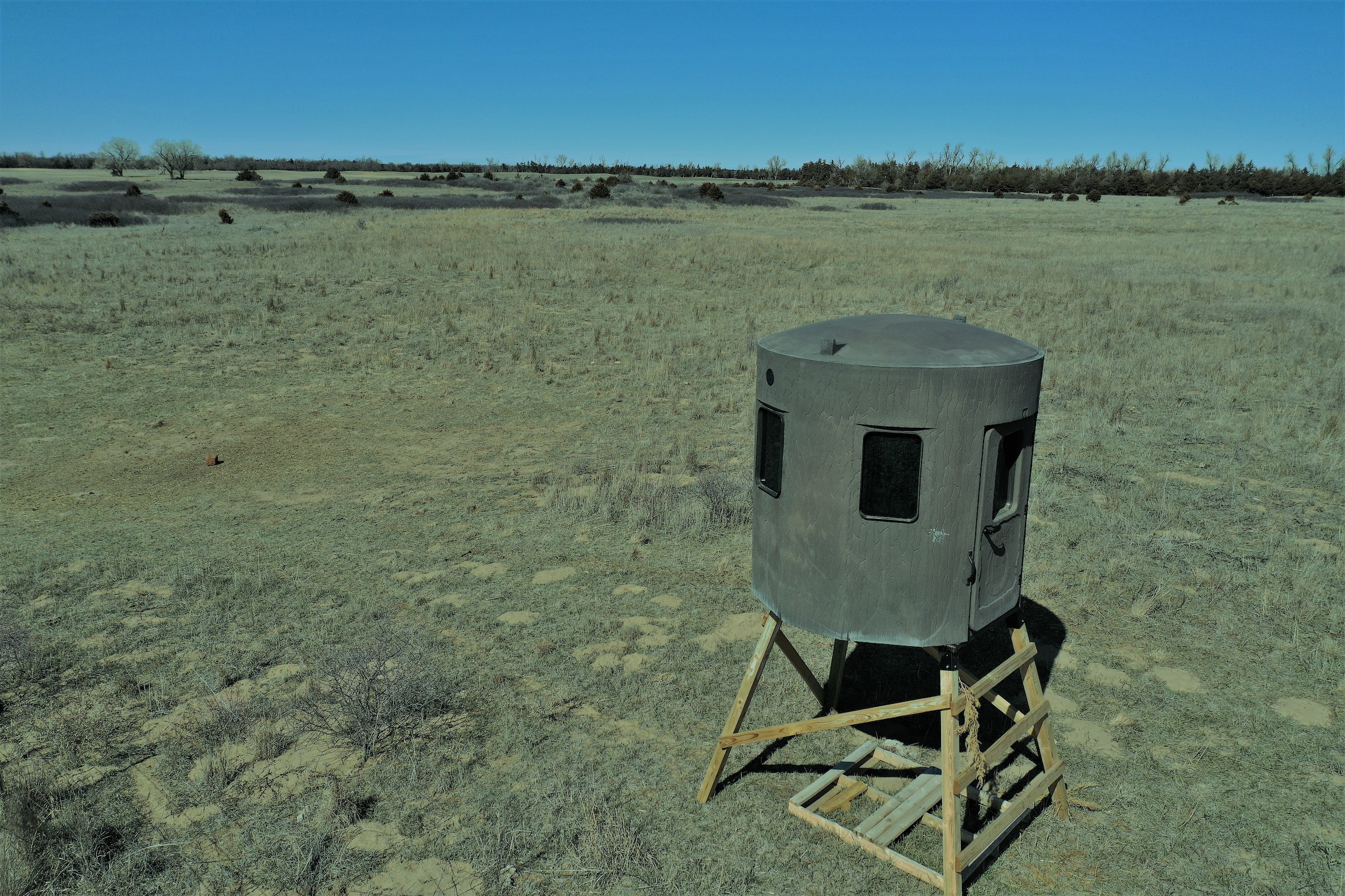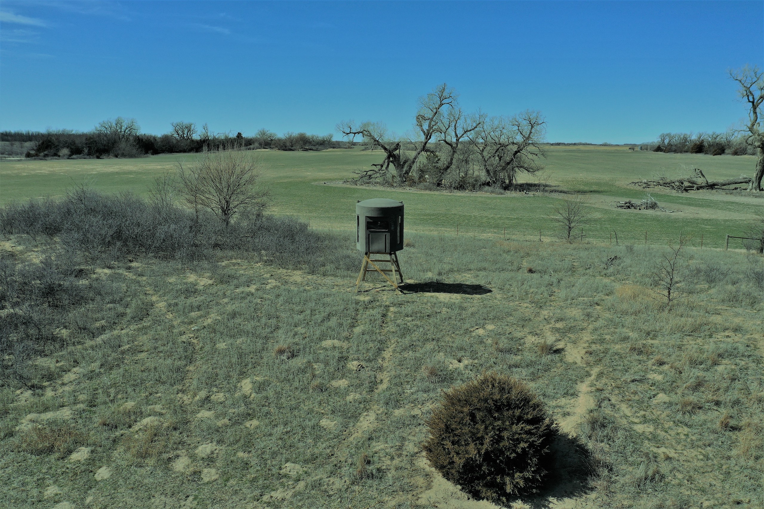 The property will produce some big Kansas Bucks and also provide good quail and pheasant hunting. The influx of Bird hunter activity on the adjacent public land moves a large amount of deer onto this tract by rut-time. This results in an even “higher than normal” deer density by the time deer season roll around.