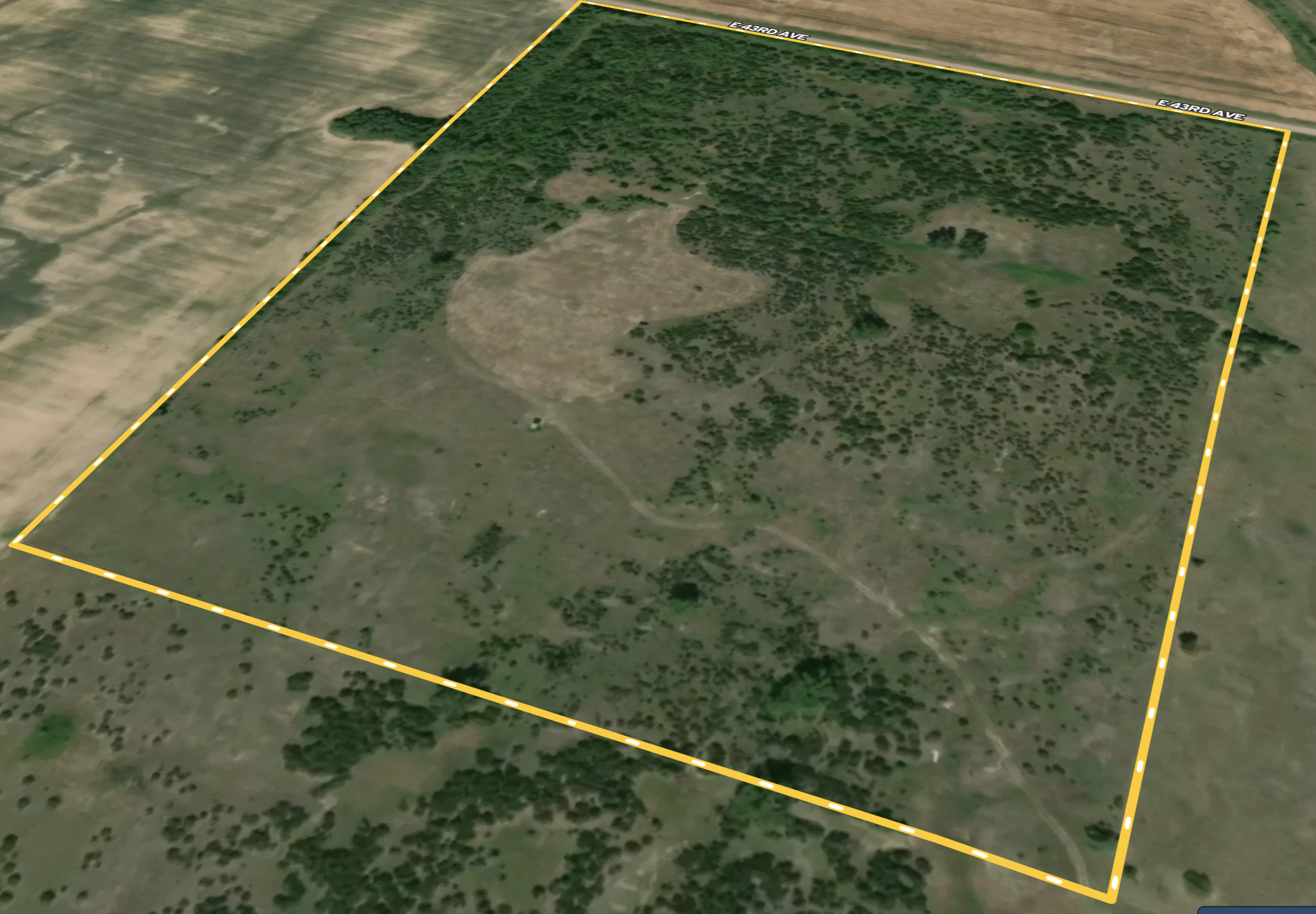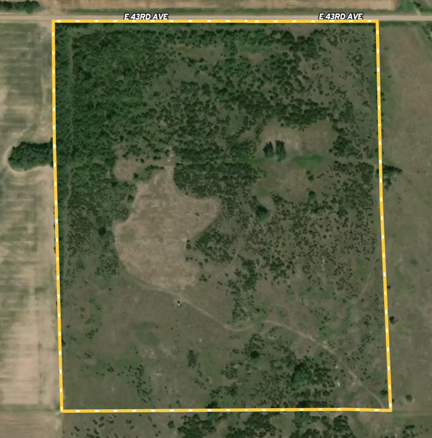 This farm offers great security with plenty of mature hardwoods obstructing the view from any roadways, a full perimeter fence, and a gated entrance on the North end from E 43rd Ave. The city of Hutchinson, KS is less than 6 miles west of the farm and has everything you could ever need for lodging, dining, retail, fuel, and everything in between.