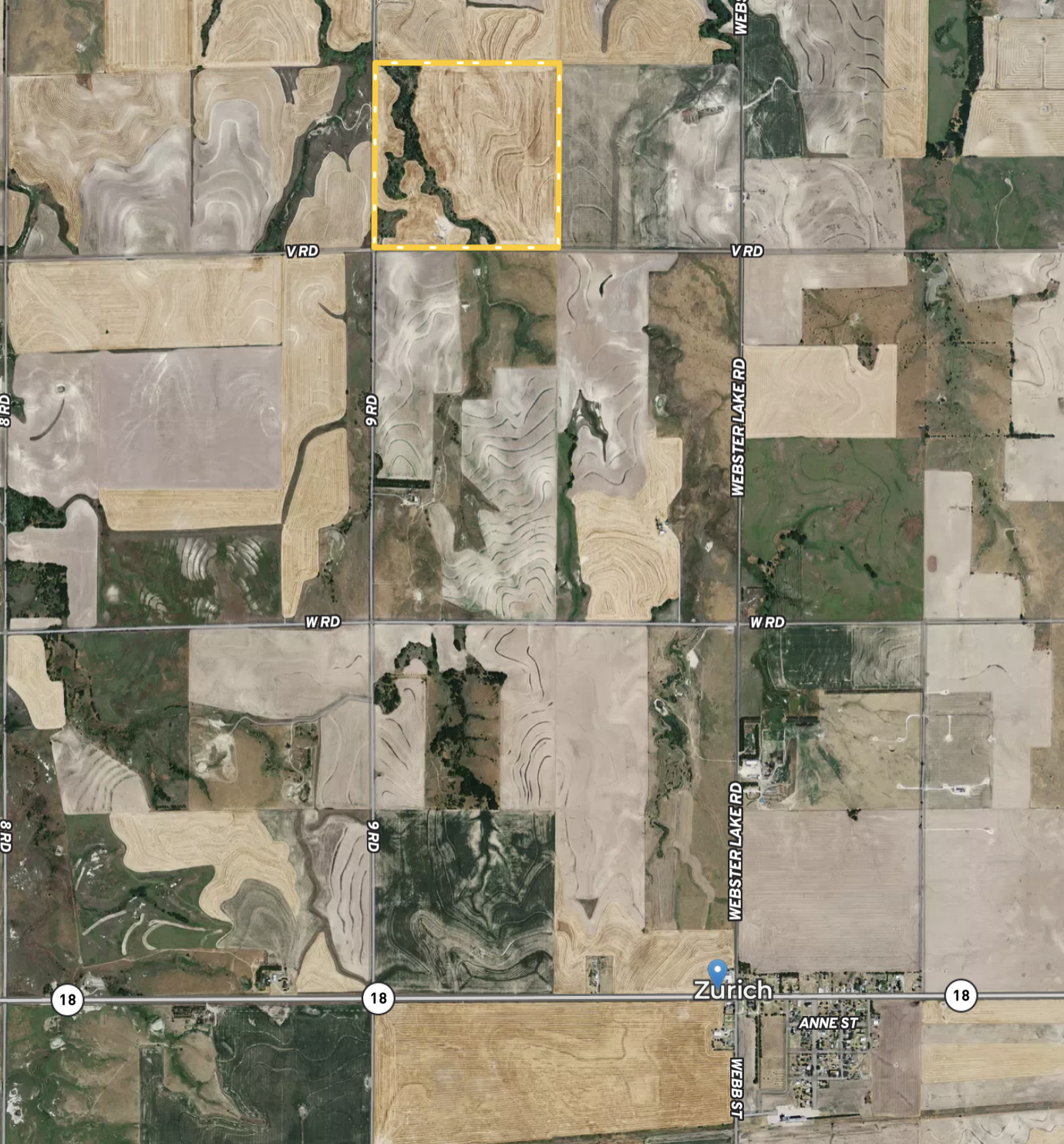 This quarter section of mostly cropland is ideally located within a couple of miles of HWY 18 and the town of Zurich. Consisting of 134 acres of fertile cropland this farm will be a consistent producer for the owner. This farm is also ideally located for the outdoor enthusiast. Webster Reservoir is a 5-minute drive to the North and this area has a tremendous reputation for upland bird, whitetail, and goose hunting. Within the Western half of this farm is a wooded spring-fed draw that has proven to be a good spot for hunting whitetail deer and quail. There is excellent deer sign throughout the wooded area with several good-sized rubs, scrapes, and heavily traveled trails. This farm offers a nice investment opportunity along with plentiful habitat for the outdoorsman in the family. Contact the land specialists for more info on this great farm!