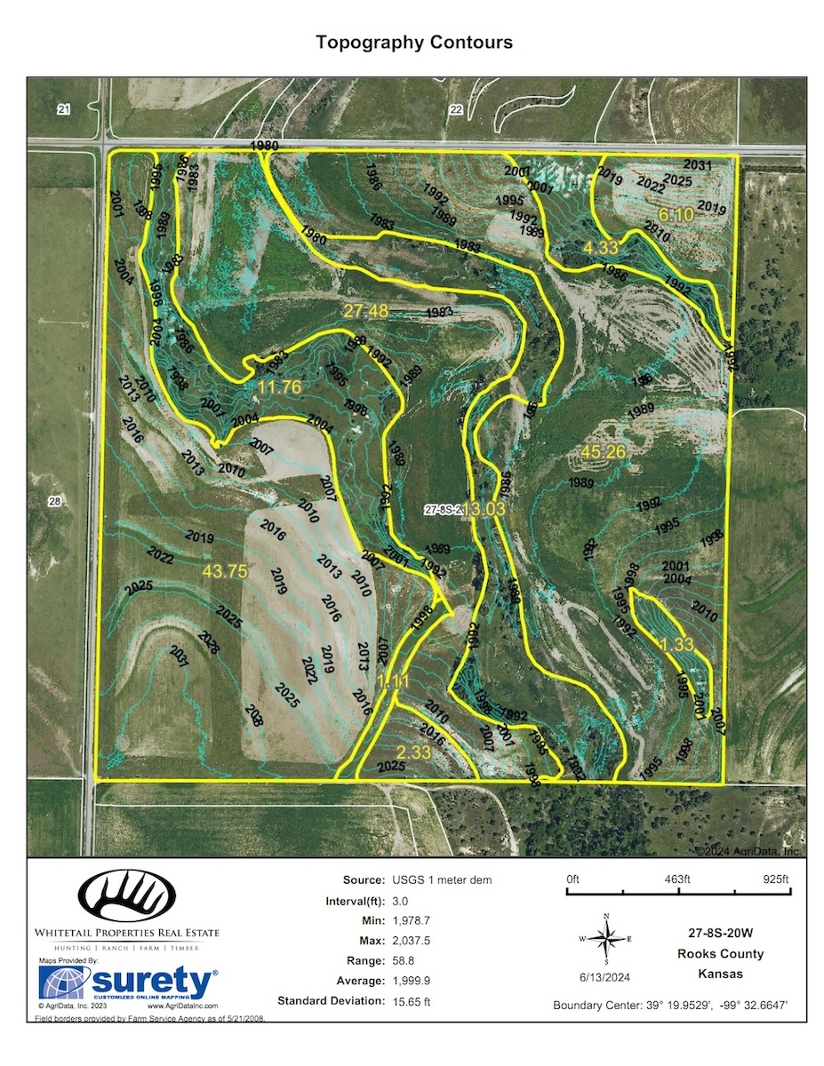 • Location: Situated just 4 miles southwest of Webster Reservoir, this property benefits from the natural beauty and recreational opportunities of the area, with Spring Creek winding through the property for half a mile. Nearby, Webster Reservoir offers over 3,700 acres of water on the surface that can be utilized for fishing, boating, and water sports. It is also a magnet for waterfowl migrating through the area.