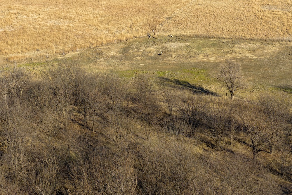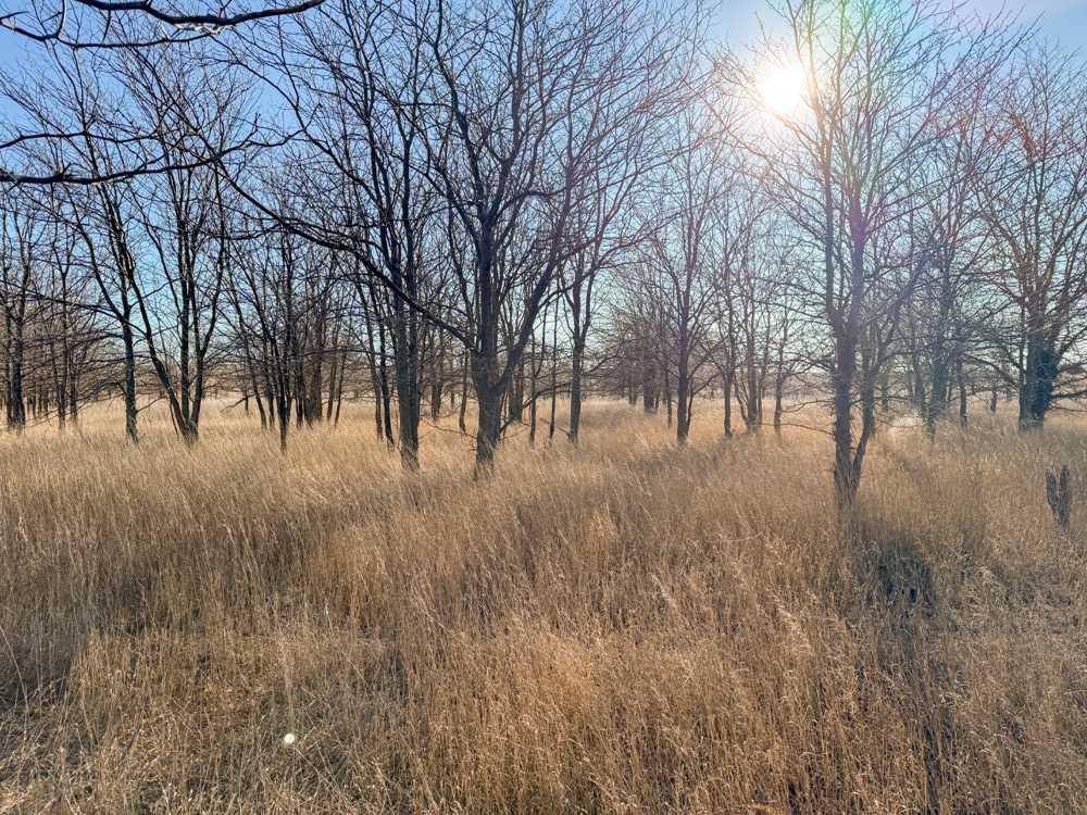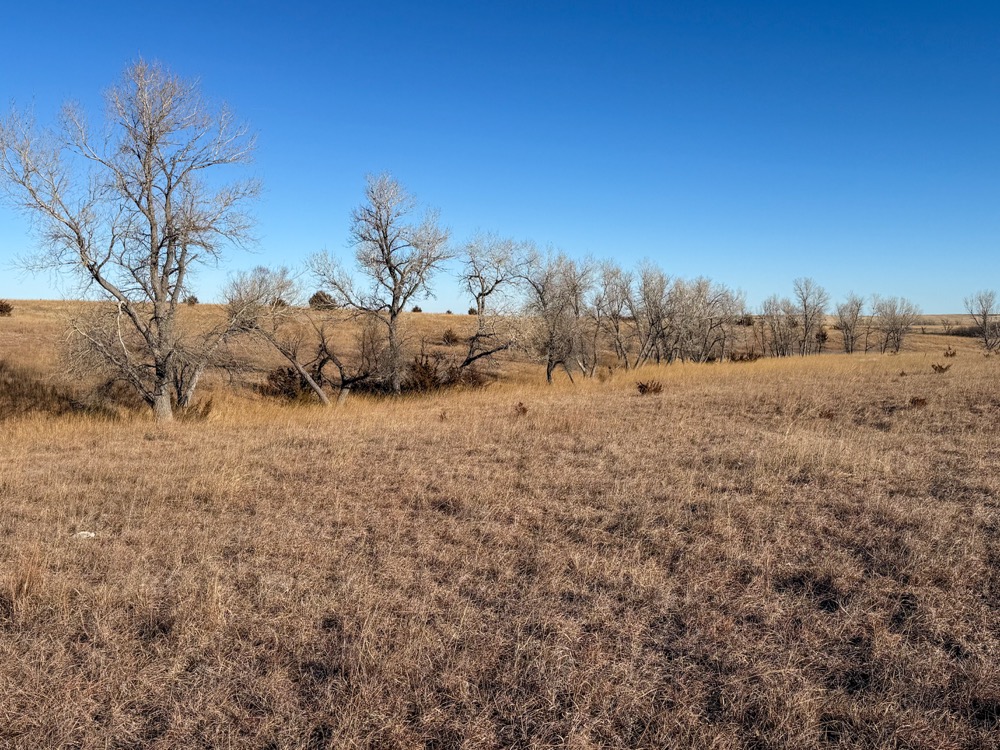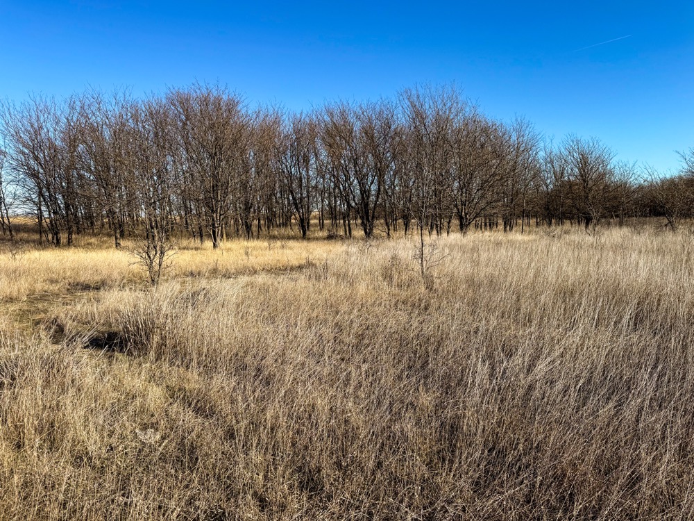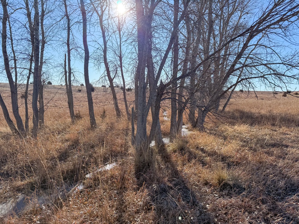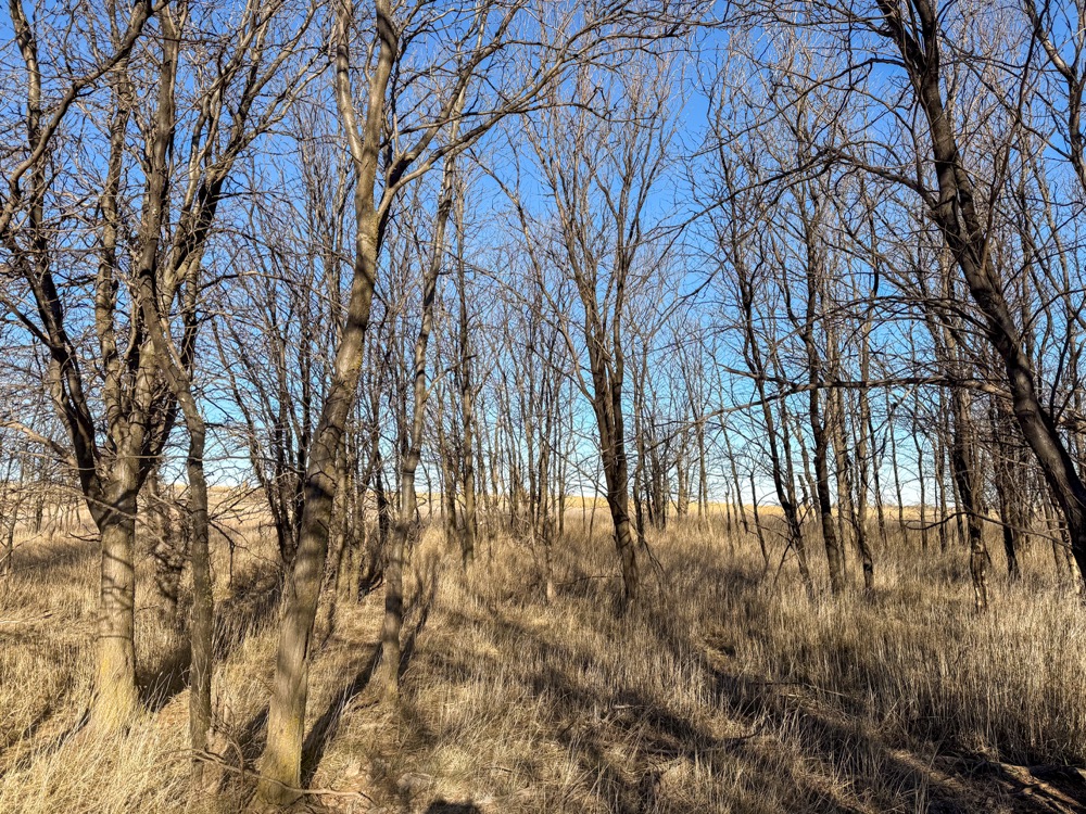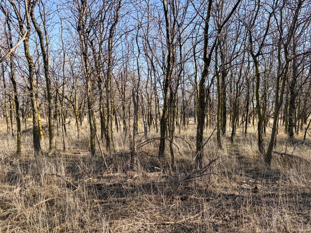 - CRP grass with cottonwood and thorny locust tree mix