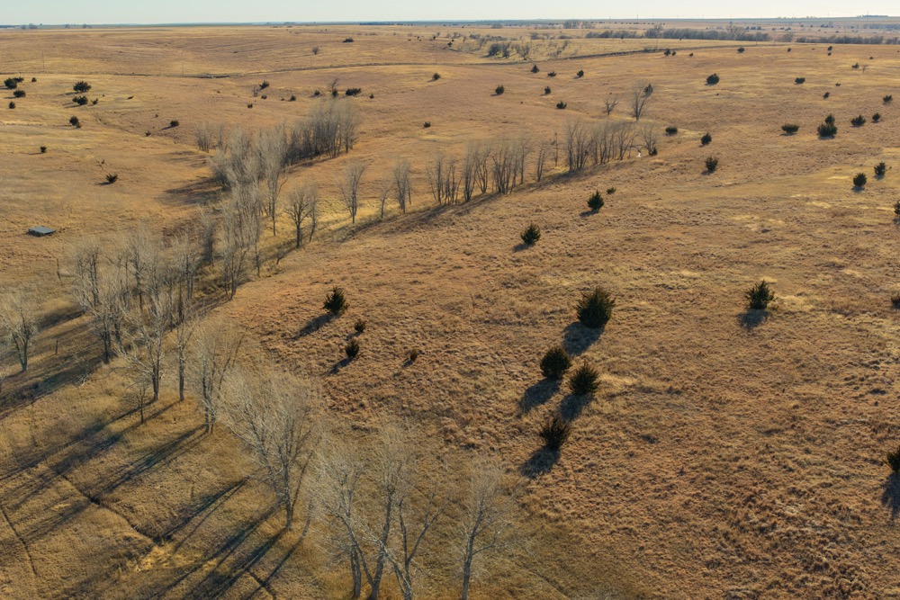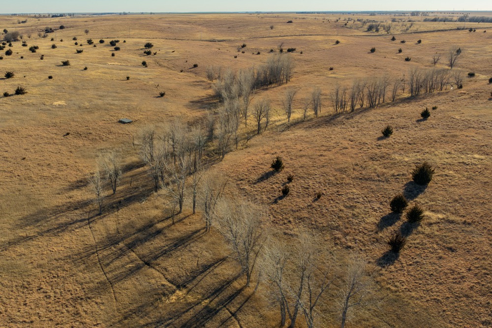 If you’re looking for a property that offers both excellent hunting and cattle grazing opportunities, this farm will accommodate. Situated only 6 miles south of Nekoma, Kansas, on County Road 180, we are offering a premier tract of timber pasture with all the above. As you pull into the farm, you will notice 75 acres of fully fenced pasture loaded with trees. This was an old home site that currently provides shelter for wintering cattle and great habitat for Deer and upland birds. A water well exists within this area. Moving east you will find rolling CRP grass with scattered cedar trees, this CRP is expiring and a new buyer could re-enroll if they wish. The far eastern end of the farm consisted of heavy timber with cottonwood bottoms. It doesn’t get any better as far as Rush County wildlife habitat than this! This farm was previously enrolled in the WIHA program but will now be taken out for the new owner. This area has a very high pheasant & quail population with lots of deer sign as well. A new buyer should be aware that the neighboring 78 Acres across the road to the west will also be for sale. What a spread for someone to gather!! Immediate possession for a new buyer, no binding pasture leases in place. Call Mitch or Adam with more details!