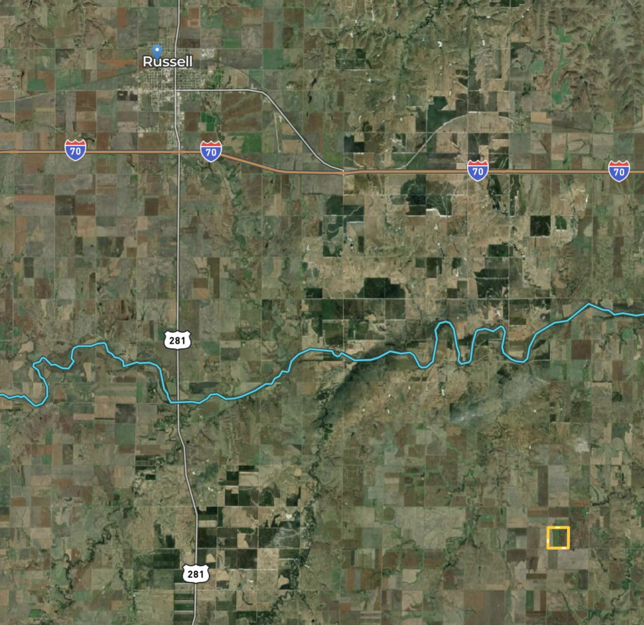 - Located 13 miles SE of Russell, KS; 9 miles SW of Dorrance, KS