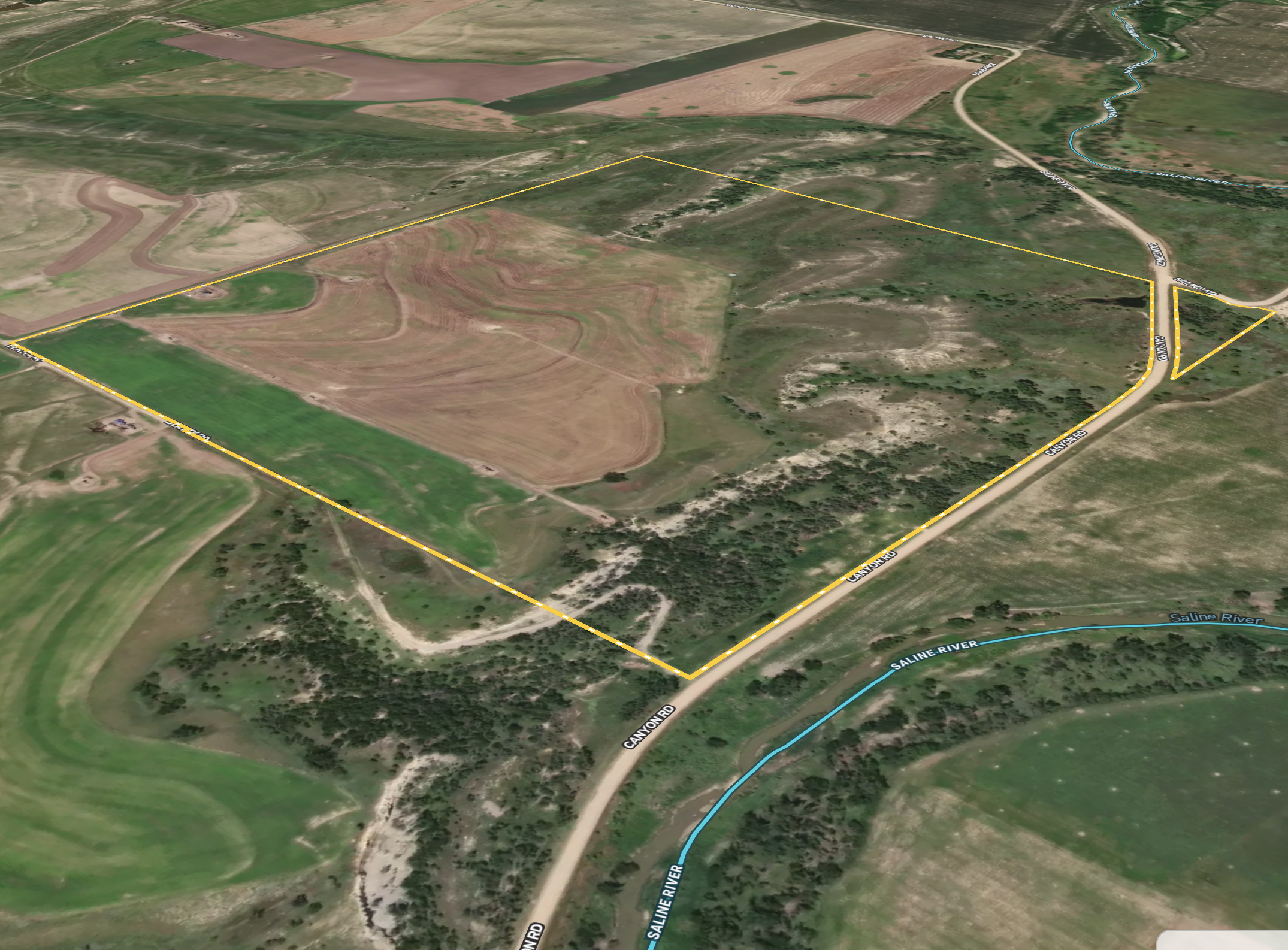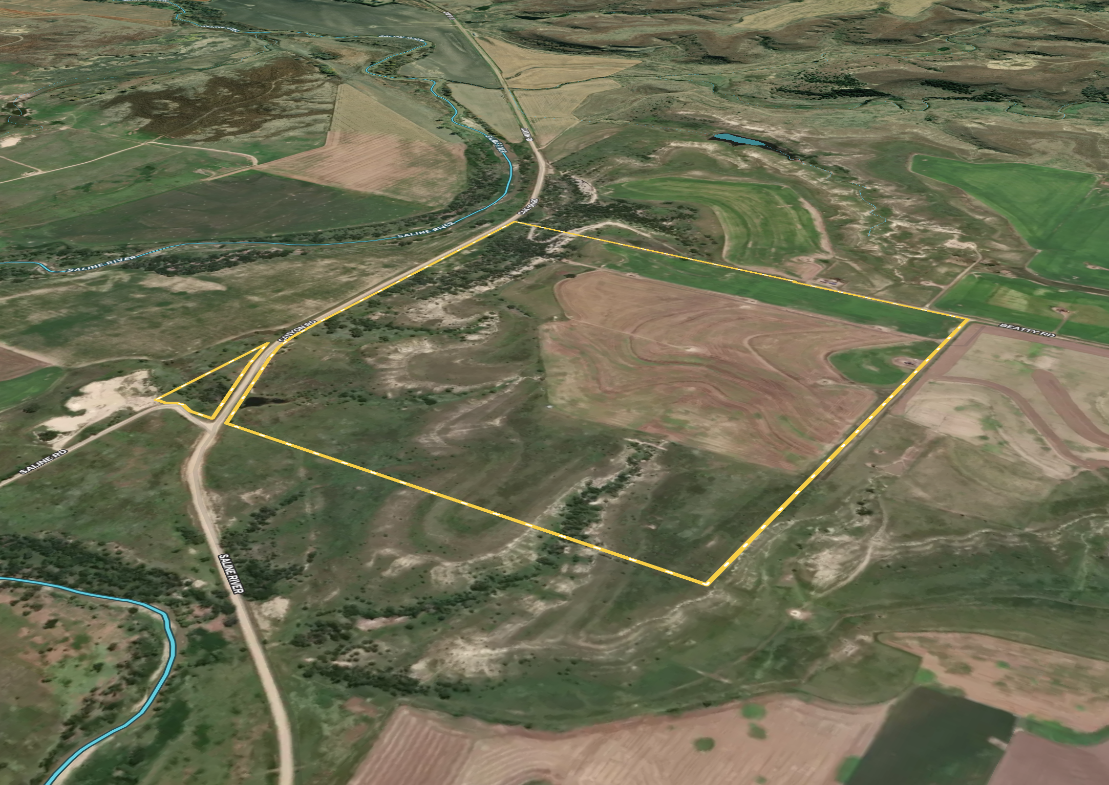 - Borders and overlooks the Saline River